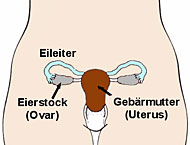 Graphische Darstellung der Lage der Eierstöcke im Körper der Frau