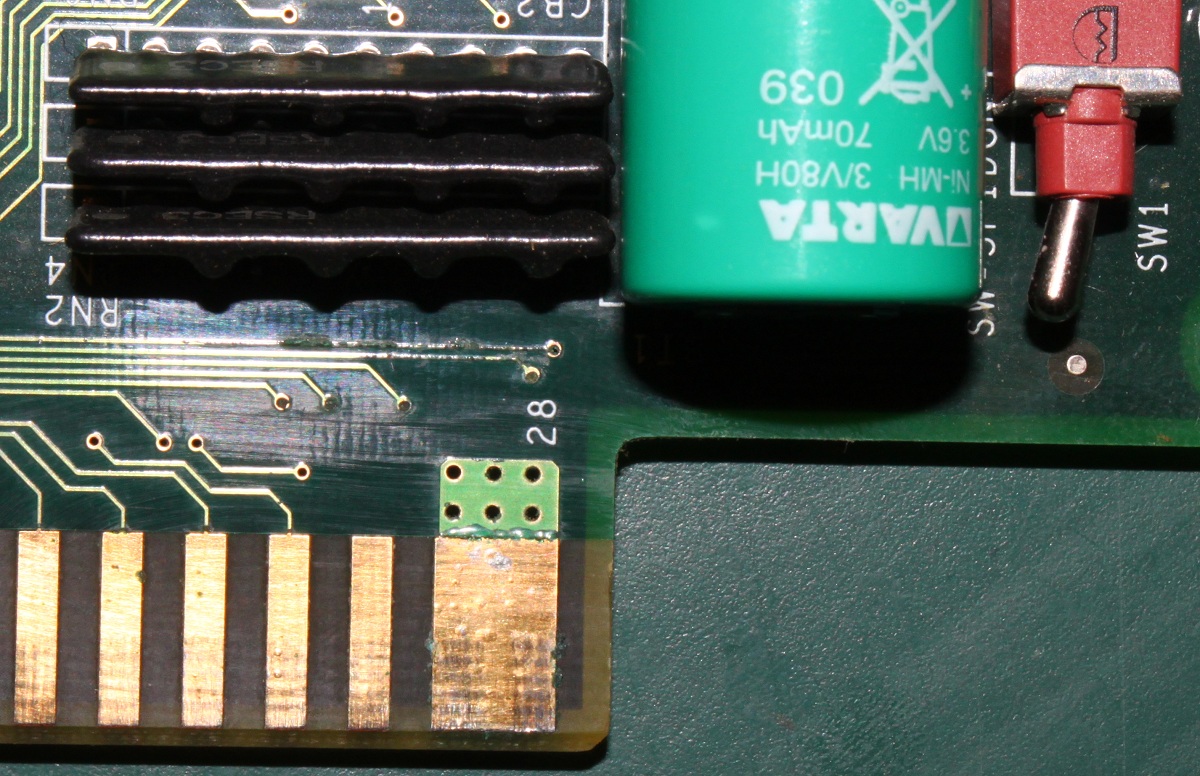 {Diagnose} Der Batterietausch kam zu spät. Die Lauge des alten Nickel-Cadmium-Akkus hatte sich schon auf der Platine verteilt und trotz gründlicher Säuberung die dünnen Leiterbahnen angefressen. Wie es aussieht, reichen hier kleinste Laugenreste, die sich in den Durchkontaktierungen festsetzen und sich selbst bei akribischer Reinigung nicht restlos entfernen lassen.