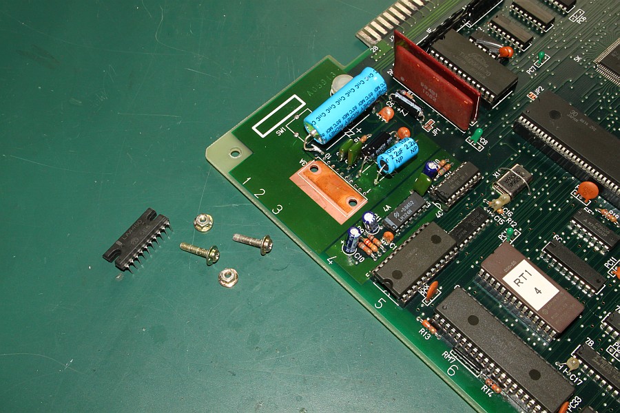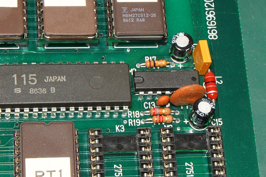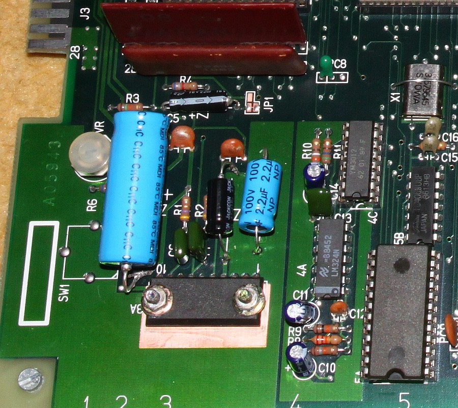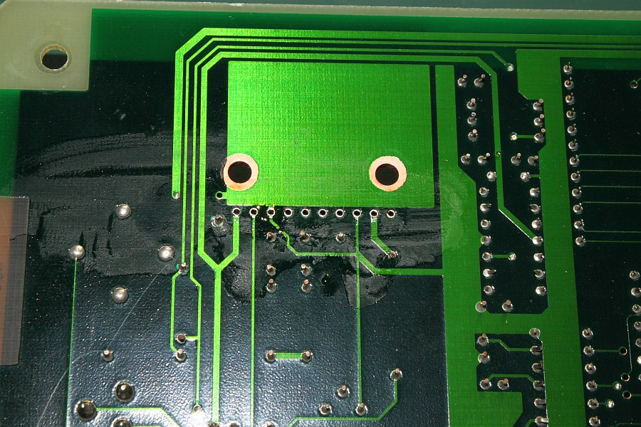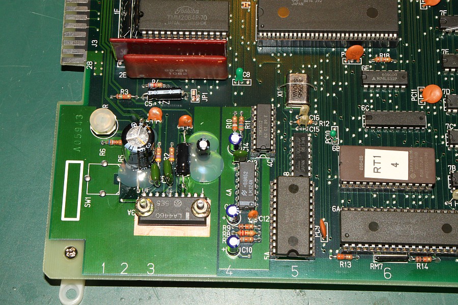 {Fehlerbeschreibung} Ein Patient mit akutem aphonem Verhalten: sprich es kommt kein Ton raus. Die Zwischennetzsuche ergibt, dass dieser Fehler sehr häufig ist und durch Austausch einiger Kondensatoren geheilt werden kann. Auf dem separaten Sample-Soundboard sind Kondensatoren drauf, die ein 28V-Schaltnetzteil bedienen, dieses wiederum füttert den Vorverstärker für die Speech-Sounds. {Diagnose} Die Kondensatoren waren weg, aber ein Blick auf die Unterseite der Platine zeigte, dass sie von unten aufgelötet waren. Die zweite Garde Kondensatoren sind die dicken Dinger im Bereich des Audio-Verstärkers. Auch diese waren bereits ausgetauscht worden, die alten abgezwickt und die Neuen auf die Stummel gelötet... naja... Das war es also auch nicht. Das Oszi zeigt ein Audiosignal um 200mV am Verstärkereingang, sollte also ausreichen. Der Audioverfolger gibt einen klaren Sound wieder, wenn man ihn an den Verstärkereingang hält. Da aber nix rauskommt, wird wohl der LA4460 defekt sein... {Werkzeug} Hilfreich für die Fehlersuche in Audioteilen ist natürlich ein Oszi, besser ist hier aber ein Audio-Signalverfolger, der einen kleinen Verstärker und einen Lautsprecher enthält. Damit kann man ganz genau hören, ob es noch ein Audio-Signal gibt, und vor allem, wie es sich anhört. {Reparatur} Die Reparatur besteht darin, die provisorisch aufgebrachten Kondensatoren sauber einzulöten und den defekten Audio-Verstärkerbaustein zu ersetzen. Außerdem habe ich dem Patienten noch neue Platinenfüßchen spendiert. Soll ja ordentlich aussehen! Also erst mal den alten Baustein raus und die Lötstellen schön sauber machen... Dann die Kondensatoren auf dem Sample-Board ordentlich einlöten... Jetzt die Kondensatoren um den Audio-Verstärker herum sauber löten und vorsichtig mit Heißklebeklecks fixieren. Dann bleiben die auch mechanisch langzeitstabil... Jetzt noch ein paar Screenshots vom laufenden Spiel... man kann den Ton geradezu hören... ;-) |