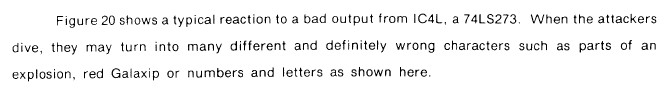 {Diagnose 2} Da werden wohl die falschen Daten für die "diving attackers" abgespeichert... Gut, dass es ein Galaxian troubleshooting manual im Netz gibt. Gleich mal den betroffenen Baustein gemessen und versuchsweise einen guten huckepack draufgeklemmt...