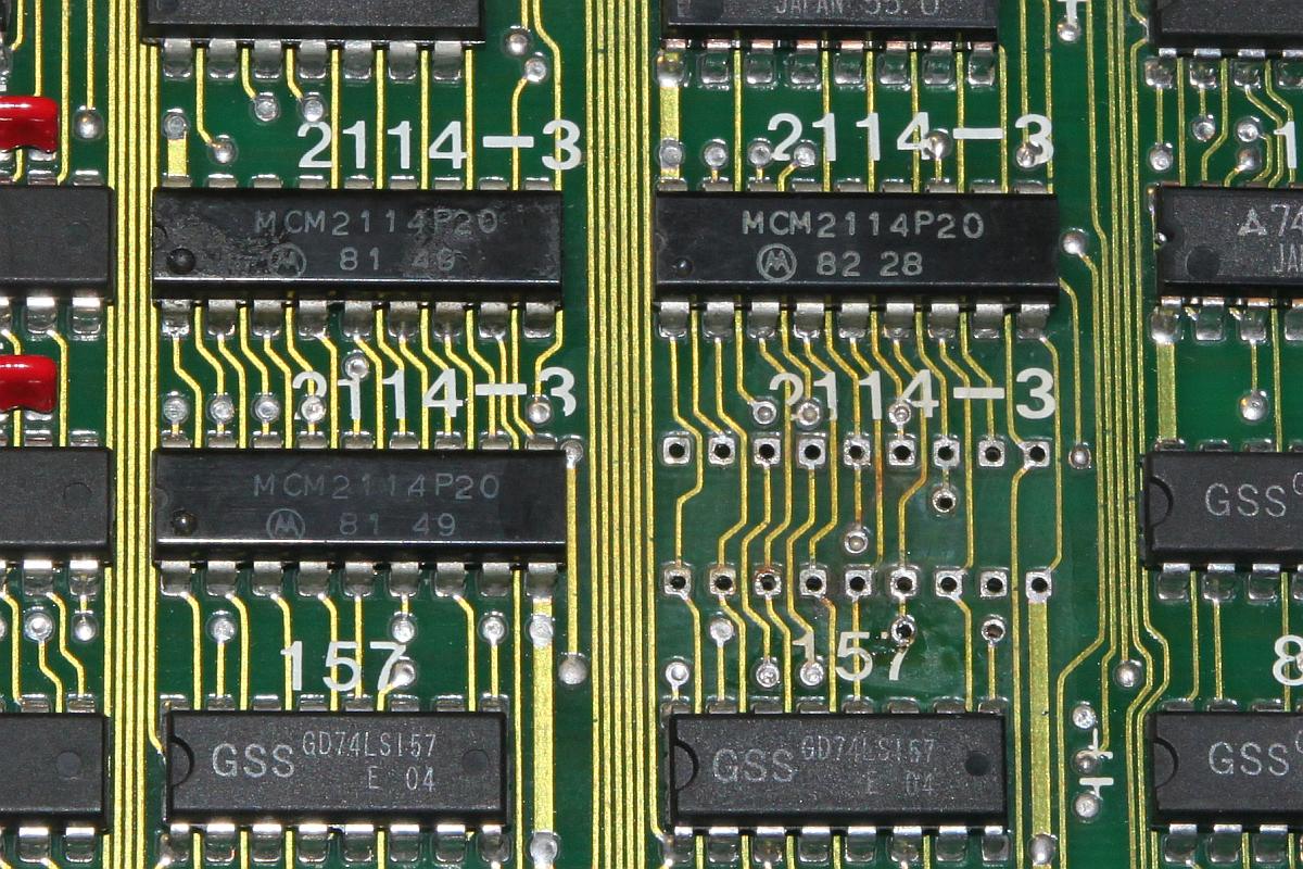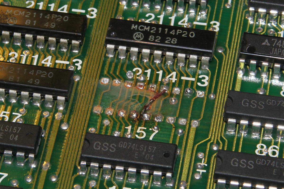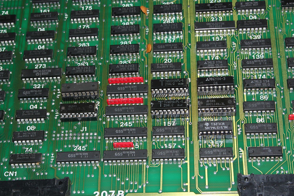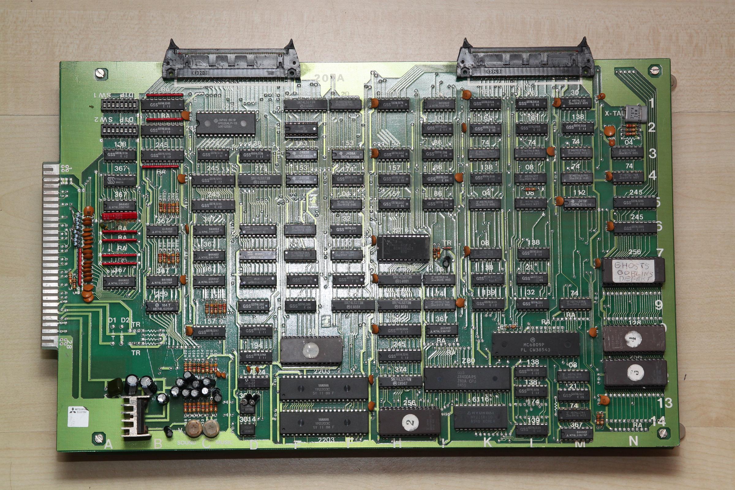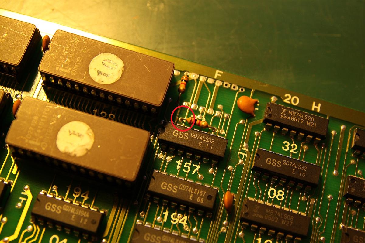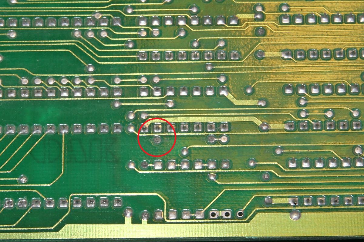 {Fehlerbeschreibung} Neues Spiel, neues Glück: Eine gut erhaltene Ghost 'n Goblins Bootleg in sehr sauberem Zustand. Diagnose Spritesalat. {Diagnose} An den GFX-ROMs sind alle Signale super, klar, es sind ja auch Sprites auf dem Schirm... nur leider die Falschen. Also gleich mal an den Motion RAM Leitungen geschaut (2114): Adressbit 5 ist unter 3V... das ist nicht gut... garnicht gut... Was ist das? Da ist wohl was bei der Fertigung auf die Platine gefallen... {Reparatur} Jetzt flugs das RAM gewechselt und - immer noch schlecht. Mist, da ist wohl der 157er Multiplexer mit abgeraucht. Demnächst kommt mehr. Aufgefallen ist mir noch ein sinnfreier Pullup, der bei einem Oder-Gatter den einen Eingang auf definiertem Potential halten soll... das geht natürlich schlecht, wenn er auf beiden Seiten nicht mit einer potentialführenden Leiterbahn verbunden wird... Wir vertrauen auf das statische Low... Fachkräftemangel... {Reparatur Teil 2} Jetzt reichts: ich tausche alle 2114 RAMs, an der Logik ist ja kein Fehler mehr feststellbar... {Genesung} So einfach kann es sein: es waren zwei RAMs defekt... Das Fehlerbild dazu kann verwirrend sein. Jetzt tut die Platine auf jeden Fall wieder einwandfrei. |