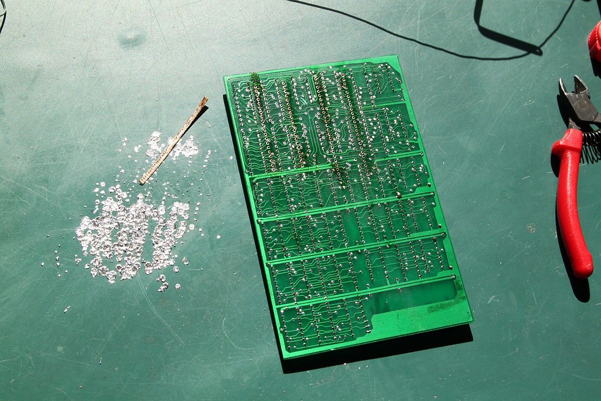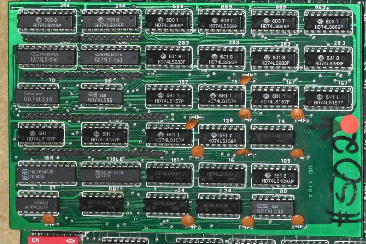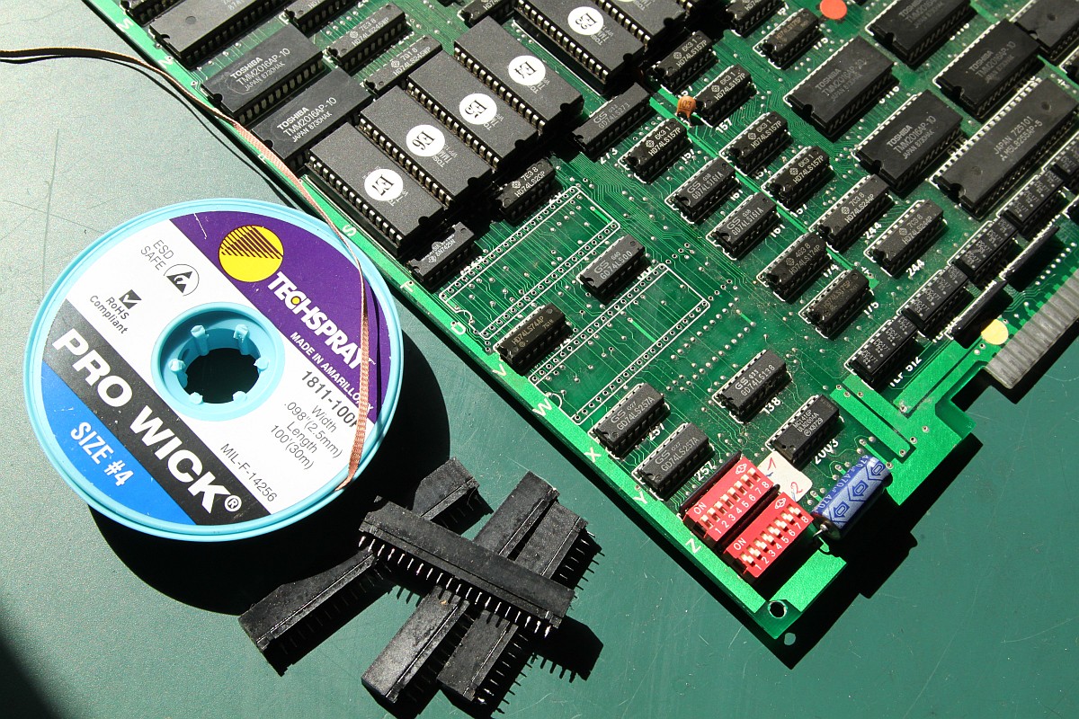 {Fehlerbeschreibung} Starke Grafikfehler, Sprites sind völlig dureinandergewürfelt. Ich hasse schlecht verarbeitete Bootlegs. Zu den absoluten Unterschicht-Angehörigen dieser Zunft gehören die Vertreter der an sich ganz passablen Spiele aus der Wonderboy Reihe. Sie haben alle unsäglich schlecht gelötete Platinen mit unsäglich korrodierten Aufsteckplatinchen in unsäglich billigen Sockeln... Da ist der Wackelkontakt schon ein Feature. {Reparatur} Jetzt hab ich mir erst mal vergoldete Sockelleisten organisiert ;-) , mal sehen ob's hilft. Lohnen tut es sich eigentlich auf keinen Fall... {Steckertausch} Auslöten, Saubermachen, Einlöten... immer das gleiche stumpsinnige Spielchen. {Buchsentausch} Auslöten, Saubermachen, Einlöten... dito. {Stecken...} Endlich hält zusammen, was zusammen gehört... {Genesung} So sieht es dann aus, sobald man mal ein paar hochwertige Komponenten verbaut... alle Sprites sind wieder gesund. Irgendwie hat es sich doch gelohnt. |