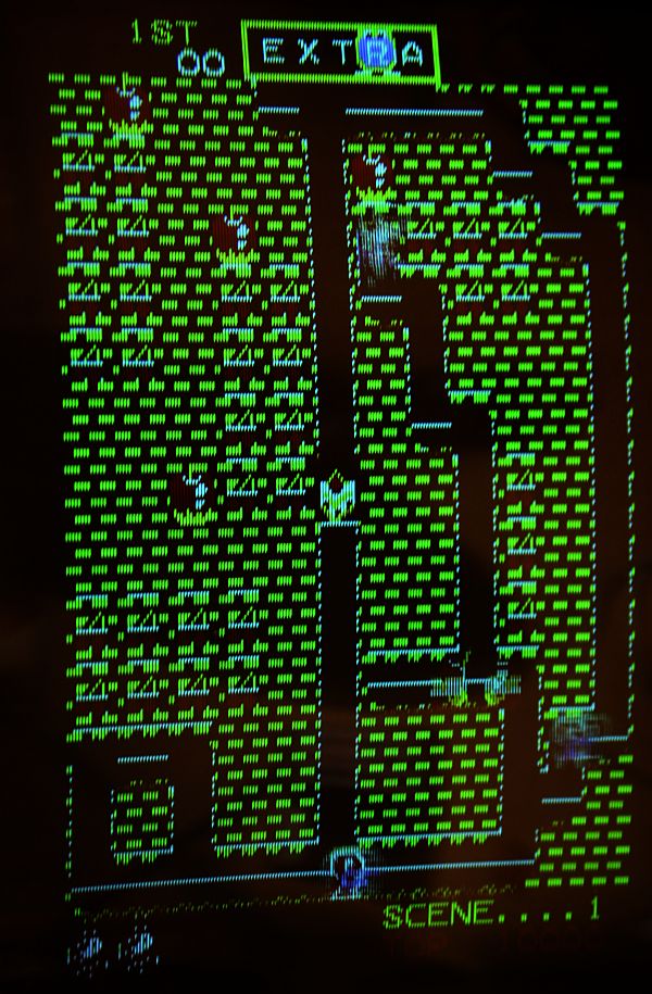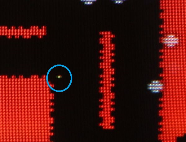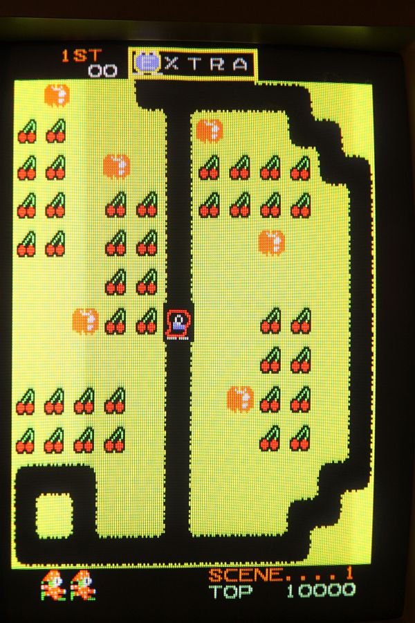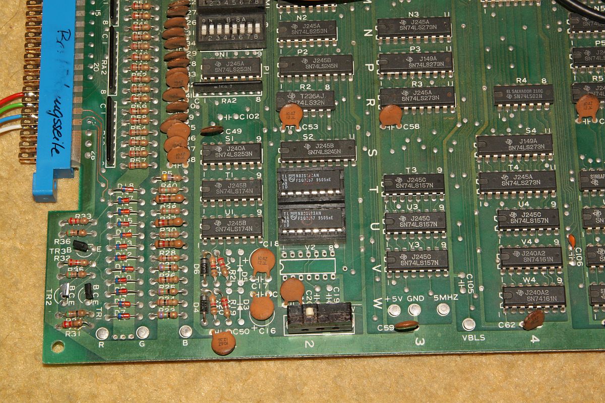 {Fehlerbeschreibung} Mein neuer Patient: eine Mr Do! Bootleg mit dem Problem "Bild viel zu dunkel und komisch". {Reparatur} Das Oszi zeigt mir: die beiden Colour-PROMs sind völlig platt. Das ist komisch, da die heir ja gar nicht direkt am Ausgang liegen, sondern noch gelatcht werden. Gut, dass mein Chip Writer 82S123 problemlos brennen kann! Und schön, dass ich noch eine zweite Mr. Do habe, die ein gutes Videosignal liefert. Diese dient als PROM-Datenspender. {Reparatur 2} Toll. Das Bild ist klar und hell! Aber irgendwie stimmen die Farben nicht... Und das bei beiden Kandidaten. Vielleicht mal mit PROM-Tausch versuchen? {Fazit} Uff... kaum macht man es richtig, schon funktioniert es. Man darf nie davon ausgehen, dass bei Reparaturkandidaten alle Bausteine auch in den richtigen Sockeln sitzen. {Eingängig...} besitzt die von Do! Run Run dieses Feature nicht - und funktioniert mit einer Standard-Jamma-Verkabelung halt auf Anhieb auch nicht... Da muss dann ein externer Pull-Up (1k gegen +5V) nachgerüstet werden. {Reparatur 3} Die zweite Bootleg funktioniert ja nach dem PROM-Tausch auch gut, nur hat sie leider kurzzeitige Pixelfehler, wenn Sprites auf dem Schirm sind, ich bin gespannt, ob das zu beheben ist: {Reparatur 4} Es geht weiter: die eine Mr. Do! weigert sich, beim ersten Mal zu starten, die Z80 CPU wird heiß, Datenbus ist undefiniert. Nach 2-5x Anschalten springt das Biest irgendwann an... Der Reseteingang ist High. Hmmm... Ah, der Reseteingang ist IMMER High. O.K., das sollte nicht sein, der NE555 Timer sollte erst nach einer gewissen Zeit den Reset freigeben. Fazit: NE555 defekt! |