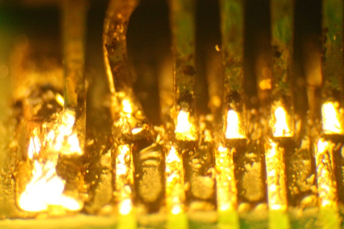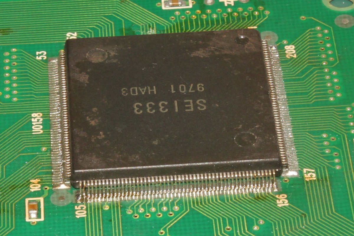 {Fehlerbeschreibung} Raiden DX V33 - die billige China-Version startet nicht. Unsynchronisierte Streifen auf dem Bildschirm beim Einschalten sind das einzige Lebenszeichen. Die Reparaturversuche waren - dass muss ich leider vorweg nehmen - allesamt erfolglos. Vielleicht hat ja noch jemand Vorschläge. Ich habe die miserabel gelöteten Pins des Custom Chips unter dem Mikroskop nachgelötet und etwaige Kurzschlüsse beseitigt, Kältespray und den Heißluftfön eingesetzt, nichts hat auch nur zu einer Veränderung des Verhaltens geführt. Wer sich jetzt noch die Frage nach der Fertigungsqualität der chinesischen Billigversionen von Raiden DX stellt: man beachte die Positioniergenauigkeit des fine-pitch-Custom-Chips... Alle weiteren Worte kann man sich dann sparen. Aber am verbogenen Pin waren die Chinesen nicht schuld.