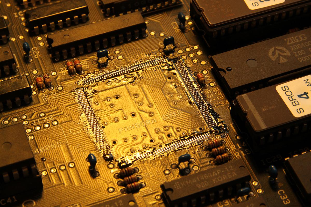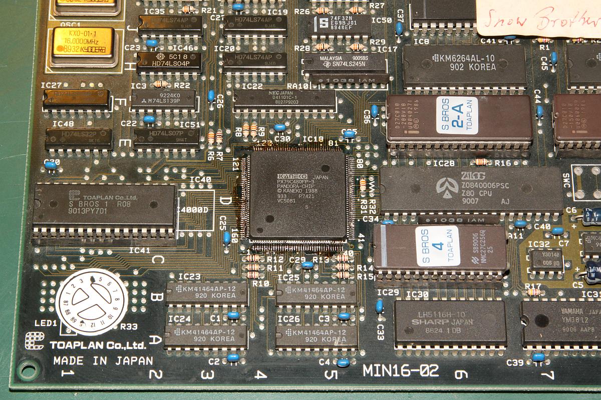 {Fehlerbeschreibung} Manchmal kommen sie wieder... Die Snow Bros hatte ich schon mal auf dem OP, wg. Verstärkerproblemen. Jetzt kam sie mit massiven Grafikproblemen zurück. {Diagnose} die Probleme zeigten sich extrem Druckempfindlich, zwischen "kein Bild" und "fast ganz gut" war auf Daumendruck alles drin. Einkreisen konnte man den Übeltäter grob auf die Umgebung des Pandora-Grafik-Customs: {Reparatur} Also erstmal die Beinchen vorsichtig und sauber nachgelötet: Dies zeigte keine Wirkung, sollte das Problem an einem Haarriß an einer Leiterbahn liegen, oder doch an den Pads? Also Chip runtergefönt, Pads sauber gemacht und neu verzinnt: Nachdem der Custom wieder sauber drauf war, zeigte sich: jetzt gibt es überhaupt kein Bild mehr... Mist! Mal verliert man, mal gewinnen andere... |