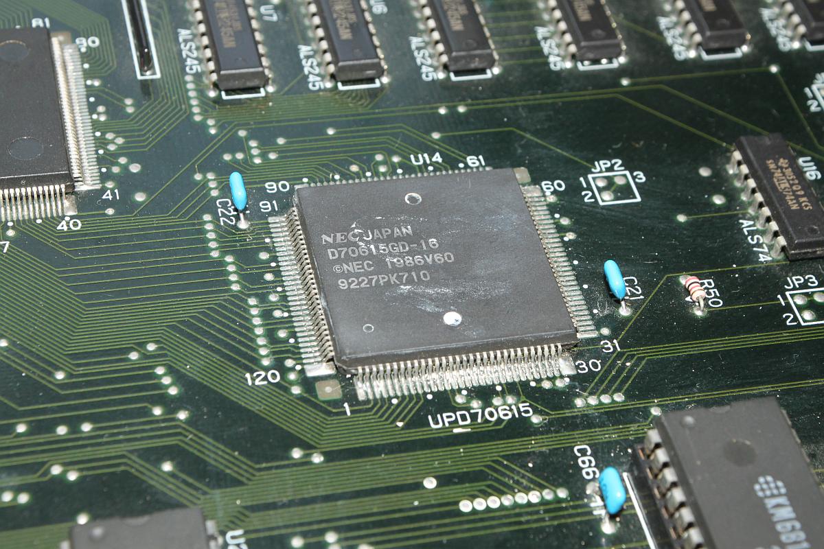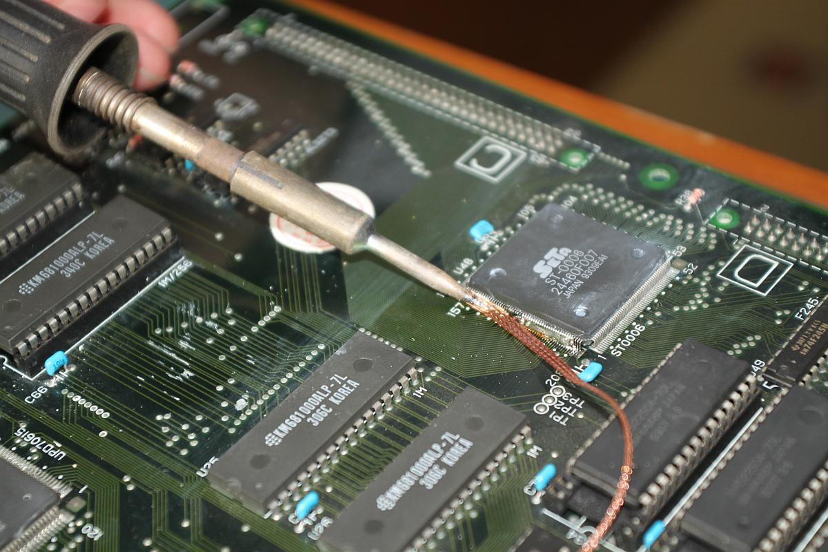 {Fehlerbeschreibung} Grafikprobleme, ROM-Fehler - bei dieser Baureihe ein häufiges Problem, doch dazu später mehr. Leider war ich bei der Reparatur dieses Kandidaten nicht nur nicht erfolgreich, sondern ich habe zum ersten Mal ain in der Elektronikfertigung bekanntes Phänomen erlebt: den Popcorn-Effekt. {Diagnose} Die Grafik-Customs auf dieser Platine sind mit Kühlkörpern bestückt, die aber - konstruktiv blöde - nur auf einer Seite verschraubt werden können. Somit ist eine asymmetrische Belastung garantiert und die Chips strecken irgendwann die Beinchen der unbelasteten Seite in die Luft. Zumal sie im Betrieb recht warm werden... Der Schaden äußert sich in Speicherfehlern und - wenn das Spiel startet - in vielen bunten Streifen im Bild. Ein Fingerdruck auf den Custom kann den Betrieb wieder herstellen, aber so kann man ja nicht gut spielen... {Reparatur(Versuch)} So freute ich mich schon auf eine rasche Reparatur. Der erste Versuch, die Beinchen des Chips auf der einen Seite einfach festzulöten und das überflüssige Lot mit Entlötsauglitze zu entfernen, brachte leider keine Besserung. Also musste wohl oder über der Chip komplett runter und nach Reinigung der Kontakte wieder drauf. Eine Herausforderung bei den feinen Kontaktpins... Und dann geschah, was ich bisher nur von Erzählungen der alten Hasen aus der Elektronikfertigung kannte: der Popcorn-Effekt. Mit einem Knall wurde der Einsatz meines elektronich temperaturgeregelten Heißluftföns kommentiert. Zuerst dachte ich, die Leiterplatte hätte sich irgendwie verzogen, doch nach gründlicher Reinigung fiel mir auf dem Custom eine Unebenheit auf: {Fazit} Dass die Platine danach überhaupt kein Bild mehr hatte, war klar. Der Kunde war nachvollziehbarer Weise nicht beglückt und mich hat das Ergebnis auch nicht gerade zufriedener gemacht. Aber der Popcorn-Effekt ist ein seltenes Risiko, welches sich mit vertretbarem Aufwand nicht vermeiden lässt. Bauteile mit längerer Lagerdauer müssen in der Industrie stundenlang gebacken werden, bevor sie gelötet werden dürfen. Das geht natürlich bei einer solchen Platine nicht. Somit bleibt das Risiko für den, der sich an der Reparatur versucht! |