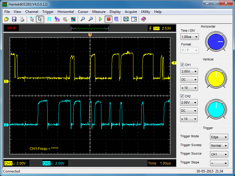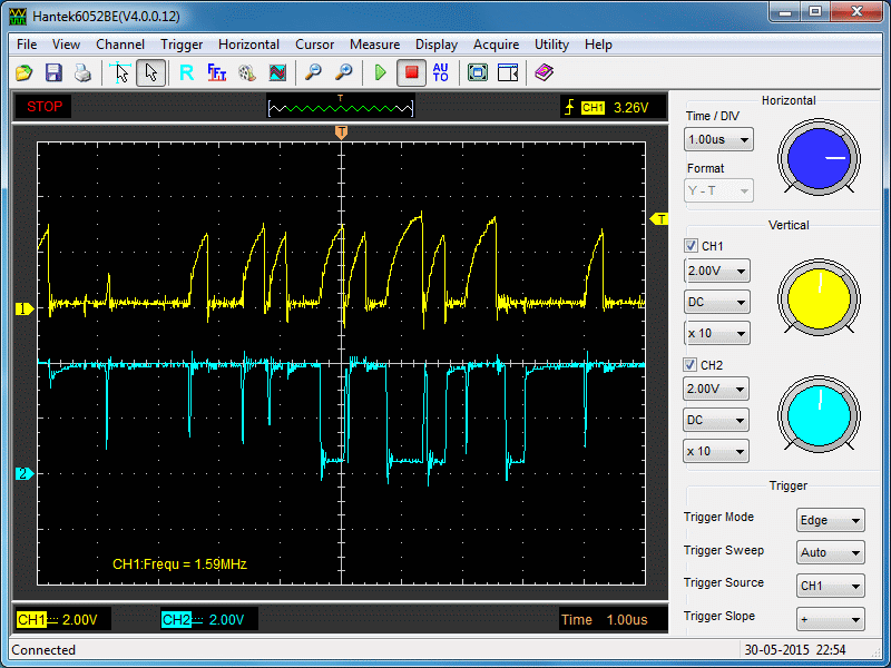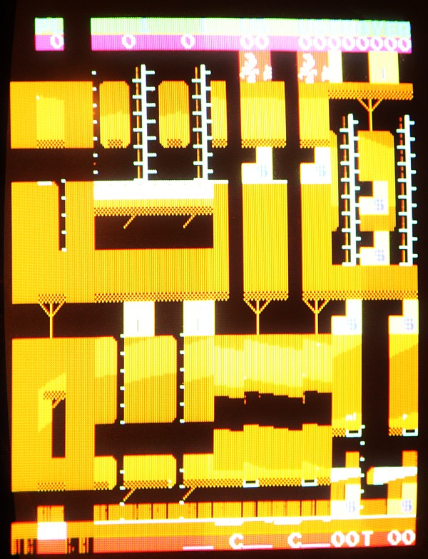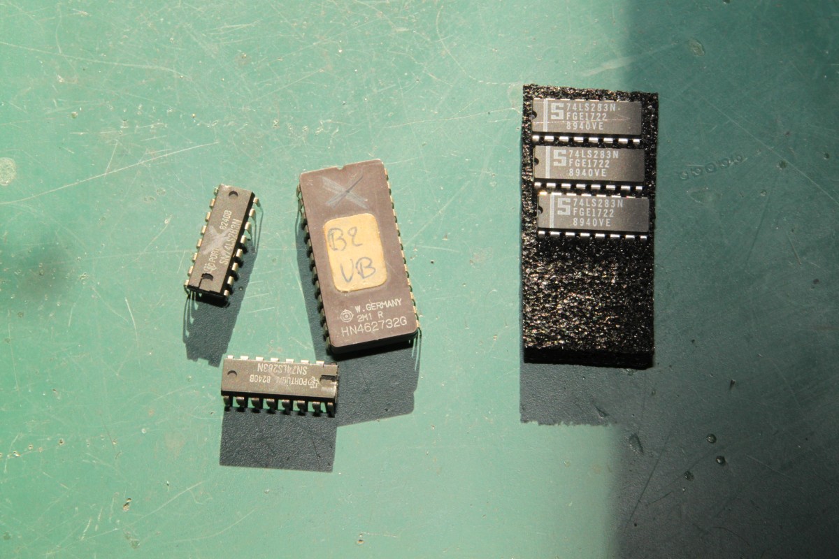 {Bagman} Zwei Patienten in schlechtem Zustand. Normalerweise würde man jetzt die Angehörigen informieren... {Bagman #1} Nummer 1 zeigt massive Grafikfehler. Außerdem ist er ekelig verdreckt... {Reparatur #1} Der Austausch aller 2114 hat nichts gebracht, hier scheint womöglich ein Fehler in der Zähleradressierung der Sprites vorzuliegen... Ich suche weiter. {Bagman #2} Nummer 2 ist videotechnisch tot. Da läuft nix an. Eine Kontrolle der CPU-Datenleitungen zeigt seltsames Verhalten. Eine optische Inspektion der Platinenunterseite enthüllt: Nach Beseitigung dieser Kurzschlüsse werkelt die CPU brav vor sich hin. Leider war's das noch nicht... Auch hier massive (wenn auch nicht so grobe wie bei Nr. 1) Grafikfehler... 2114-Tausch hilft such hier nichts... Manno... {Reparaturdurchlauf, zweiter Teil} Wenn der Tausch der üblichen Verdächtigen nichts mehr hilft, dann bleibt nur noch das gezielte Fehlersuchen! Also Pin für Pin die Signale besehen, eine sehr mühsame und langwierige Arbeit... {Fehler #1} Die Datenleitungen des Grafik-EPROMs haben keinen sauberen Massebezug mehr. Das führt zu flimmernden Artefakten im Bild. {Fehler #1} Wenn man das defekte EPROM entfernt, dann ist der Massebezug (fast) richtig, zumindest funktioniert es dann. {Fehler #2} Die Signale am Ausgang der Addierer (74LS283), die die Spritepositionen berechnen, sind teilweise korrupt. Und das auf beiden Patienten. {Austausch} Mit neuer Hoffnung erst einmal die defekten Teile ausbauen und ersetzen... {Test 1} Die Spannung steigt wie jedes Mal... Platine 1: {Test 2} Die Spannung steigt wie jedes Mal... Platine 2: {Arghl...} Bei Platine 2 war ja noch das defekte EPROM, also schnell ein Neues gebrannt... {Fertig!} Nach langer Suche doch noch erfolgreich. Manchmal ist es eben nicht ganz so leicht... |