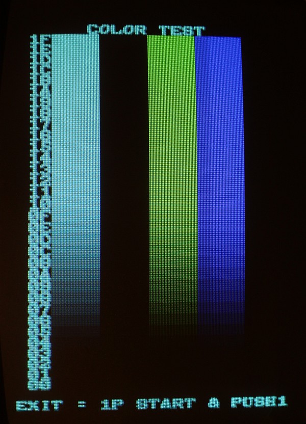 {Fehlerbeschreibung} "Mushihime Sama Futari" - was für ein Name... was für ein Spiel... das ist nicht meine Zeit, aber ich reparier's trotzdem. Symptom: sauteuer, trotzdem fehlt Rot. Das sieht man gut im Testmodus (Sub-Miniatur-Druckknöpfchen 5 Sekunden gedrückt lassen...): {Screenshots} Ganz offensichtlich fehlt der Rot-Anteil: {Fehlersuche} Im Netz findet man eine tolle Anleitung für die Reparatur der sehr diskreten Video-Endstufe... Offenbar geht der OP-AMp am Ende gerne mal kaputt... also messen, ob was rein geht und ob was raus kommt... Das Oszillogramm der einzelnen Farbkanäle ergibt beim Testbild eine wunderbare Rampenfunktion - bis auf Rot... Ergebnis: bei U14 (rot) kommt nix raus... es geht aber auch nix rein... Mist. Mal den 8-Bit Buffer 74LV244 testen... kommt auch nix raus, geht aber was rein... Output-Enable ist auf low, gut so. Versorgungsspannung ist auch auf Low... Nicht gut! Mal auf die Unterseite sehen: {Reparatur} Kann ja nicht gehen, die Mini-Ferritspule, die in der 3,3V-Versorgung liegt, ist abgerissen... Spule hab ich nicht aber 0 Ohm gehen auch, kann schlimmstenfalls HF-Bildstörungen geben... Ist ja nur bei rot...: {Screenshots} Schon klappt's mit allen Farben: |