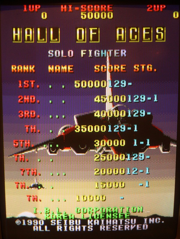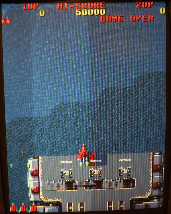 {Fehlerbeschreibung} Neuer Patient: eine Raiden Bootleg, eigntlich gut gebaut, nur Marken-TTLs, ein Sack voll PALs und zwei CXQ70116 Prozessoren (NEC V30 Kompatible). Symptome: Grafikfehler verschiedener Art und unregelmäßige Resets, der Start sieht noch ganz gut aus... Hier ist schon mal der Text verhackstückelt: Und die Sprites sind auch nicht so ganz an der richtigen Stelle... Ein interessantes Detail: je nach Kälte- oder Wärmebehandlung verschlechtert oder verbessert sich das Verhalten, aber nicht nachvollziehbar. Ich konnte zwischenzeitlich sogar mal ein paar Minuten spielen, dann wurde es wieder schlechter. Im Unterschied zu vielen anderen PCBs stürzt diese hier bei Grafikfehlern ab und resettet, eine Fehlersuche ist damit auch etwas schwer... Hat die schon mal wer in den Fingern gehabt? Ich würde als nächsten Schritt mal die Video-RAMs tauschen, die Programm-ROMs sind getestet und gut... |