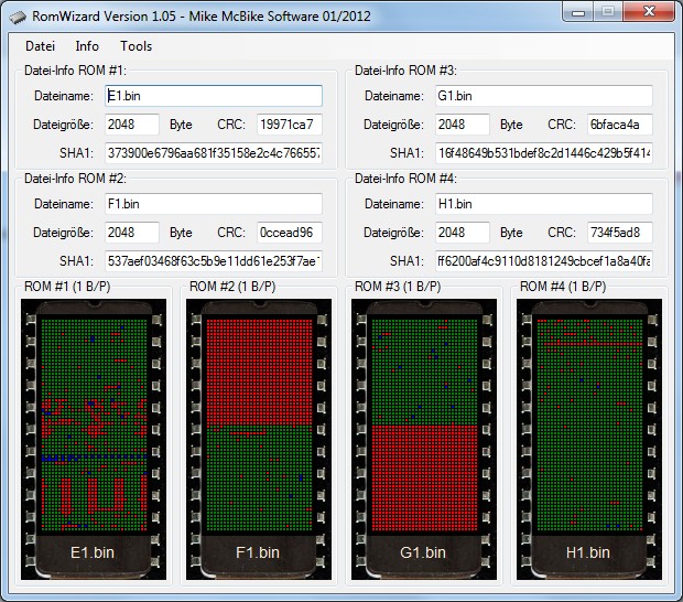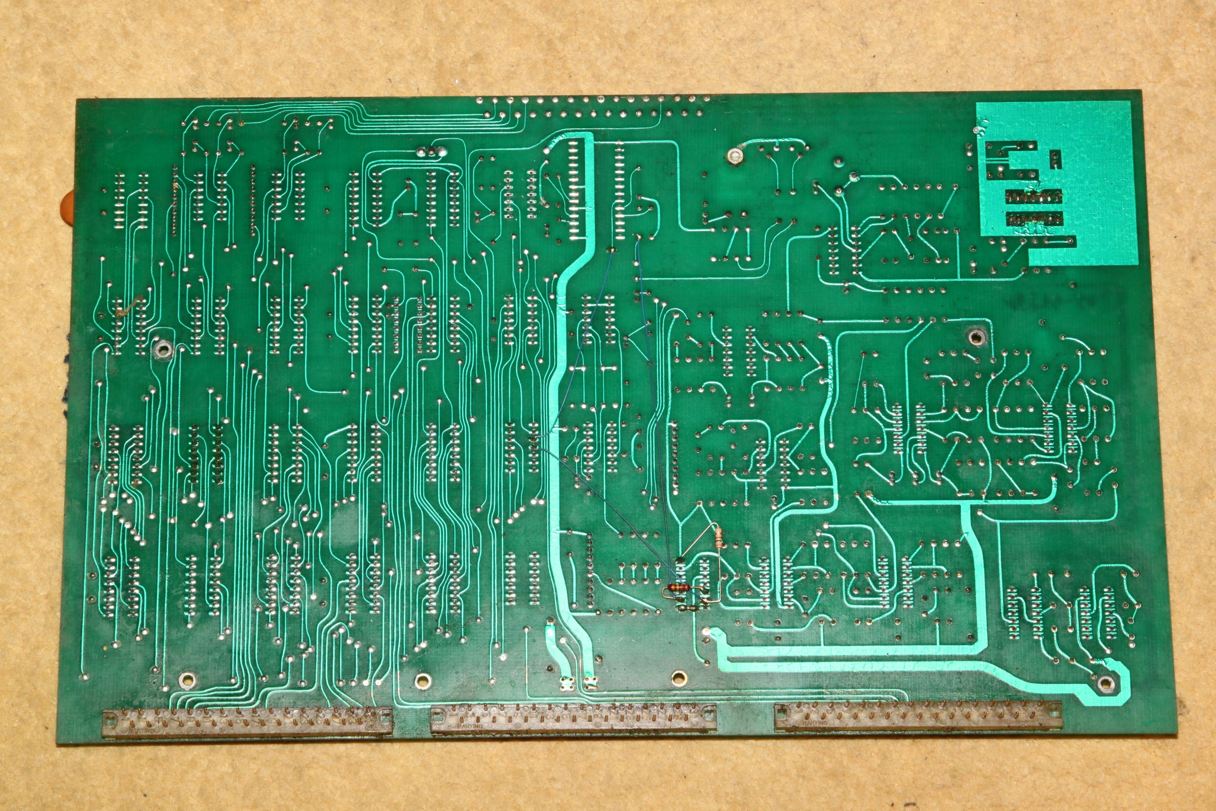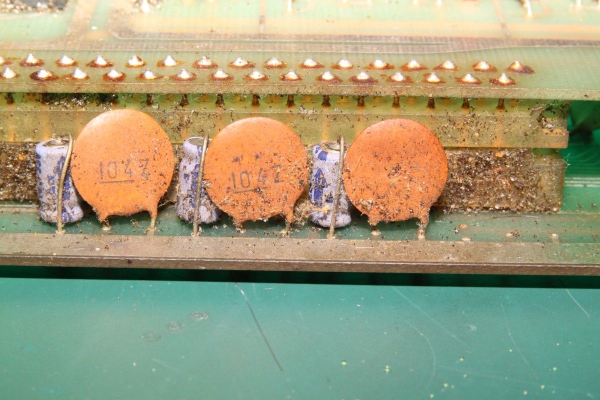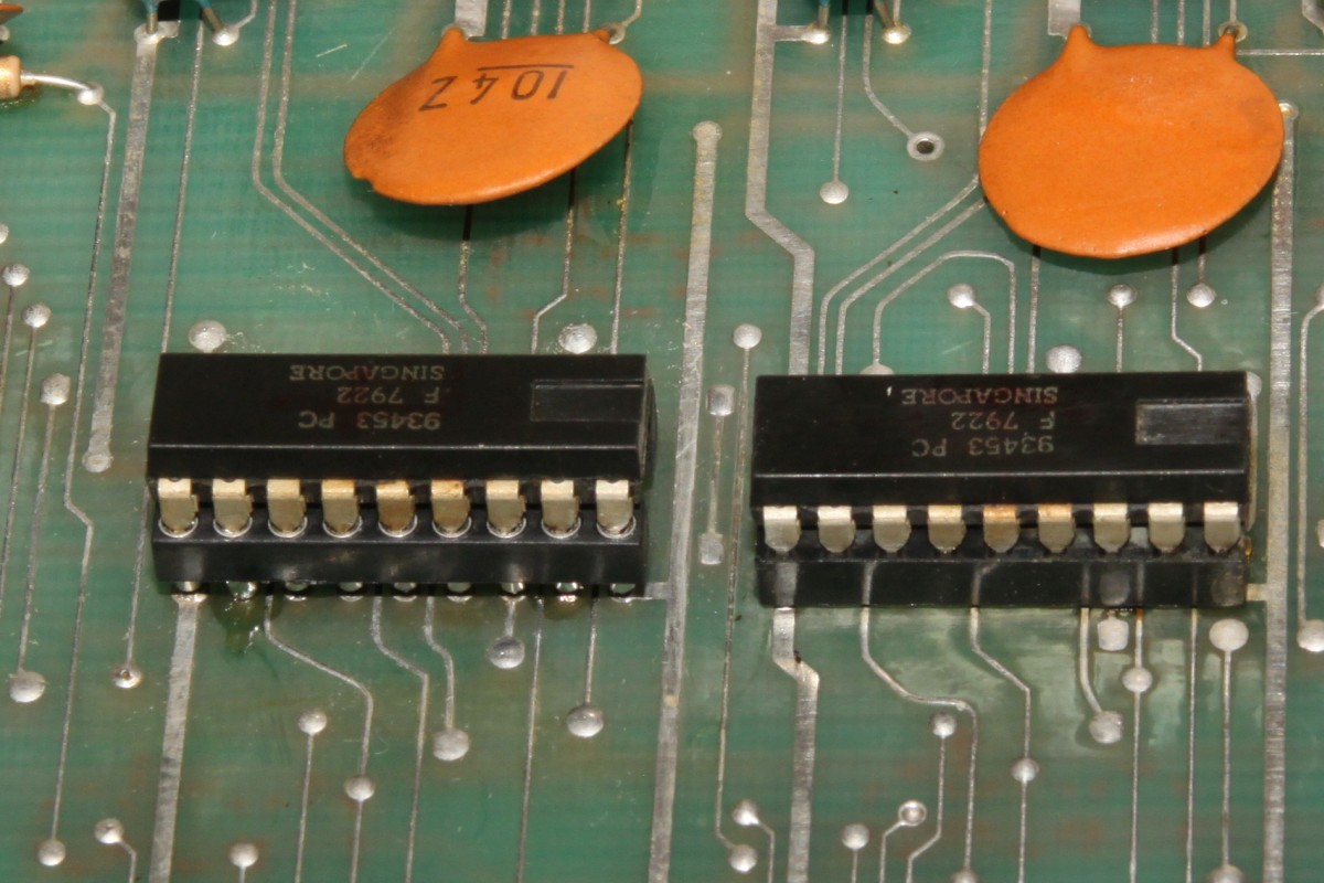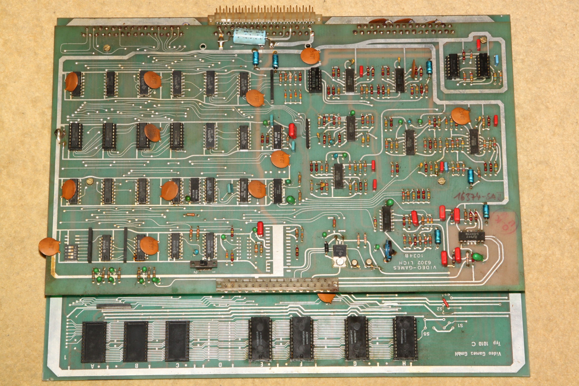 {Space Attack EPROM Version} Ein Video Games Lich Clone von Space Invaders. Hier in der EPROM / PROM-Variante. Erstaunlich, dass Lich für beide Varianten völlig unterschiedliche Layouts gefertigt hat. Der Markt muss wirklich sehr großzügig gewesen sein. {Zustand} Und jetzt noch Details, die ich Euch nicht vorenthalten möchte. Die Annahme von Reparaturplatinen setzt das Vorhandensein verschiedener Impfungen gegen Tetanus, Maul und Klauenseuche und Ebola voraus. DAS kostet extra... {Test} Nun musste ich sie einfach anwerfen. C-Videokabel geholt (das Teil hat keinen RGB-Ausgang!) und siehe da: Gameplay geht, Bild hat Streifen... {Analyse} Sodele, gerade die Programm-ROMs ausgelesen. Die PROMs SBB2616 lassen sich als 2716 nur dann auslesen, wenn man Pin 21 in die Luft biegt. (Beim EPROM Vpp, hier separater Chip-Select)... Drei davon sind bekannte Space Invaders Test ROMs, das dritte ist unbekannt. Habe sie gerade nach Österreich gemailt, MAME wird wieder Zuwachs bekommen. In MAME sieht das dann so aus: Es hat mich interessiert, worin der Unterschied zwischen der Lich Space Attack und der Space Invaders besteht... NWDIFF meldet mir: Also nur 7 Byte Unterschied... Na toll, wer macht denn sowas? ;-) {Reparatur} Ach ja, da waren ja noch die Streifen im Bild... |