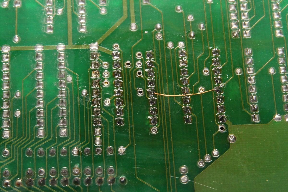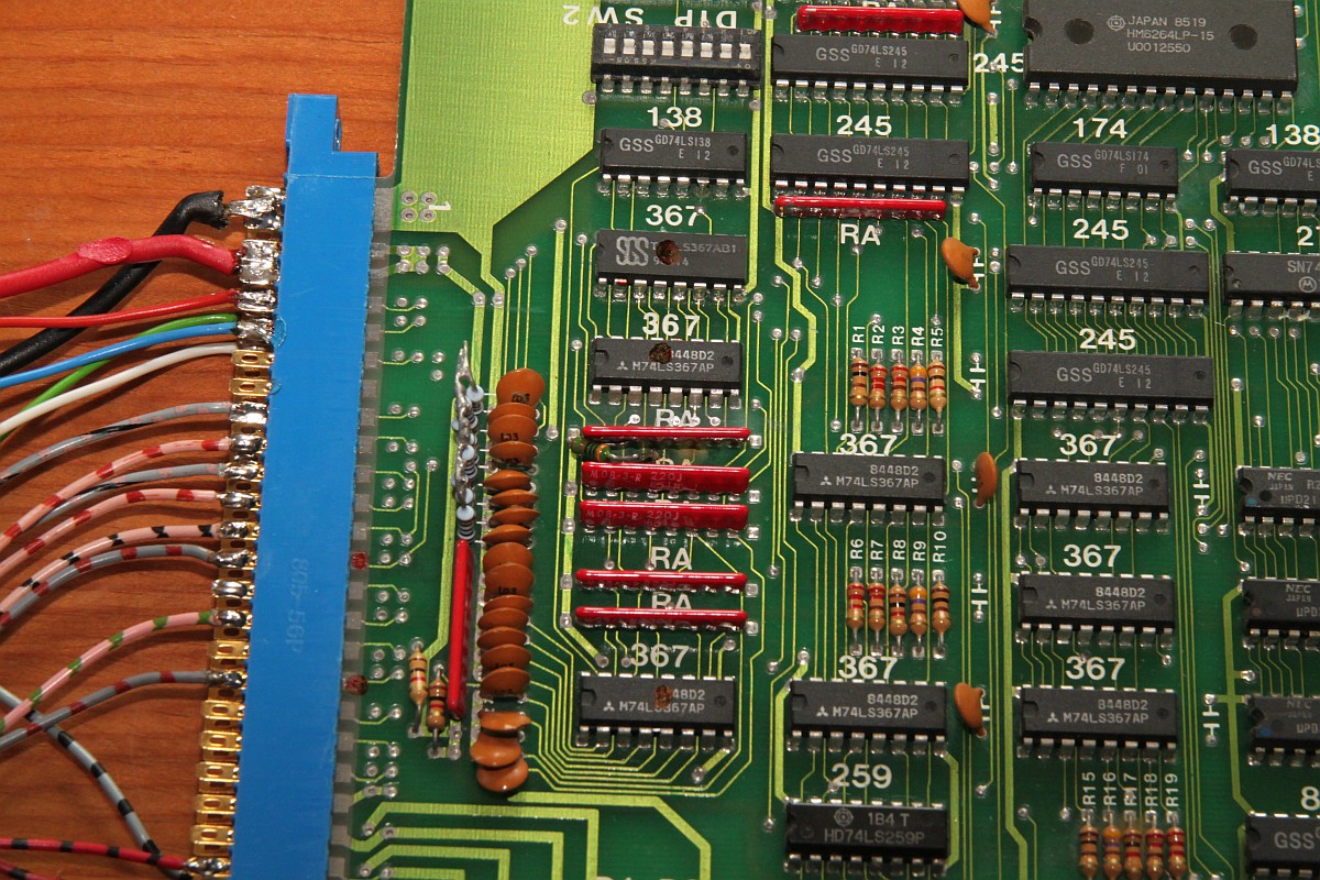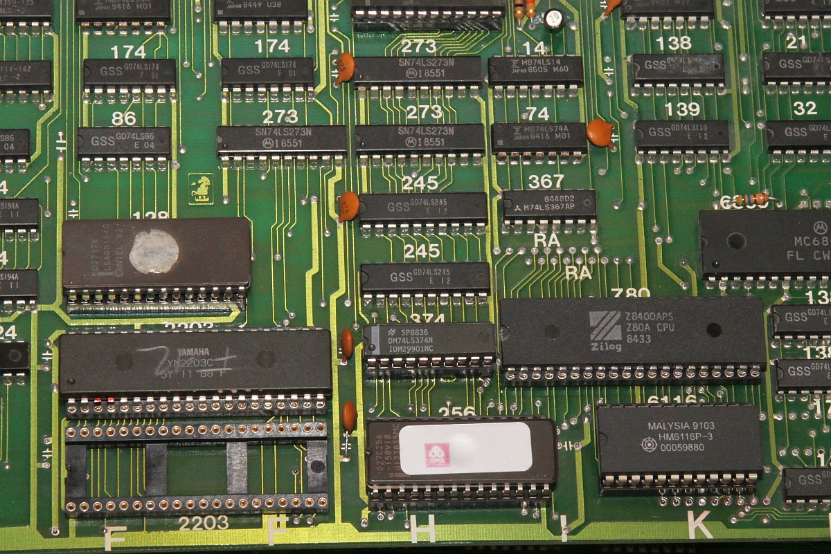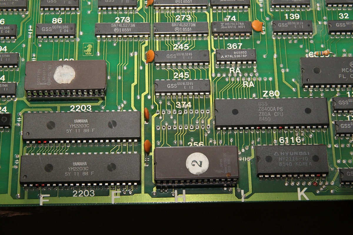 {Ghost 'n Goblins} Hatte ich schon 2014 auf dem Tisch - Grafikfehler behoben... der Nachteil, wenn man aus Faulheit nur Power und RGB verkabelt, dann fallen einem die anderen Fehler nicht auf. Also dachte ich mir, bevor das Ding zurück zu seinem Besitzer geht, teste ich noch mal alles durch. Adapter gebastelt - keine Reaktion auf Münzeinwurf... Ghost 'n Goblins hat den Nachteil, das es mit einem verlockenden 2x28-poligen Stecker ausgestattet ist - aber kein JAMMA! Daher scheint mir, werden gerne mal die Eingangskreise zerschossen... Drei 74LS367 defekt... Teile raus... Sockel rein... Natürlich Bootlegmäßig wieder mal eine Leiterbahn gehimmelt... Super - Das Spiel geht. Münzeinwurf, Steuerung, alles gut. Sound: Nope! Gibt's eigentlich irgendwas, was an dieser PCB funktioniert? Die Oszisuche im Soundkreis zeigt einen schlappen Datenbus D2 und D3... Ohje... der Originale Capcom Schaltplan arbeitet mit einem Custom - das Bootleg hat aber gut nachgebaut und den Custom durch einen Z80 mit RAM ersetzt... sonst alles ähnlich: Ganz schön was an Teilnehmern am Datenbus... Ich fange mit dem Bustreiber an: Der war's natürlich nicht... dann eben der RAM... War's natürlich nicht... Den YM-2203? Auch nicht... Z80 getauscht - nix. EPROM lässt sich perfekt lesen... Der zweite YM-2203 verbessert auch nichts... Beide YM raus: keine Besserung. Aus Verzweiflung Brenne ich das EPROM trotzdenm neu: ein Datenbit geht wieder, neues RAM: das zweite Datenbit kommt... Das Ende vom Lied: RAM und ROM haben sich gegenseitig runtergezogen und der eine YM ist defekt. Das EPROM alleine hat sich aber lesen lassen, komisch. Bis auf den YM-2203 hab ich alles da - eingesteckt: Jetzt geht auch der Ton, zumindest die eine Hälfte! Leider hat die Post wenig Rücksicht darauf genommen und einige Beinchen völlig verbogen: Egal, bekommt er halt eine Prothese - und das Schöne dabei: er funktioniert einwandfrei. GnG in voller Soundvielfalt! |