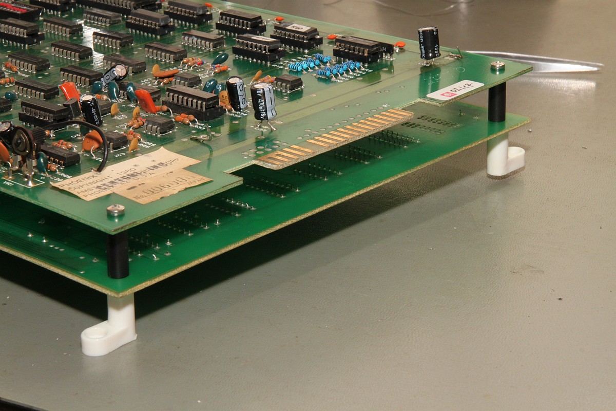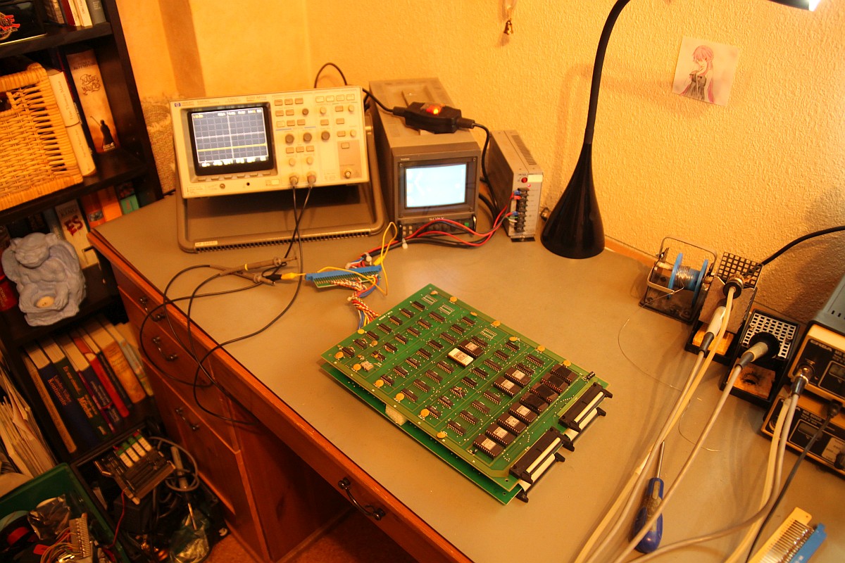 {Phoenix Bootleg Sockelung} Ein Foristi bat mich dereinst um eine professionelle Sockelung seiner Phoenix Originalplatine. Die Billigsockel vertragen sich oft mit den 2716 nicht so gut, was regelmäßig zu häßlichen Kontaktproblemen führt. Der Einsatz gedrehter IC-Sockel löst das Problem ein für alle Mal. Die PCB kam bei mir an, ich testete sie: Aha... das ist nicht so, wie es sich gehört... Ein kurzer Mailverkehr brachte nur das übliche "bei mir ging sie noch"... ;) Na ja, dann weihe ich gleich mal meinen neuen Arbeitsplatz so richtig ein: {Fehlersuche} Das Oszi sagt: alle Datenbits dieses Eproms liegen voll auf "H", ist das EPROM etwa defekt? Nicht direkt... Man sollte beim Einstecken der Bausteine in die Sockel sehr vorsichtig sein! Dann klappt's auch mit den Farben: {Sockelung} So, und jetzt mach ich mich an's Sockeln... Ja, diese alten Sockel sind wirklich unsäglich mies... Man bekommt sie sehr gut mit Heißluft und Enlötsauger kombiniert heraus... So sieht ein guter Sockel aus! Alles wird gut. Nie wieder Wackler... Fast hätte ich den 40poligen 8085 vergessen... man darf nur die unten liegende Nacharbeit nicht vergessen... Ist er nicht hübsch... Und wo jetzt alles so fein ist, hab ich der PCB anstelle der Schaumstoffteile noch richtige Abstandshalter, Schrauben und Platinenfüße gegönnt. |