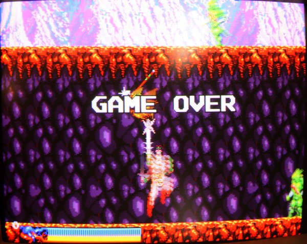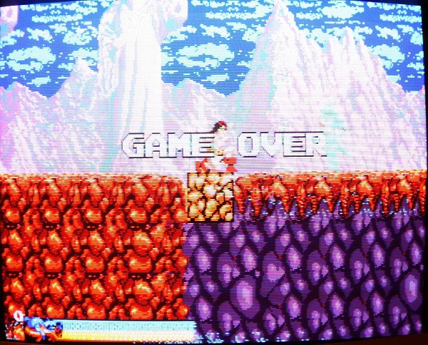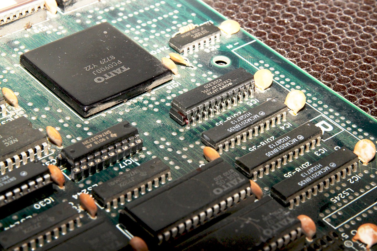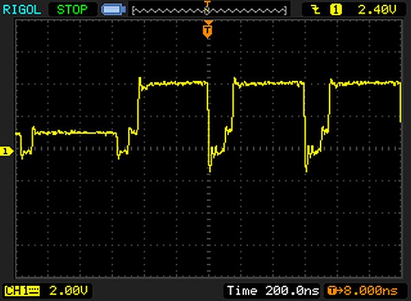 {Rastan Reparatur - die Dritte} Um diese PCB geht es: {Wiederholungstäter} manchmal kommen sie wieder... Ich hatte bereits einen schwachen Bustreiber getauscht - wir berichteten darüber: Rastan Reparaturbericht - aber die Freude des Kunden hielt nicht lange. Darauf tauschte er den zweiten Bustreiber und in Folge der Operation gleich mehrere Leiterbahnen. Hat aber nix geholfen. Dann landete der Patient wieder bei mir. Die Grafikfehler sind wieder da, jetzt noch massiver als vorher und je nach Temperatur oder Luftfeuchtigkeit sind sie mal massiv wie hier, oder sie sind fast nicht zu sehen. Also muss das Oszi mal im Grafikbereich suchen: DER Datenbus sieht mies aus. Das ist ein Grafik-RAM, das direkt aus dem daneben liegenden Custom gefüttert wird. Der wird doch nicht... ? Nein, bei RAM_WR# sehen die Daten gut aus, die niedrigen Pegel liegen nur bei RAM_RD an. Uff... Huckepackversuche bei RAMs sind selten von Erfolg gekrönt, aber bei einem grundlegenden Ausgangstreiberproblem versuche ich das mal... 6116 mit 35ns hab ich sogar da... Das sieht doch mal gut aus (ist noch nicht 100%ig, aber ich hoffe, das liegt an den parallel geschalteten RAMs...): Sodele, weiter geht's. Erstmal das RAM raus: Schön gesockelt: Endlich sind alle Objekte da, wo sie hingehören. Aber was ist das? Nach einigen Sekunden Laufzeit plötzlich Pixelartefakte auf dem Schirm... Geht an der PCB eigentlich irgendwas??? Kältespray ist bei sowas ein guter Helfer: eines der Linebuffer RAMs ist am Sterben. Auch den noch raus und sockeln: Alles sauber - hoffentlich sehe ich diesen Kandidaten nie wieder! |