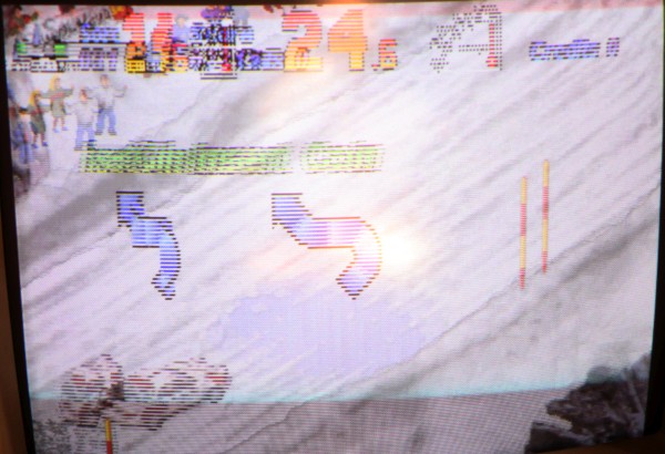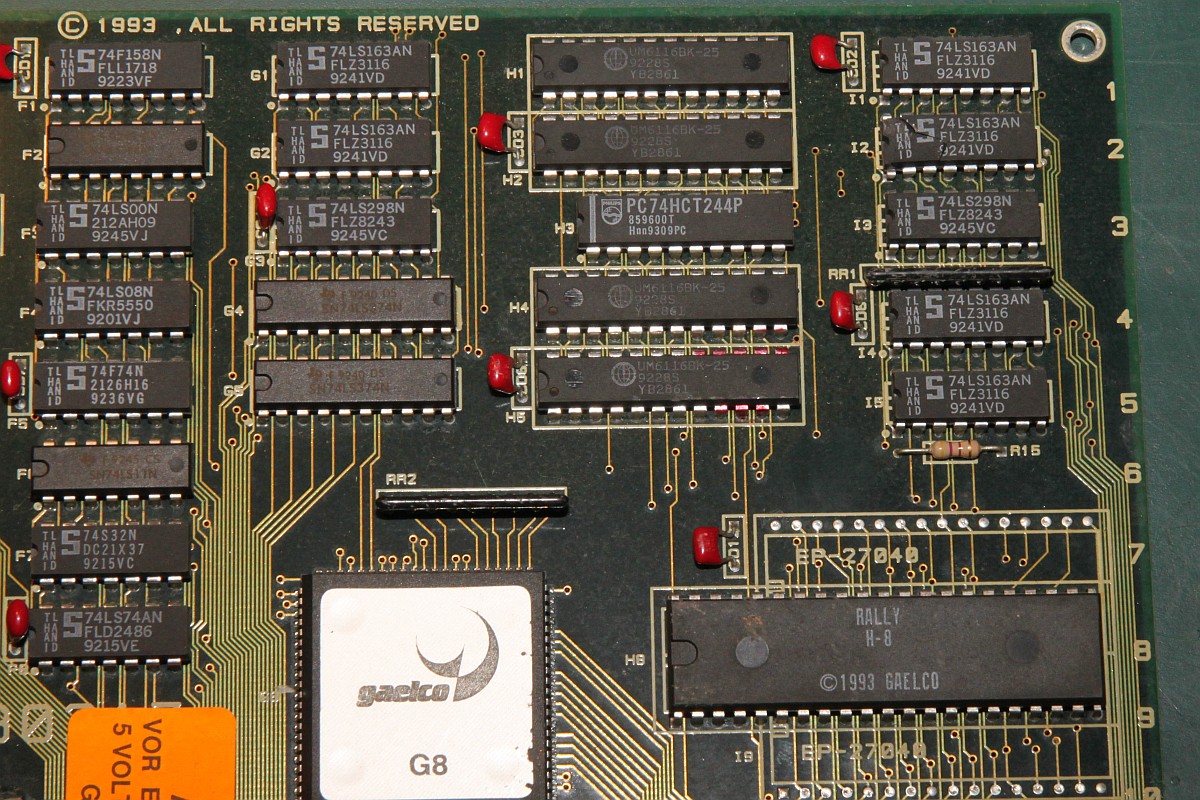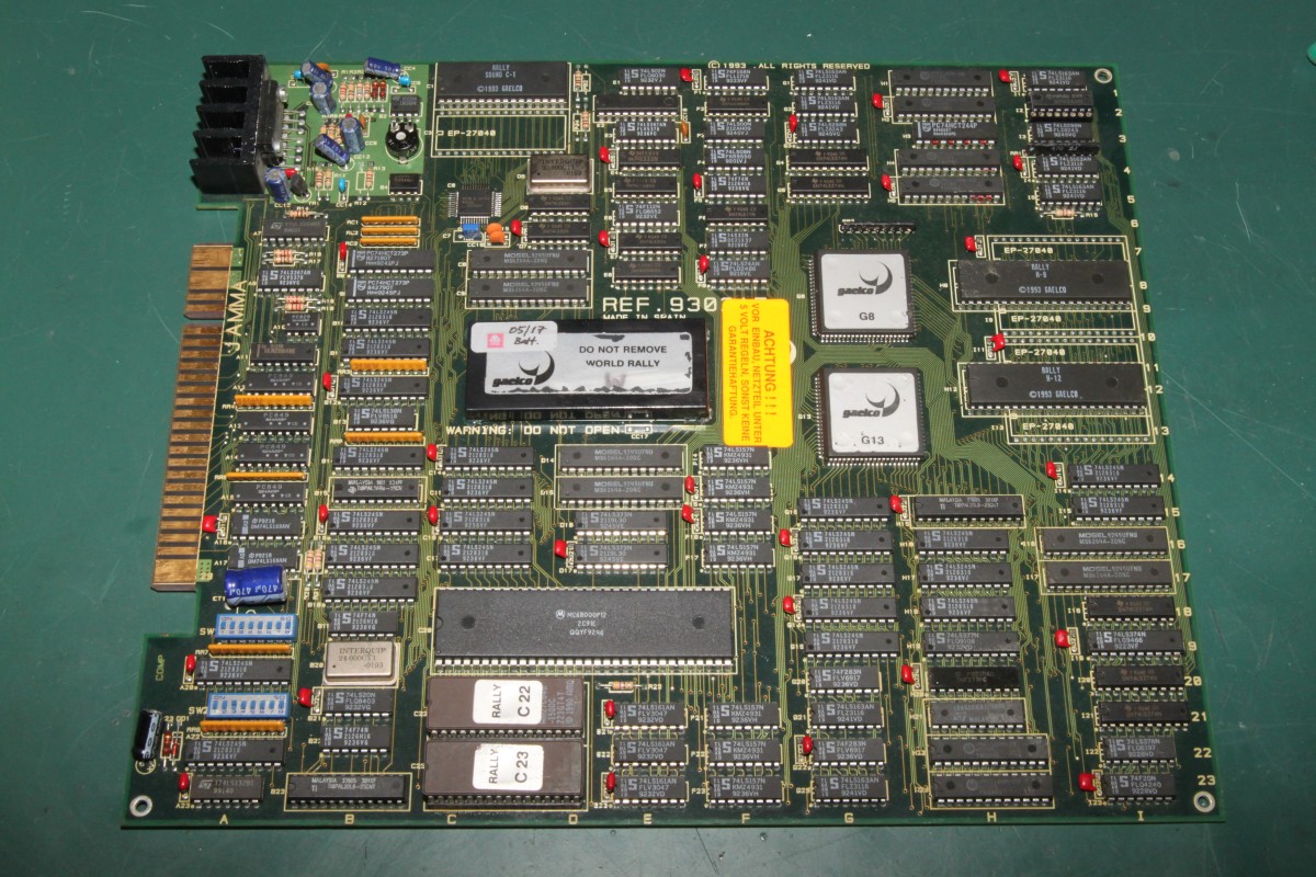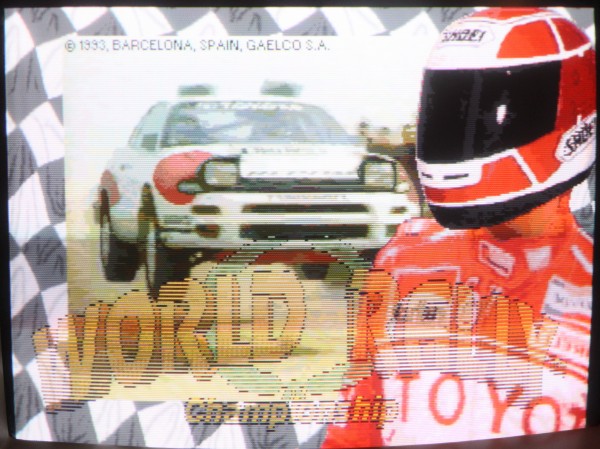 {Gaelco World Rally} World Rally mit neuer Batterie aber dafür mit häßlichen Streifen: jede zweite Sprite-Zeile fehlt...