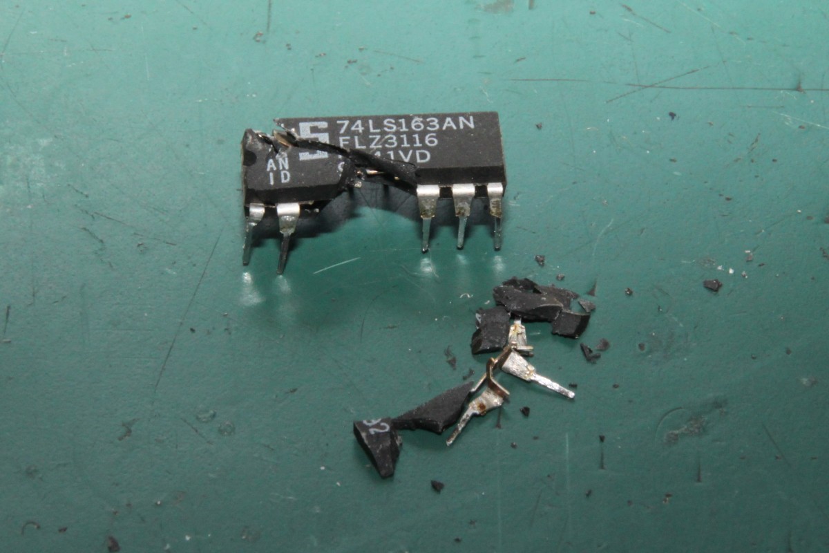 Alten TTL mit dem Enlötsauger rauspopeln - hoffentlich sind keine Leiterbahnen beschädigt...