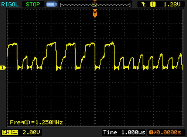{Centipede} Mein neuer Patient: Centipede - Atari Original mit guter Dokumentation: Die zwei Platinenstecker werden beide benötigt - Power auf der einen, Video auf der anderen Leiste: Da der Patient nur Grafikfehler hat (so die Kundschaft), habe ich nur das Nötigste angeschlossen: +5V, -5V, 12V, Video... Auf die exotischen +/-22V kann man für den Test verzichten. Da kommen wir schon zum Thema gute Doku: während die eine Seite des Handbuches +12V und -5V auf C bzw. D vermutet... ...belehrt einen die nächste Seite, dass diese Spannungen auf auch auf den Gegenseiten 20 und 19 zu finden sind - hier hat sich mal jemand Gedanken gemacht, was passiert, wenn der User den Stecker verkehrt herum aufsteckt. DIagnose im Gameplay: alle Sprites tummeln sich in der obersten Reihe (also eigentlich ganz links) - die Pilze sind teilweise falsch rum... Die gezielte Fehlersuche führt mich zu tauben Datenausgängen der nicht mehr ganz so leicht zu bekommenden 2101A RAMs im Playfield-RAM. Das ist der gute Datenbus: Das hier ist die taube Nuss: Raus mit den Leichen... Sauber gesockelt rein die Guten: Die Sprites sind wieder da! aber die Pilze stehen immer noch falsch und die Highscore-Tabelle ist völlig daneben... Noch mal messen. Da war doch tatsächlich einer meine "neuen" RAMs auch defekt... Egal, hab noch einige. Gut, dass ich gewechselte Bauelemente konsequent sockele. |