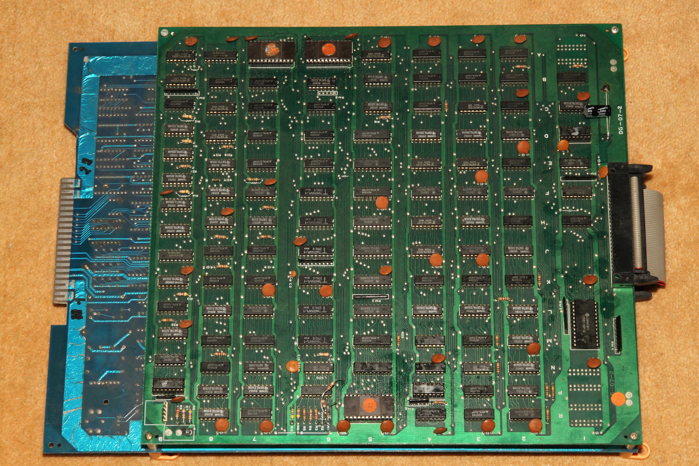 {Gallag - Bootleg von Galaga} Noch ein Quickie: Galaga Bootleg Gallag - Farben sind fast tot... Hier die PCBs - blau und grün gemischt: