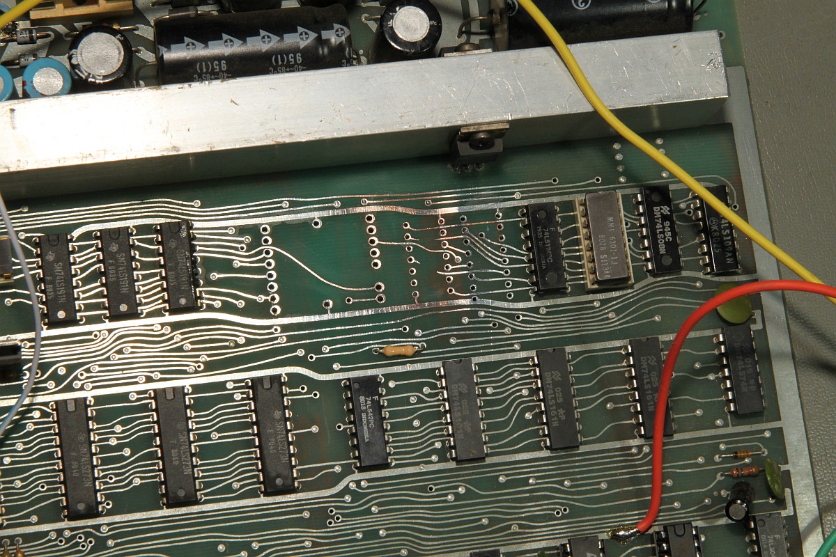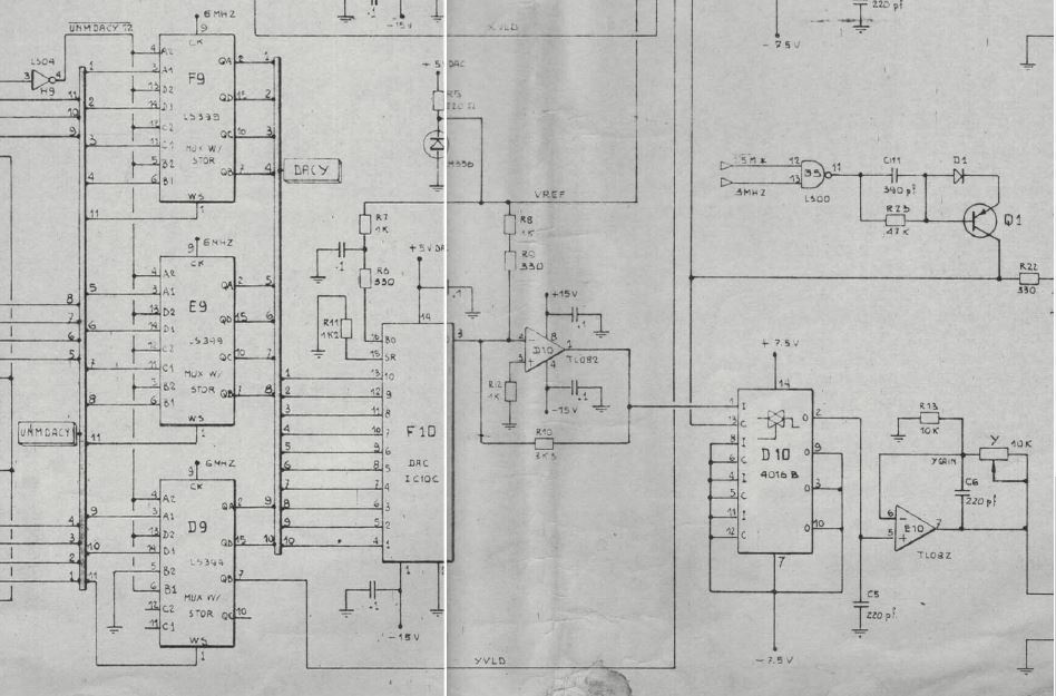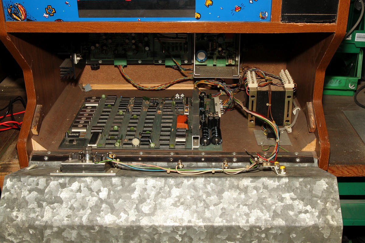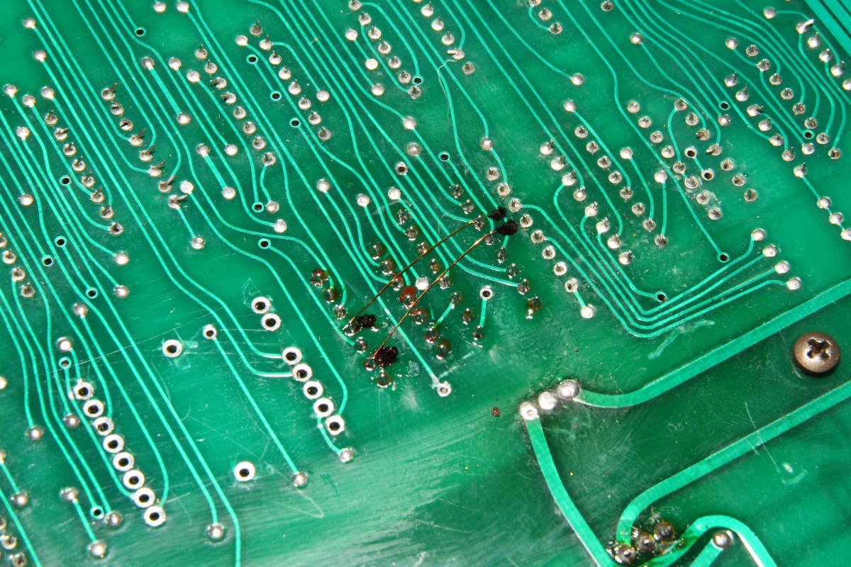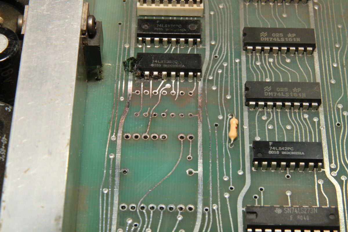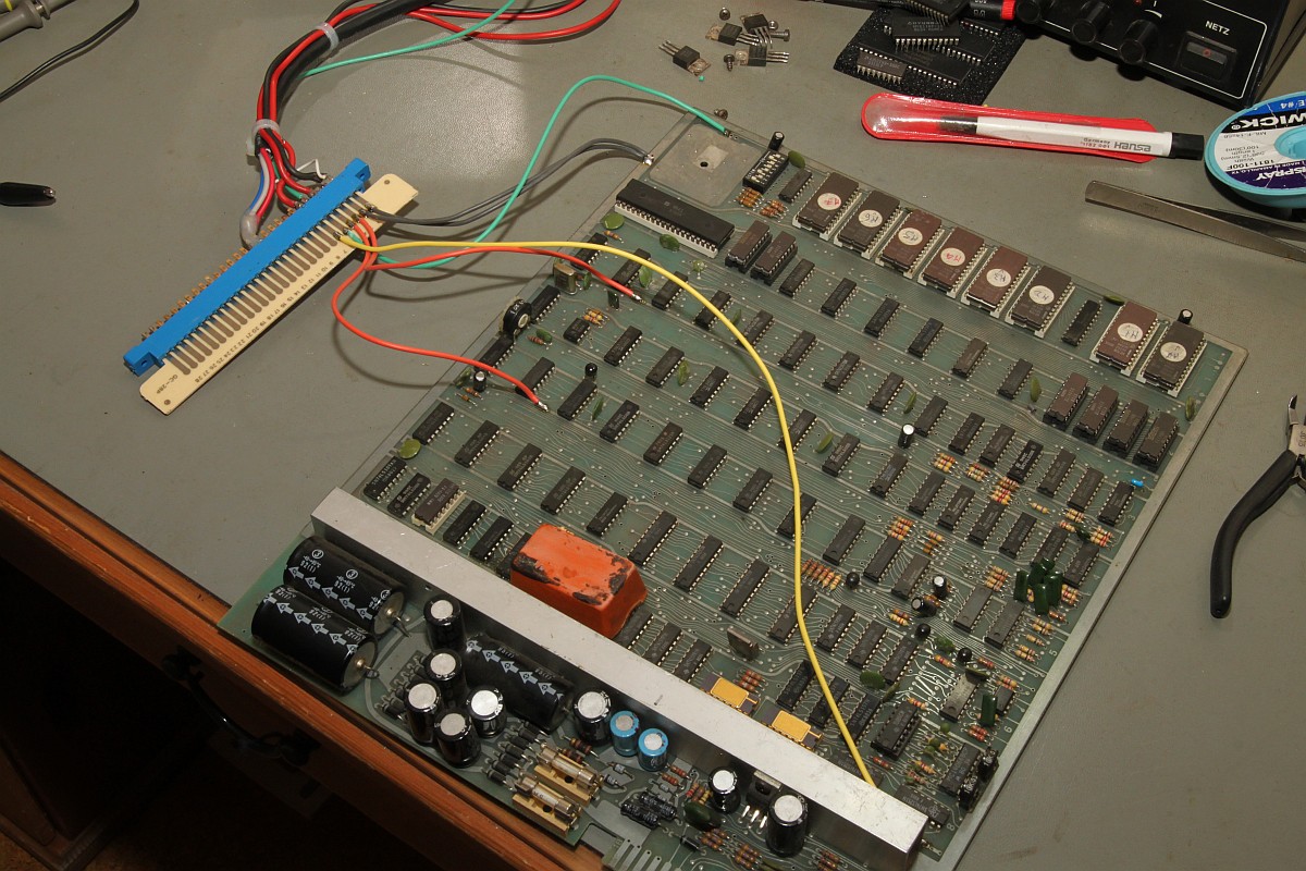 {Proel Meteorite} Ein Traum, der hoffentlich nicht zum Alptraum wird - Meteorite Wandautomat mit einer PCB, die absolut unbekannt ist und einem schicken Hantarex Vector Monitor. Status: geht nicht. In diesem Falle sollte man einem geschenkten Gaul aber mal so richtig ins Maul schauen! Proel war eine italienische Firma aus Turin, die nur einige wenige ziemlich unbekannte Bootlegs von Bootlegs hervorgebracht hat. Dieses hier ist ein Bootleg von Sidams Asterock, welches wiederum ein Bootleg von Ataris Asteroids ist. Immerhin existiert von "Asterock" ein Schaltplan... Die DACs - ohne Typenbezeichnung - und nein, es sind nicht die üblichen Asteroids AD561, doch davon später mehr... Ein bipolares Prom ist auch verbaut, wäre ja sonst auch zu einfach... Die EPROM-Bank - 2708 - wäre ja sonst auch zu einfach... Sagte ich das schon? Die Inspektion sagt: Kondensator ab. Aber mit neuem C wird es nicht besser. Das Spiel läuft, man hört es am Ton, doch als Bild kommen nach einiger Zeit nur kleine aufblitzende Punkte... Ich will das Teil jetzt auf meinem Labortisch testen und nicht in der Garage bei -5°C... Aber woher nimmt man die üble Spannungsversorgung? Sicherheitshalber entferne ich alle Linearregler und speise direkt ein: Jammafiziert... Doch der DAC benötigt laut SIDAM Asterock Schaltplan noch eine -15V Hilfsversorgung... dafür hab ich immer einen Sack voller DC/DC-Wandler: Hier ist er (Jetzt die Frage: aber da steht doch +15V drauf... das Teil ist galvanisch getrennt, einfach die +15V mit Masse brücken, schon ist die Masse -15V.): Alle Spannungen dran - leider kommt immer noch nichts Gescheites raus, obwohl an den DA-Wandler-Dateneingängen die Hölle los ist... Ach ja, D/A-Wandler - nach langer Suche habe ich rausgefunden, was das für einer sein könnte: Analogausgang an Pin 3 - sollte also ein DAC100 sein... Gestern hab ich in der kalten Garage noch mal im Automaten gemessen... Pin 16 des DAC liegt stabil auf 0V, obwohl der doch eigentlich auf der Referenzspannung dümpeln sollte... Da kann nichts Analoges rauskommen, wenn ich das richtig verstehe. Vielleicht ist ja auch der nachfolgende TL084 hin... Oder aber der nachfolgende OP-AMP reguliert das auf 0V nach... (So ist es übrigens auch!) da der Automat im Gegensatz zum Video des Vorbesitzers bei mir gar kein Bild hatte, hab ich mal ein thermisches Problem vermutet und bin mit dem Heißluftfön in die Garage gewandert. Das wäre sicher ein seltsames Bild gewesen - Mike hält einen Fön in einen offenen Wandautomaten und freut sich... Heureka, nach wenigen Minuten hatten wir das beschriebene durchlaufende Bild. Cool. Der Hantarex-Vector ist gestochen scharf! Also Fazit: der Analogteil funzt. Mal so ganz grundsätzlich. ...und einen 74LS00: Leider lag es auch daran nicht... Die beiden TTLs waren es nicht - die alten Vektor-Hunde haben die unangenehme Eigenschaft, digitale und analoge Teile trickreich miteinander zu mischen, da kommen solche seltsam geplätteten Kurvenformen vor... Also dachte ich bei mir: sieh Dir mal das Vektor-Bild auf dem X-Y-Kanal des Oszis an. 3000 DM Digitaloszi - 500MHz Bandbreite - völlig unbrauchbar für sowas... Aber hey - ich war ja nicht blöde und hab mal bei einem Analogoszi-Wrack mit Dellen und ohne Deckel für 'nen Zehner zugegriffen... Das geht schon besser: Man sieht: die X-Ablenkung funktioniert leidlich, die Y-Ablenkung kennt nur eine Zeile... Da stimmt doch was mit den Zählern nicht - die werden mit der Anfangskoordinate vorgeladen und zählen dann je nach Vektor rauf oder runter und malen dabei einen Strich... LDSTROBE nach dem LS32 war dauerhigh - es gab also kein Vorladen... So kann es nicht funktionieren. Das erklärt auch das Durchlaufen des Bildstreifens: es konnte keine neue Anfangskoordinate gesetzt werden, es ging nur immer auf- oder abwärts... Der LS32 sitzt links vom orangen Custom-Block - mittendrin im Vergussmassen-Schmodder. Sein Eingangssignal ist platt. Ich finde keine Verbindung zu anderen Bausteinen. Also alles raus und sauber machen... {Reparatur - endlich!} Custom raus... 74LS32 raus... ...und den 74LS138 auch noch, da ist auch Schmodder drunter... Nach dem Putzen offenbart sich Grusliges: da fehlen einige Kupferatome... geradezu weggefressen von der sich auflösenden Vergussmasse: Das kann so nicht funktionieren: Den "Custom" hab ich gleich mal entschärft, dass der mit nichts anderem mehr in Berührung kommt: Die zerfressenen Leiterbahnen auf der Unterseite geflickt: Alles wieder sauber bestückt: Das Billigoszi liefert doch gleich mal einen guten Eindruck... Juchu... Mein Arbeitsplatz im Warmen: Draußen im Kalten - in der Garage - steht einsam der Automat... Wieder bestückt: Er bestraft mich mit akuter Bildlosigkeit - hab ich auch irgendwie verdient. Erst, als ich ihm mit meinem Heißluftfön auf Zimmertemperatur bringe, wird das Bild hell... ich denke, hier muss ich mich noch mal mit der Technik des Hantarex auseinandersetzen. Aber wenn er kuschelig warm ist, belohnt er mich mit gutem Bild: Erstaunlich, dass eine italienische Firma ein Bootleg eines Bootlegs eines Originalspiels tatsächlich mit deutschen Texten ausgestattet hat... Ist es nicht schön? Nächster Halt: 2708 auslesen - MAME zuführen - Hanta fixen. |