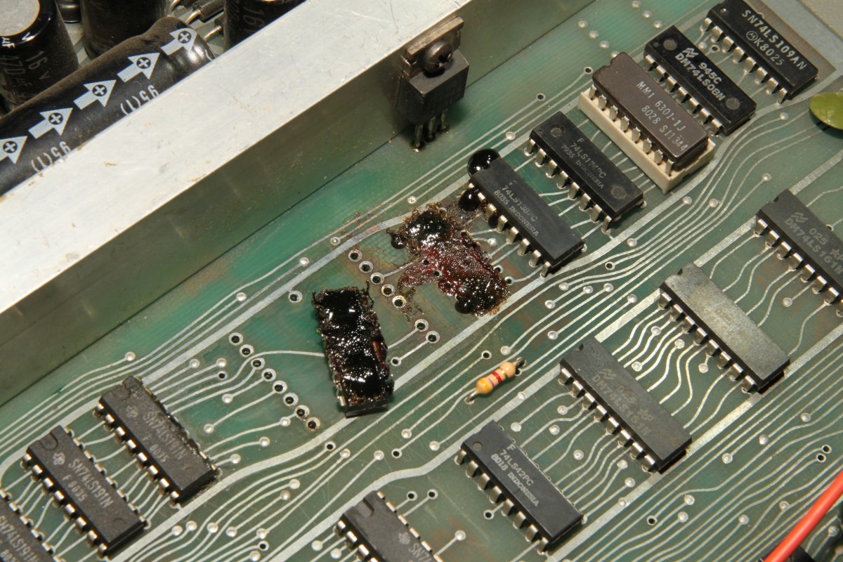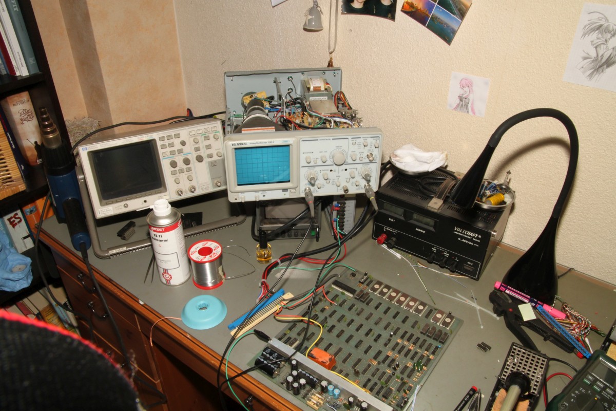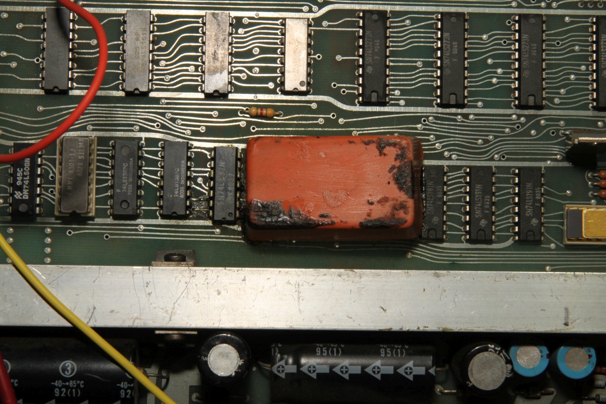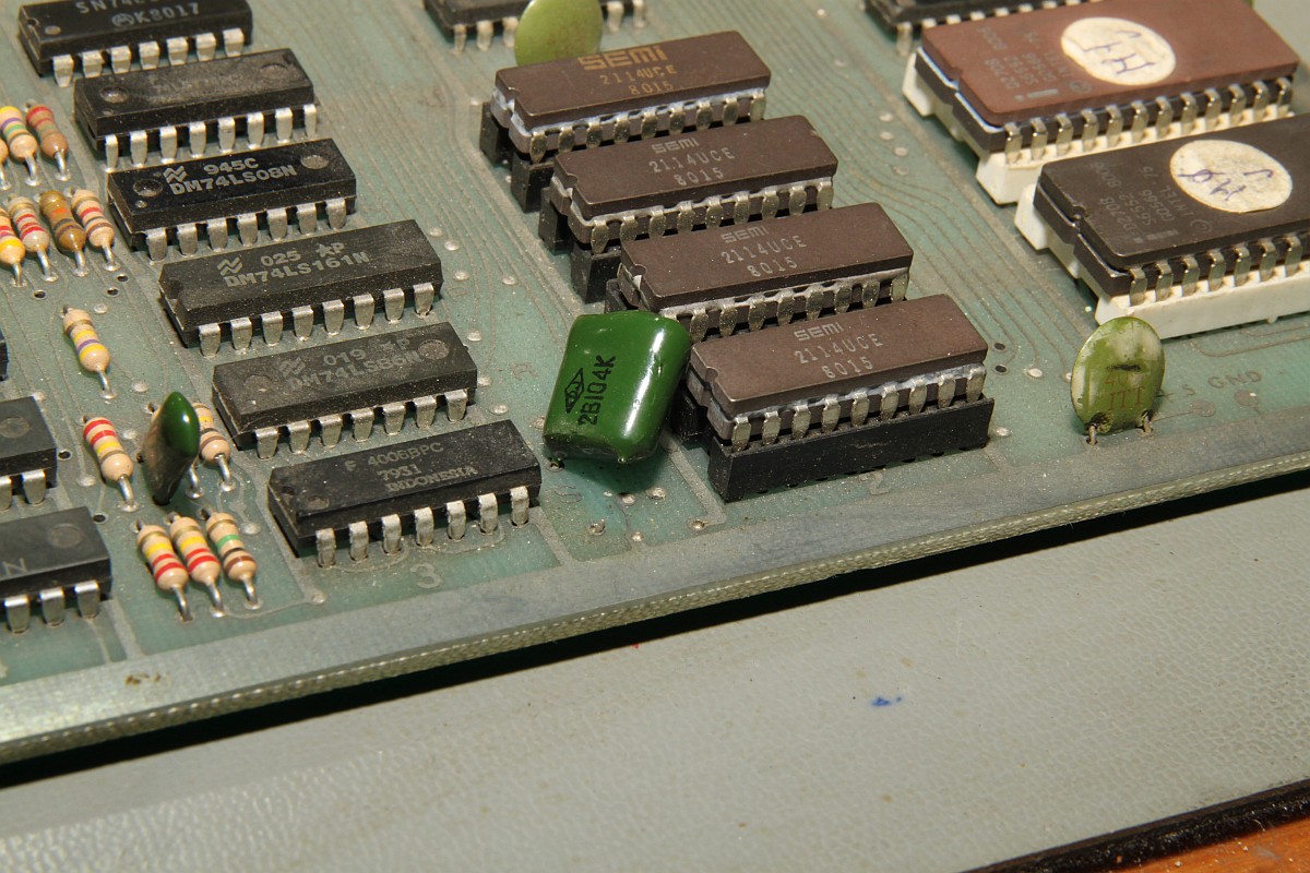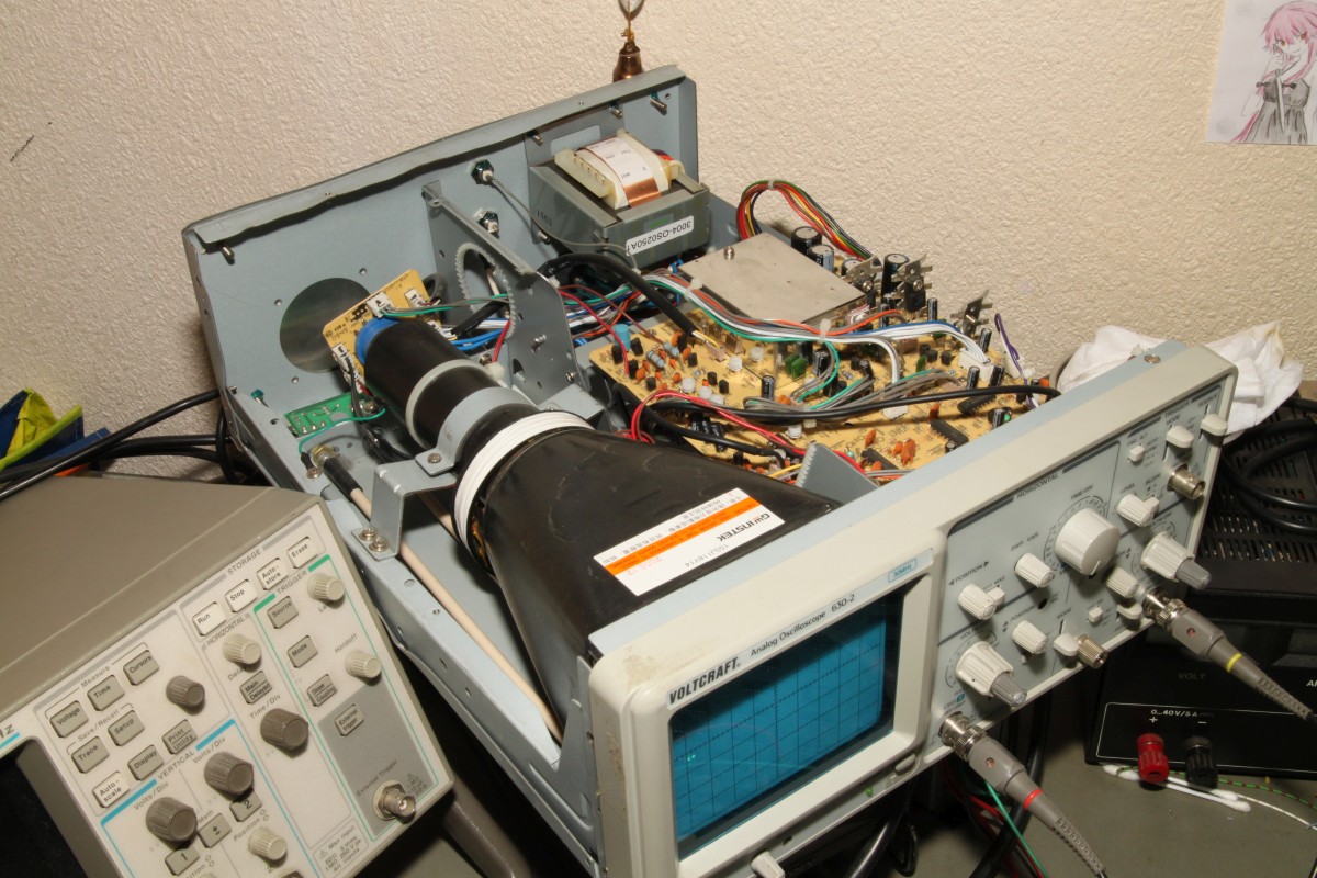 {Proel Meteorite} Ein Traum, der hoffentlich nicht zum Alptraum wird - Meteorite Wandautomat mit einer PCB, die absolut unbekannt ist und einem schicken Hantarex Vector Monitor. Status: geht nicht. In diesem Falle sollte man einem geschenkten Gaul aber mal so richtig ins Maul schauen! Proel war eine italienische Firma aus Turin, die nur einige wenige ziemlich unbekannte Bootlegs von Bootlegs hervorgebracht hat. Dieses hier ist ein Bootleg von Sidams Asterock, welches wiederum ein Bootleg von Ataris Asteroids ist. Immerhin existiert von "Asterock" ein Schaltplan... Die DACs - ohne Typenbezeichnung - und nein, es sind nicht die üblichen Asteroids AD561, doch davon später mehr... Ein bipolares Prom ist auch verbaut, wäre ja sonst auch zu einfach... Die EPROM-Bank - 2708 - wäre ja sonst auch zu einfach... Sagte ich das schon? Die Inspektion sagt: Kondensator ab. Aber mit neuem C wird es nicht besser. Das Spiel läuft, man hört es am Ton, doch als Bild kommen nach einiger Zeit nur kleine aufblitzende Punkte... Ich will das Teil jetzt auf meinem Labortisch testen und nicht in der Garage bei -5°C... Aber woher nimmt man die üble Spannungsversorgung? Sicherheitshalber entferne ich alle Linearregler und speise direkt ein: Jammafiziert... Doch der DAC benötigt laut SIDAM Asterock Schaltplan noch eine -15V Hilfsversorgung... dafür hab ich immer einen Sack voller DC/DC-Wandler: Hier ist er (Jetzt die Frage: aber da steht doch +15V drauf... das Teil ist galvanisch getrennt, einfach die +15V mit Masse brücken, schon ist die Masse -15V.): Alle Spannungen dran - leider kommt immer noch nichts Gescheites raus, obwohl an den DA-Wandler-Dateneingängen die Hölle los ist... Ach ja, D/A-Wandler - nach langer Suche habe ich rausgefunden, was das für einer sein könnte: Analogausgang an Pin 3 - sollte also ein DAC100 sein... Gestern hab ich in der kalten Garage noch mal im Automaten gemessen... Pin 16 des DAC liegt stabil auf 0V, obwohl der doch eigentlich auf der Referenzspannung dümpeln sollte... Da kann nichts Analoges rauskommen, wenn ich das richtig verstehe. Vielleicht ist ja auch der nachfolgende TL084 hin... Oder aber der nachfolgende OP-AMP reguliert das auf 0V nach... (So ist es übrigens auch!) da der Automat im Gegensatz zum Video des Vorbesitzers bei mir gar kein Bild hatte, hab ich mal ein thermisches Problem vermutet und bin mit dem Heißluftfön in die Garage gewandert. Das wäre sicher ein seltsames Bild gewesen - Mike hält einen Fön in einen offenen Wandautomaten und freut sich... Heureka, nach wenigen Minuten hatten wir das beschriebene durchlaufende Bild. Cool. Der Hantarex-Vector ist gestochen scharf! Also Fazit: der Analogteil funzt. Mal so ganz grundsätzlich. ...und einen 74LS00: Leider lag es auch daran nicht... Die beiden TTLs waren es nicht - die alten Vektor-Hunde haben die unangenehme Eigenschaft, digitale und analoge Teile trickreich miteinander zu mischen, da kommen solche seltsam geplätteten Kurvenformen vor... Also dachte ich bei mir: sieh Dir mal das Vektor-Bild auf dem X-Y-Kanal des Oszis an. 3000 DM Digitaloszi - 500MHz Bandbreite - völlig unbrauchbar für sowas... Aber hey - ich war ja nicht blöde und hab mal bei einem Analogoszi-Wrack mit Dellen und ohne Deckel für 'nen Zehner zugegriffen... Das geht schon besser: Man sieht: die X-Ablenkung funktioniert leidlich, die Y-Ablenkung kennt nur eine Zeile... Da stimmt doch was mit den Zählern nicht - die werden mit der Anfangskoordinate vorgeladen und zählen dann je nach Vektor rauf oder runter und malen dabei einen Strich... LDSTROBE nach dem LS32 war dauerhigh - es gab also kein Vorladen... So kann es nicht funktionieren. Das erklärt auch das Durchlaufen des Bildstreifens: es konnte keine neue Anfangskoordinate gesetzt werden, es ging nur immer auf- oder abwärts... Der LS32 sitzt links vom orangen Custom-Block - mittendrin im Vergussmassen-Schmodder. Sein Eingangssignal ist platt. Ich finde keine Verbindung zu anderen Bausteinen. Also alles raus und sauber machen... {Reparatur - endlich!} Custom raus... 74LS32 raus... ...und den 74LS138 auch noch, da ist auch Schmodder drunter... Nach dem Putzen offenbart sich Grusliges: da fehlen einige Kupferatome... geradezu weggefressen von der sich auflösenden Vergussmasse: Das kann so nicht funktionieren: Den "Custom" hab ich gleich mal entschärft, dass der mit nichts anderem mehr in Berührung kommt: Die zerfressenen Leiterbahnen auf der Unterseite geflickt: Alles wieder sauber bestückt: Das Billigoszi liefert doch gleich mal einen guten Eindruck... Juchu... Mein Arbeitsplatz im Warmen: Draußen im Kalten - in der Garage - steht einsam der Automat... Wieder bestückt: Er bestraft mich mit akuter Bildlosigkeit - hab ich auch irgendwie verdient. Erst, als ich ihm mit meinem Heißluftfön auf Zimmertemperatur bringe, wird das Bild hell... ich denke, hier muss ich mich noch mal mit der Technik des Hantarex auseinandersetzen. Aber wenn er kuschelig warm ist, belohnt er mich mit gutem Bild: Erstaunlich, dass eine italienische Firma ein Bootleg eines Bootlegs eines Originalspiels tatsächlich mit deutschen Texten ausgestattet hat... Ist es nicht schön? Nächster Halt: 2708 auslesen - MAME zuführen - Hanta fixen. |