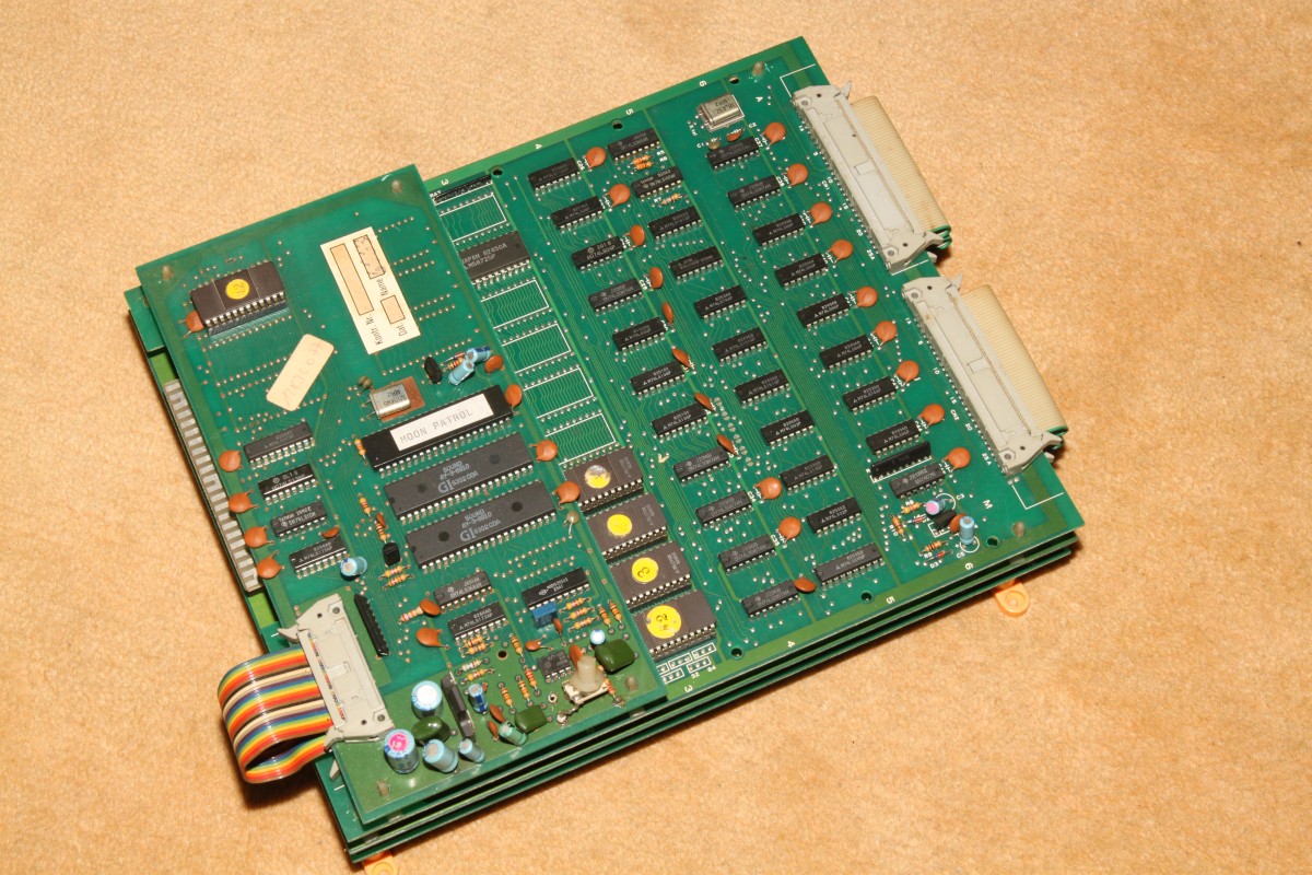 Bild geht, Ton geht, Start geht - doch zu früh gefreut... bei Münzeinwurf startet das Spiel sofort, ebenso beim Test-Switch... da ist wohl der Eingangsbuffer für die Controls defekt.
