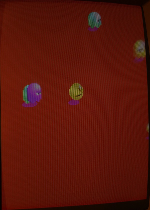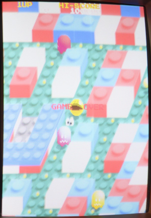 {Pacmania} der Patient - Pacmania, Namco System 1. Symptome: kein Tiles Layer, kein Text Layer. Messungen zeigen: Null Aktivitäten an den entsprechenden EPROMs, kein Datenbus, kein Adressbus... Zuständig ist hier der freundliche Custom Chip CUS123... Zum Messen sollte man die Beinchenzahlen ordentlich numerieren: Interessantes Bild: alle Sprites gehen, Sound ist gut... leider nicht spielbar, man sieht vom Spielfeld nichts. Upps... an den Beinchen 72 und 73 liegen +5V und GND direkt nebeneinander - nicht schlimm, weil a) die Versorgung noch an einigen anderen Beinchen anliegt und b) der Custom eh platt ist... Grün: Action. Rot: völlige Stille... Ich weiss gar nicht, was ich sagen soll... Soeben kam ein Paket an... Es gibt in den Arcadeforen freundliche Helferlein. Ein großer Dank geht an Tom von Arcadiabay!!! Schrott kann manchmal sooo hilfreich sein - gleich kanibalisiert. Auf dem Patienten die Leiche entfernt - man sieht die angeschmorte +5V-Leitung... mea culpa... Gut geputzt - die Schmorleitung ist gleich mal komplett abgegangen. Mal sehen, ob die übrigen Stromversorgungsleitungen ausreichen. Der Custom wird ja nicht mal warm... Hübsch aufgelötet und geputzt: Mein Arbeuitsplatz (mit freundlicher Genehmigung von meiner Lütten...): Huston, wir haben ein Bild!!! (auch wenn es viel zu hell ist...) Bei dem Videopegel wundert mich das nicht - da muss das Herrchen der PCB wohl Dioden oder Widerstände in die RGB-Leitungen legen. |