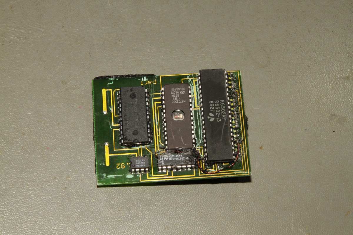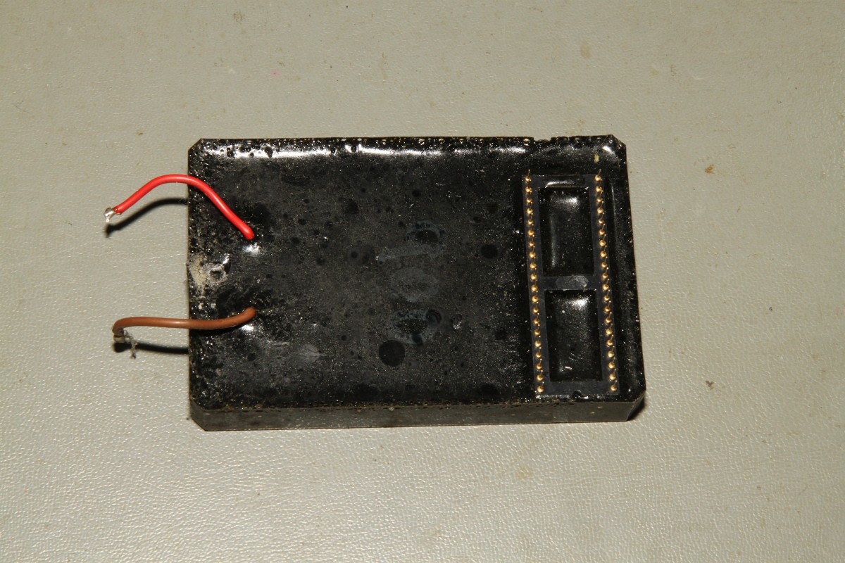 Okey... eine 6502, SRAM, NVRAM-Controller und ein EPROM. Das ganze hängt an einer Batterie, die das RAM versorgt. War ja jetzt nicht sooo spannend... warum die sich die Mühe gemacht haben, das ganze so aufwändig zu vergießen - keine Ahnung. Ein lustiger Hinweis noch von einem Foristi aus der Arcadeszene: "Als Form für das Gießen des Blocks dienten übrigens die Plastikhüllen von Kartenspielen."