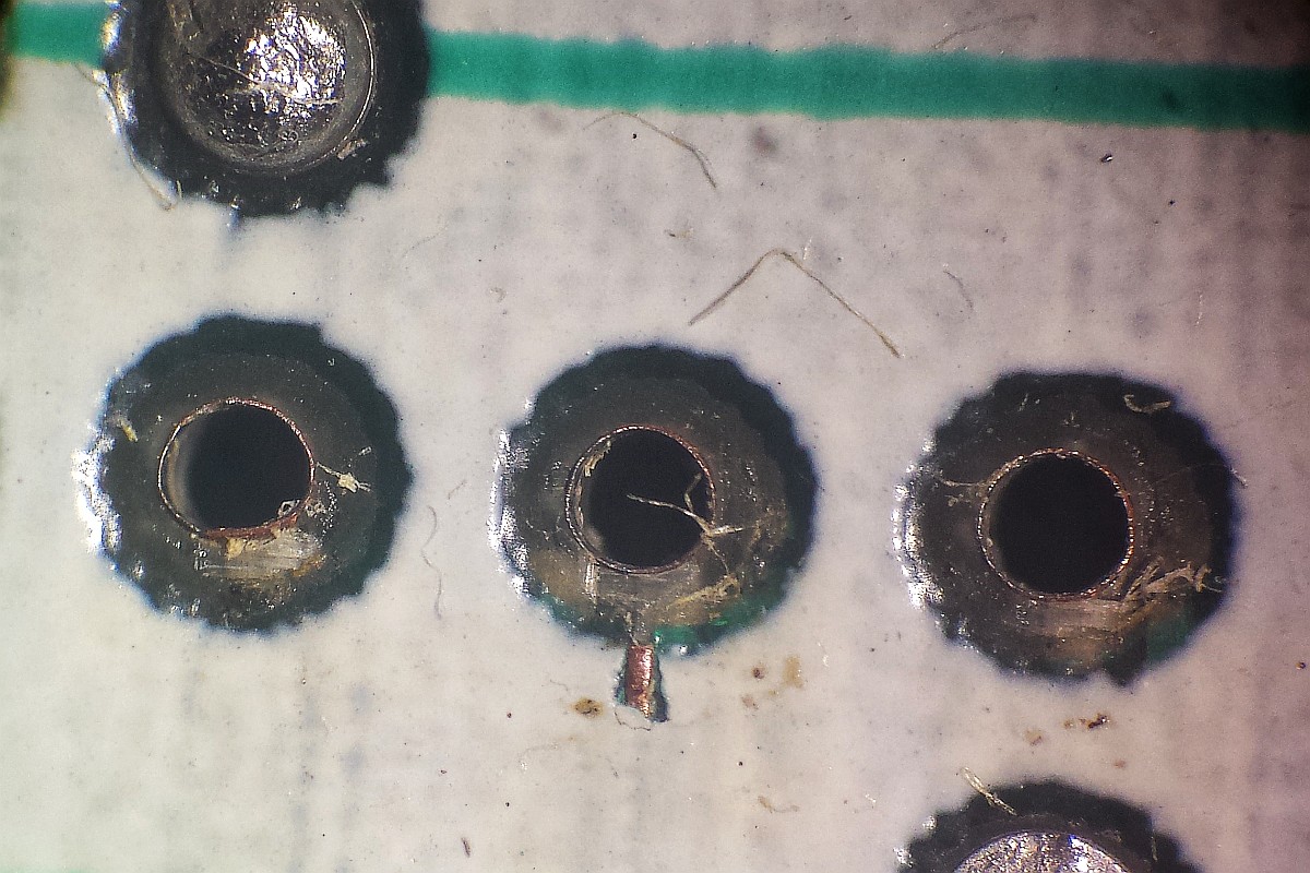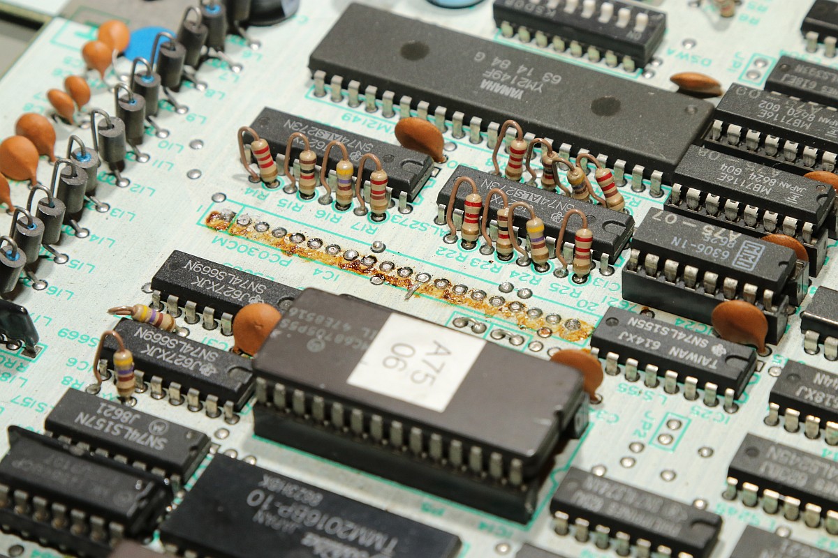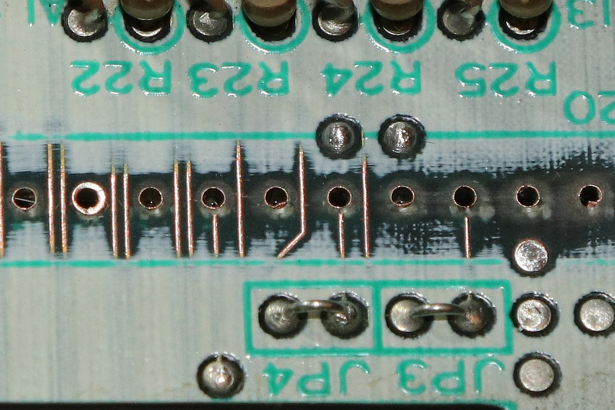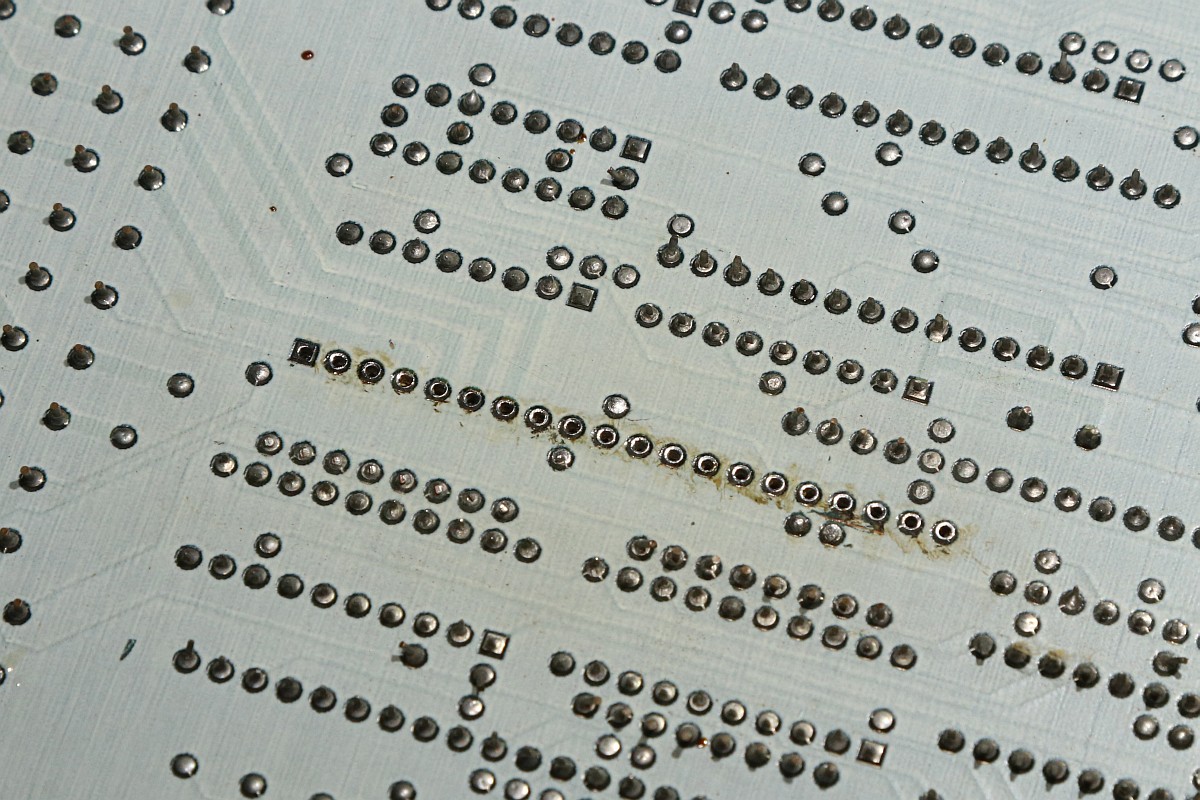 {Arkanoid im Original} vielen nicht bekannt: die Originale Taito Arkanoid-Platine ist eine Schönheit in Weiß! Was die Konstruktion nicht besser macht... Hier erst mal ein Blick auf eines der weithin bekannten Bootlegs: Das hier ist das seltenere Original, leider funktionsuntüchtig und nicht leicht zu reparieren... Die PCB-Bilder sind hoch auflösend und werden auf Klick ganz groß! Der Bildschirm begrüßt mich mit einem bekannten Fehler - ausgelöst mit großer Wahrscheinlichkeit von einer Teilnahmeverweigerung des bekannten Taito-Custom-Hybrid-Chips PC030CM. Der ist in so einigen Taito-Spielen verbaut, liest die Coin-Switches und steuert die Coin-Counter und Lockouts. Mittlerweile gibt es dazu sogar einen recht kostenintensiven Nachbau... ist nicht viel drin, aber dazu später! Nach Herumdrücken mit dem Tastkopf auf dem PC030CM lässt sich das Spiel sogar zum Starten bewegen, das Drama nimmt seinen Lauf! Das sieht jetzt grafisch mal gar nicht so gut aus... manche Sprites sind schlichtweg falsch. Gut, dass das Verhalten stark berührungsempfindlich ist. Da lässt sich der Fehler schnell eingrenzen: Adressbus A12 an den Sprite-GFX-EPROMs ist fritte... Da ist er... wer zum Teufel setzt 74LS298 ein - die hatte ich in meinem ganzen Arcade-Leben noch nie gebraucht, hab ich natürlich nicht da. Ein Blick in die Elektrobucht sagt mir, dass die Teile so teuer wie selten sind. Aber eine geduldige Suche führt mich zu 74298 ohne LS... die gibt es zeitweilig günstiger. Hier mal der entscheidende Schaltplanteil: Ich bin ein Magier - ich kann das Bild durch Fingeranlegen scheißig machen... ;-) Solange die TTLs noch nicht da sind, kann ich mich ja mal mit dem Hybridbaustein beschäftigen. Eigentlich macht der oft Probleme, weil er durch Biegung am Keramiksubstrat bricht... Der hier sieht eigentlich gut aus - zumindest bis zu den Pins. ...die sich mit der Platine teilweise nicht wirklich verbunden fühlen... Das Teil muss sauber raus! Von wegen Pins, der hat ja keine mehr... Das muss sauber gemacht werden, sonst sieht man nichts... Von unten sieht die Platine gut aus... Von oben fallen zu Allererst die schwarzen Ringe um die Vias auf, da fehlt wohl Kupfer... Jetzt merkt man, wie blöd es ist, eine Platine vollflächig weiß zu lackieren, man erkennt nicht, wo die Leiterbahnen langgehen. Der Glasfaserstift ist hier mein bester Freund: Also: die mechanische Belastung auf den Hybridbaustein hat vermutlich die oberen Lötaugen abgerissen und dabei die haarfeinen Leiterbahnen abgetrennt, da hift auch Lötgeschmodder nichts, da muss ich chirurgisch ran. Das ist hier mal der Blick durch das Mikroskop: Vias vorhanden, Restrings sind weg. Das wird was Längeres, bei dem viel Geduld und Fingerspitzengefühl gefragt ist - es geht ganz sicher weiter mit dieser Geschichte! {Reparatur} ...und so schnell... die TTLs sind da - danke, Kessler! Alt raus... ...und den neuen rein - ohne LS funktioniert das hier auch, die Teile sind etwas schneller und verbrauchen dafür etwas mehr Strom. Das spielt hier absolut keine Rolle! Der PC030CM erhält eine Luxus-Gehhilfe: ein 40poliger DIL-Sockel musste dafür sein Leben geben... Die Platine bekommt die zweite Hälfte, ich mag es lieber demontierbar, man weiß ja nie, ob der Hybride ganz in Ordnung ist! Die abgerissenen Leiterbahnen kann man prima auf der Unterseite flicken, das sieht sauber aus und hält vor Allem auch mechanisch! Lötbrücken auf der Oberseite wären sicher wieder demnächst abgerissen. Der Patient wird eingesteckt und die Platine bestromt... Tschacka - alles wieder gut... Coinup und Controls laufen auch einwandfrei! |