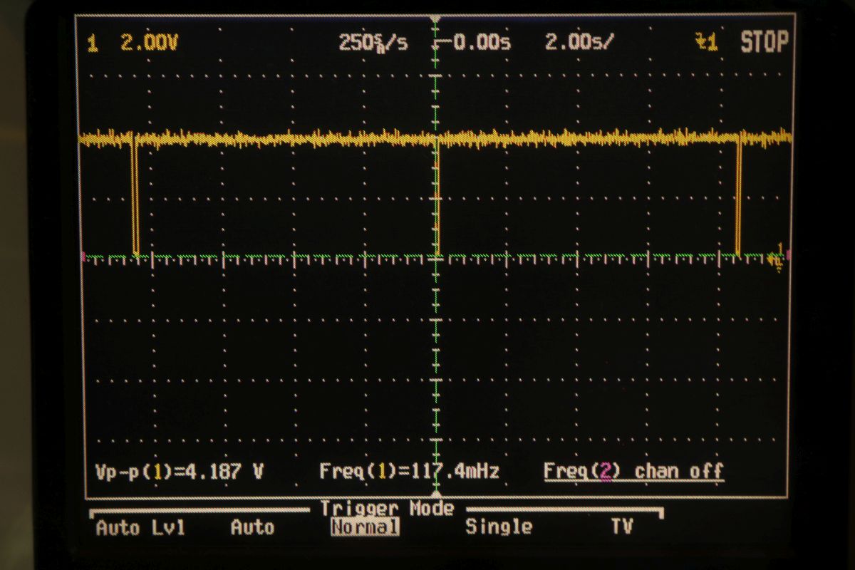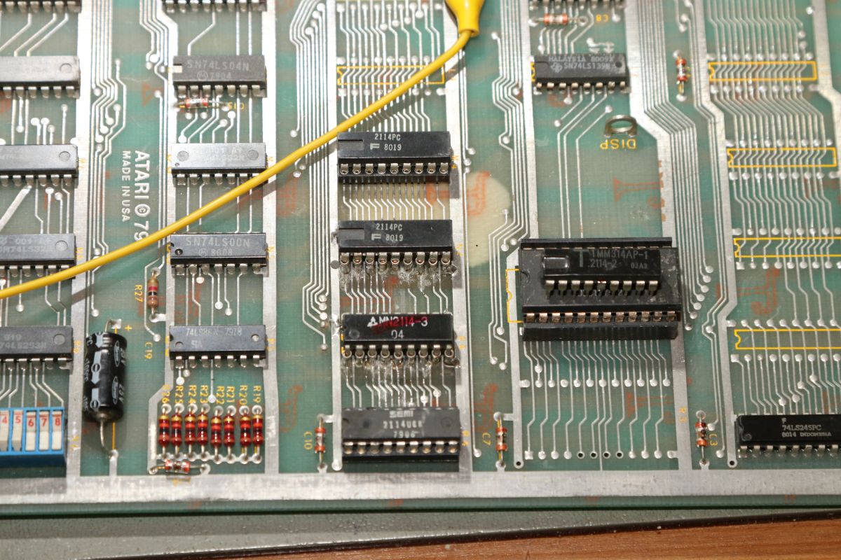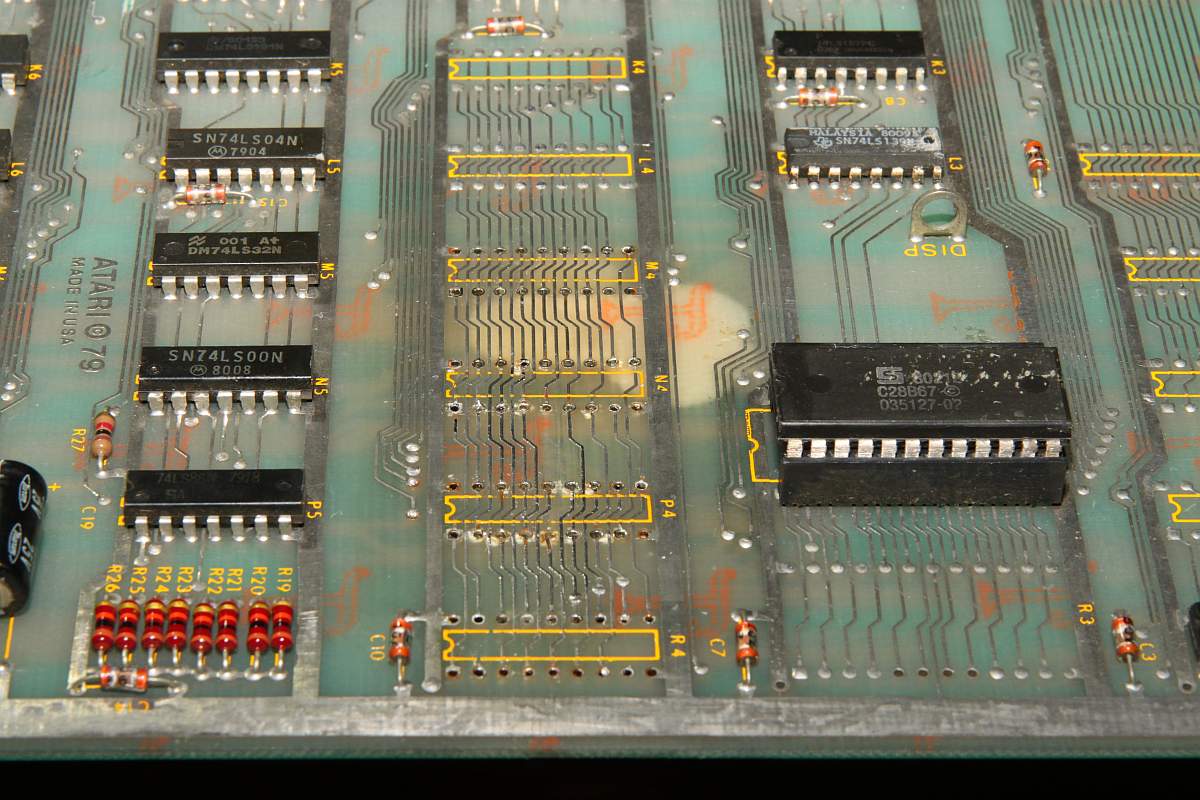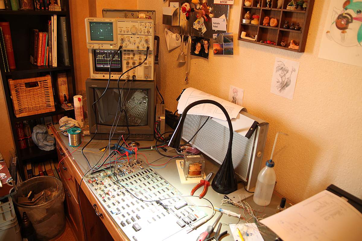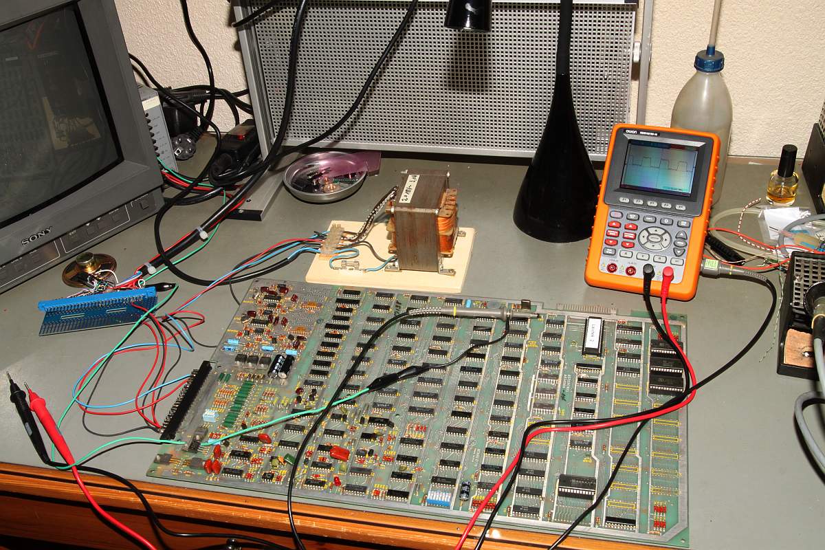 {Asteroids - die Kranke} Ein Bekannter hat mir zwei Asteroids zukommen lassen mit der Bitte um Reparatur. Blöd, wie ich bin, sagte ich zu... Das Drama fängt schon mit der Erstinbetriebnahme an. Die blöden Teile brauchen "36VAC"... das sind bei näherer Ansicht 2x18V Wechselspannung mit Mittelanzapfung... also erst mal einen geeigneten Trafo bei Ihbäh schießen... Ja, der hier ist natürlich völlig überdimensioniert - steht dafür sehr stabil. Ansonsten sind sie nett und benötigen dann nur noch 5V Versorgungsspannung aus dem Arcadenetzteil... An dieser Stelle möchte ich noch kurz meine praktische Neuerwerbung aus dem µC-Forum vorstellen: OWON HDS1021M-N 20MHZ 1 Kanal Oszilloskop + Multimeter... Akkubetrieben, gute Handheld-Größe, super Display und als Oszi erstaunlich gut und schnell in der Darstellung. Multimeterfunktion ist auch gut, nur die Grafik ist dann chinesisch hässlich... Für den schnellen mobilen Einsatz wie geschaffen! Der Quarztakt läuft übrigens. Wenn man nicht an der Platine ruckelt, dann kommt sogar ein Bild: Berührungsempfindlich sind diese Tüddeldrähte am Vector-RAM... Pfusch pfuschig gepfuscht... Der Testscreen wird nicht vollständig gemalt... Und manche Sprites werden an manchen Stellen nicht vollständig gemalt... Also versuche ich, den Pfusch erst mal wieder zu beseitigen - nicht einfach bei den Schäden... Hier noch mal mein Reich: Nebenbei: Asteroids malt auch was Sinnvolles auf den Schirm, wenn keine Vector-RAMs drinstecken... ist vielleicht mal hilfreich bei der Diagnose! Auslöten - das Platinenmaterial hat es jetzt allerdings aufgegeben und ist delaminiert... verständlich nach dem Stress... Arghh... da hat der Vorreparateur gemein gebraten - Vias raus, Pads ab... das ganze Programm... Jetzt geht es nur noch mit den aufwändigsten Mitteln: Einzelsockel: Weil man die auch von oben löten kann... Danach muss ich noch die abgerissene Leiterbahn ersetzen und das Ganze mit Epoxy fixieren... Dann ist zumindest mal der Schaden behoben... Die Repariererei hat den Quarz müde gemacht - das muss erst mal ersetzt werden... Zur Abwechslung richtig fixiert: Das Spiel startet jetzt... ...resettet aber in regelmäßigen Abständen... Ich tausche einen der getauschten RAMs... schon geht das Teil. Manchmal hab ich auch defekte Bausteine in meiner Ersatzteilkiste... |