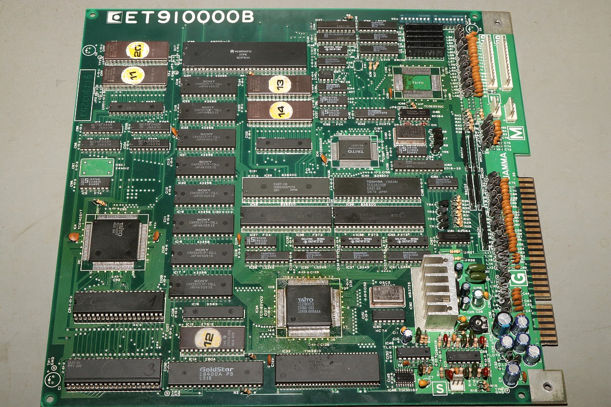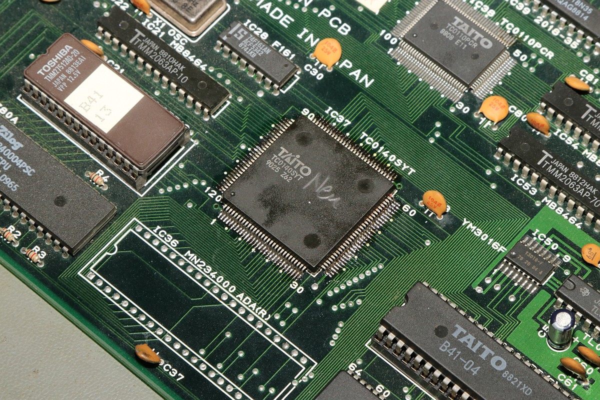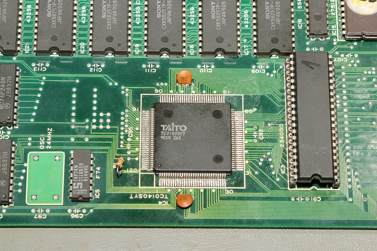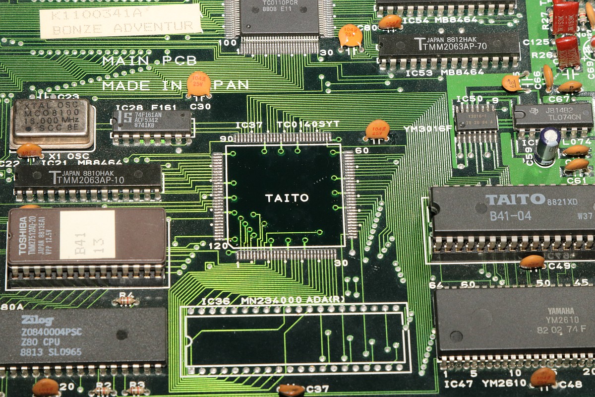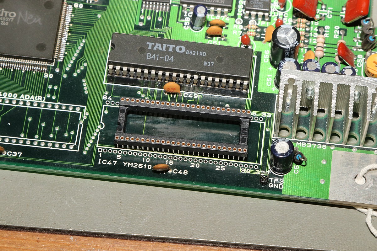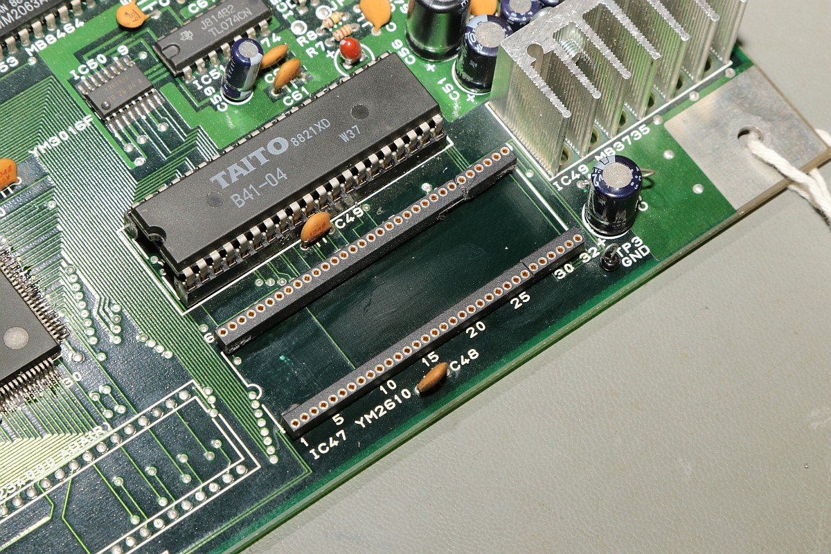 {Bonze Adventure - Tonlos} der Spieletitel klingt irgendwie nach einem reichen unsympatischen Sack... - na ja, ein kleines Dickerchen ist die Hauptperson schon... aber zurück zur Technik: das Spiel ist völlig tonlos und am Verstärker liegt es leider nicht... Wie bei vielen Spielen dieses Herstellers begeistert die Sound-Sektion durch den Einsatz eines gerne defekten Daten-/Adress-Multiplexer-Customs mit dem Namen TC0140SYT und einem nachfolgenden Soundchip YM2610... Der Custom ist am Ausgang tot. Wir benötigen einen Organspender: Der hat schon herhalten müssen - armes Kerlchen... Aber das benötigte Organ ist noch vorhanden: Vorsichtig rausoperiert... Unsägliche Lötversuche am Spender haben ihre Spuren hinterlassen - die Beinchen sind gut verbogen. Das Alter meiner Augen lässt sich sehr gut mit einem hochwertigen Stereomikroskop bekämpfen! Das muss gerichtet werden: Feines Uhrmacherwerkzeug ist von Nöten: Nur mal so zum Vergleich: ein 1/4W Metallfilmwiderstand in der bedrahteten Version... (das waren noch Zeiten...) Alten raus... ...Neuen rein. Das Ergebnis ist leider ernüchternd - es hat jetzt Aktivität auf den Bussen, das Sample-ROM wird angesprochen, aber der YM2610 ist weiterhin stumm. Der nächste Schritt ist offensichtlich... ;-) {Bonze Adventure - das Adventure geht weiter} Das Auslöten des Soundchips ist eine Aktion für sich. die extra-engen Pins verhindern einen Einsatz des Lötsaugers, es geht nur mit dem Heißluftfön. Sockel in diesem Pinabstand sind sehr schwer zu beschaffen. Natürlich habe ich sowas da. Upps... falsche Größe. Egal. Was nicht passt, wird passend gemacht! ;-) Der Custom-Spender dient auch als Soundchipspender - wenn man nicht auf das Platinenmaterial achten muss, dann fällt das Auslöten leichter. Einfach volle Kanne Heißluftfön und nach wenigen Minuten liegt das Spenderorgan auf dem Tisch. Jetzt noch putzen... ... und es ändert sich genau nichts. Mist. Zur Probe schlachte ich noch ein Fußballspiel - man weiß ja nie, in welchem Zustand sich solche Organspender befinden. Aber auch dieser Soundchip sagt keinen Ton. daran lag es wohl auch nicht. Trotz munterer Aktion auf allen messbaren Kanälen kommt aus dem Yamaha nichts raus. Ich bin mittlerweile ratlos und breche die Reparatur nach mindestens 6 Stunden Arbeit erfolglos ab. So kann es halt auch mal gehen in diesem Gewerbe. {Never give up! Never surrender!} Ich wäre nicht ich, wenn ich tatsächlich aufgeben würde! Jetzt, nachdem wieder Aktion auf dem ROM ist, gehe ich die komplette Soundkette durch - Spenderboards habe ich ja jetzt genug. Als Erstes ist der D/A-Wandler dran: Danach haben wir ein Audiosignal am Ausgang - doch die nachfolgenden Operationsverstärker bleiben stumm... Erst nachdem ich beide OP-AMPs getauscht hatte, kam der Sound astrein bist zum Leistungsverstärker - ich frage mich, wie das wohl kaputt gegangen sein mag... Immerhin war das Sample-ROM MN234000 einwandfrei lesbar und in Ordnung - es lässt sich als 27C400 auslesen! Oben habe ich mal die getauschten Bauteile markiert - viel Arbeit für etwas Ton... |