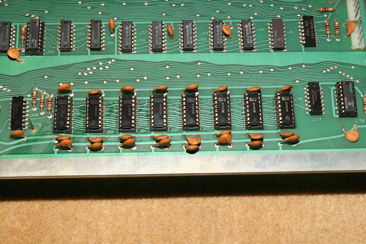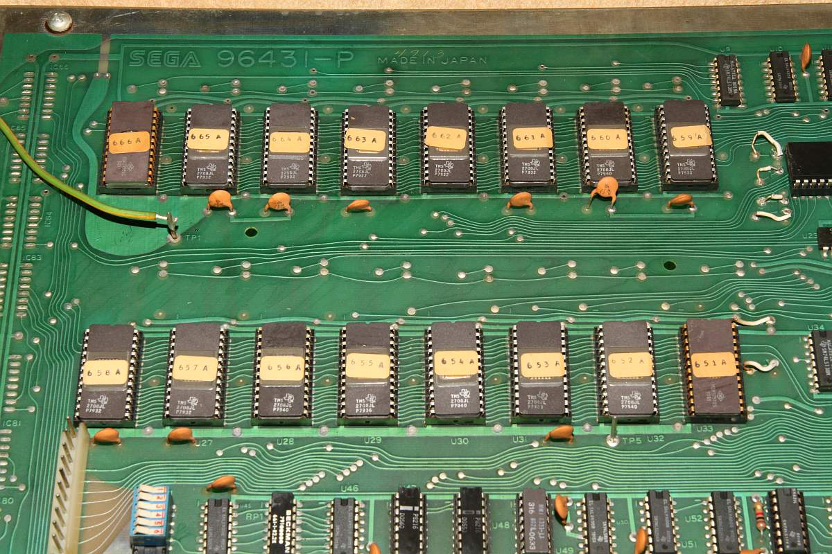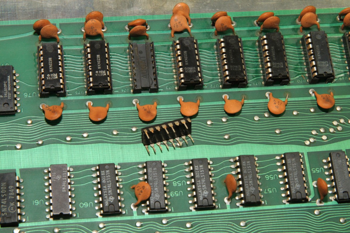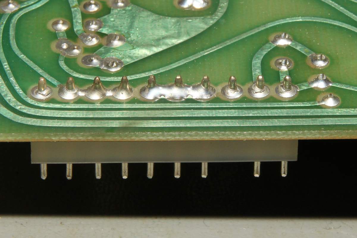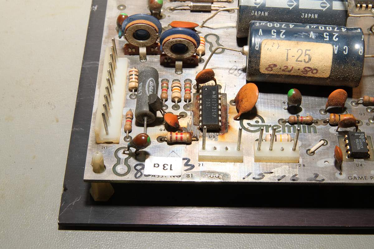 {Carnival - PCB-Reparatur mit Folgen} Vor einiger Zeit erreichte mich eine Carnival-Platine zur Reparatur... der Kunde meinte, es ginge nichts. Eine hübsche EPROM-Bank... Die RAMs... MK4015 - kaum zu bekommen, hab nicht mal ich im Fundus... CPU und fiese Tantals am Eingang: In meiner Naivität dachte ich mir, es wäre eine gute Idee, die PCB mal in den eigenen Automaten zum Testen zu stecken. Das Netzteil antwortete mit Rauchzeichen... Da war schon mal was kaputt, aber das war es nicht... An jedem Steckverbinder sind kalte Lötstellen - endlich repariere ich die mal, hab mich schon seit Jahren mit dem Wackelkontakt rumgeschlagen - gute Gelegenheit! Auch auf der Platine sind die Steckverbinder losgerüttelt! Erst mal einen Testaufbau machen... die 12V gehen in die Knie, sobald man sie auch nur minimal belastet... Der TIP115 hat das Zeitzliche gesegnet - das Netzteil ist wohl nicht annähernd kurzschlussfest! Sieht man kaum, aber hier hat's geraucht: Der TIP ist angekommen, das Netzteil geht wieder - Ursache: Tantals... aber das Spiel geht nur rudimentär... Könnte an dem RAM hier liegen, das hat Karies... Sockel raus... Prothese dran - RAM-Paralympics. Die Teile sind teuer und selten - ich habe keinen Ersatz! Eines hat nicht gereicht - im Endeffekt habe ich alle 8 Sockel getauscht und drei RAMs mit Lötprothesen versehen... ...und wurde dafür belohnt! Die kurzschlüssigen Tantals hab ich dann gleich mal gegen Elkos getauscht - 100µF 25V geht hier gut. Bei meiner eigenen PCB hab ich das auch gleich präventiv gemacht. Und ja, RGB hab ich in der falschen Reihenfolge angelötet. Ich weiß. |