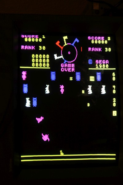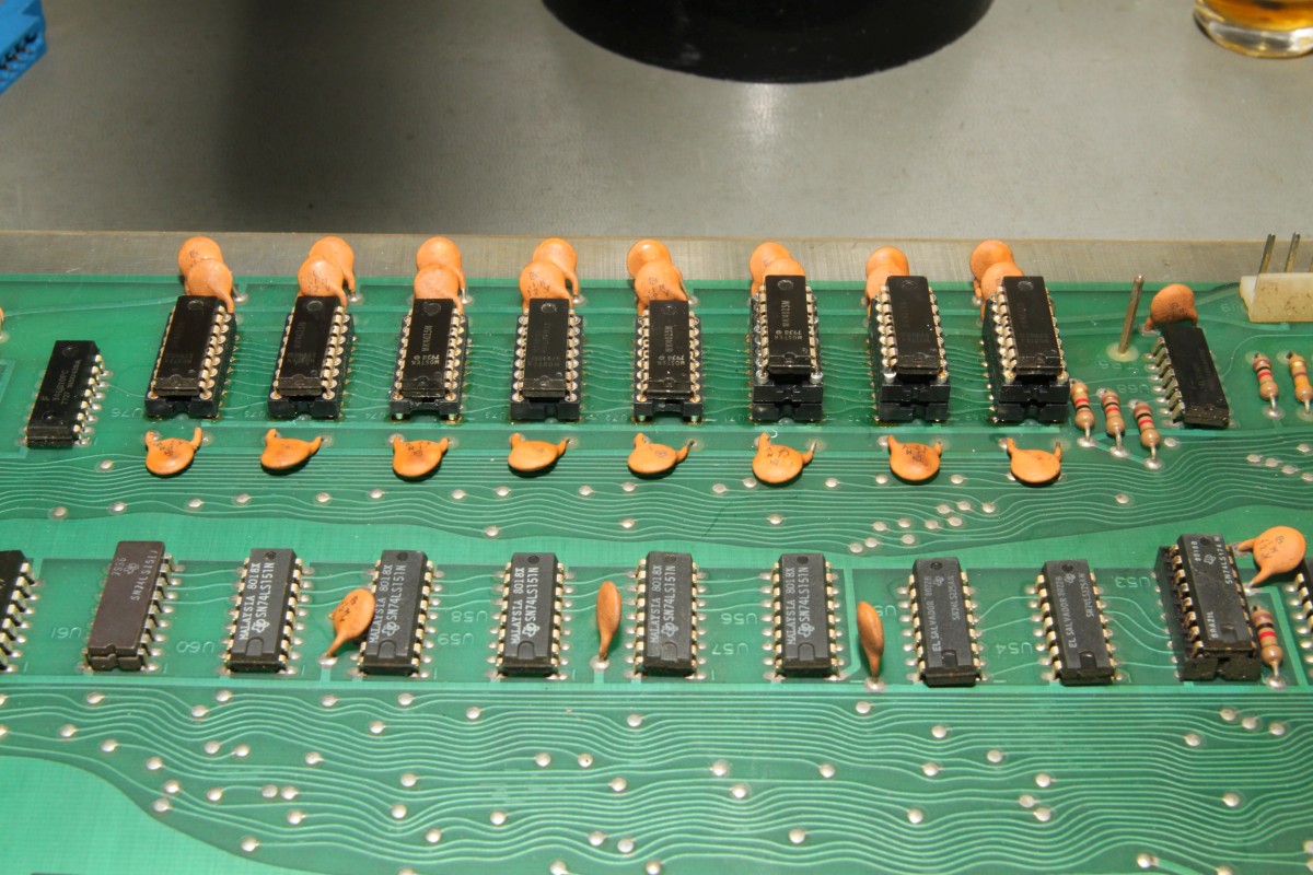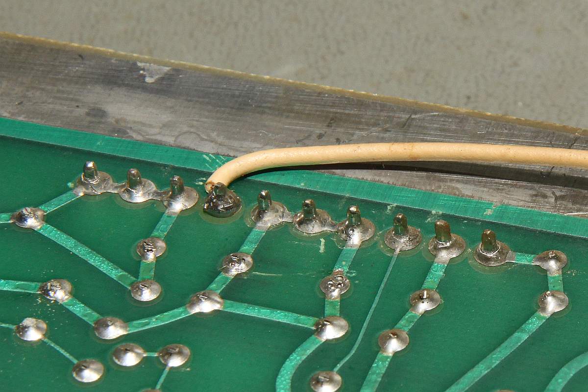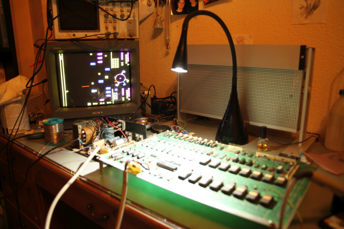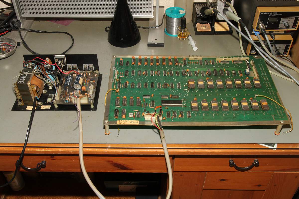 {Carnival - PCB-Reparatur mit Folgen} Vor einiger Zeit erreichte mich eine Carnival-Platine zur Reparatur... der Kunde meinte, es ginge nichts. Eine hübsche EPROM-Bank... Die RAMs... MK4015 - kaum zu bekommen, hab nicht mal ich im Fundus... CPU und fiese Tantals am Eingang: In meiner Naivität dachte ich mir, es wäre eine gute Idee, die PCB mal in den eigenen Automaten zum Testen zu stecken. Das Netzteil antwortete mit Rauchzeichen... Da war schon mal was kaputt, aber das war es nicht... An jedem Steckverbinder sind kalte Lötstellen - endlich repariere ich die mal, hab mich schon seit Jahren mit dem Wackelkontakt rumgeschlagen - gute Gelegenheit! Auch auf der Platine sind die Steckverbinder losgerüttelt! Erst mal einen Testaufbau machen... die 12V gehen in die Knie, sobald man sie auch nur minimal belastet... Der TIP115 hat das Zeitzliche gesegnet - das Netzteil ist wohl nicht annähernd kurzschlussfest! Sieht man kaum, aber hier hat's geraucht: Der TIP ist angekommen, das Netzteil geht wieder - Ursache: Tantals... aber das Spiel geht nur rudimentär... Könnte an dem RAM hier liegen, das hat Karies... Sockel raus... Prothese dran - RAM-Paralympics. Die Teile sind teuer und selten - ich habe keinen Ersatz! Eines hat nicht gereicht - im Endeffekt habe ich alle 8 Sockel getauscht und drei RAMs mit Lötprothesen versehen... ...und wurde dafür belohnt! Die kurzschlüssigen Tantals hab ich dann gleich mal gegen Elkos getauscht - 100µF 25V geht hier gut. Bei meiner eigenen PCB hab ich das auch gleich präventiv gemacht. Und ja, RGB hab ich in der falschen Reihenfolge angelötet. Ich weiß. |