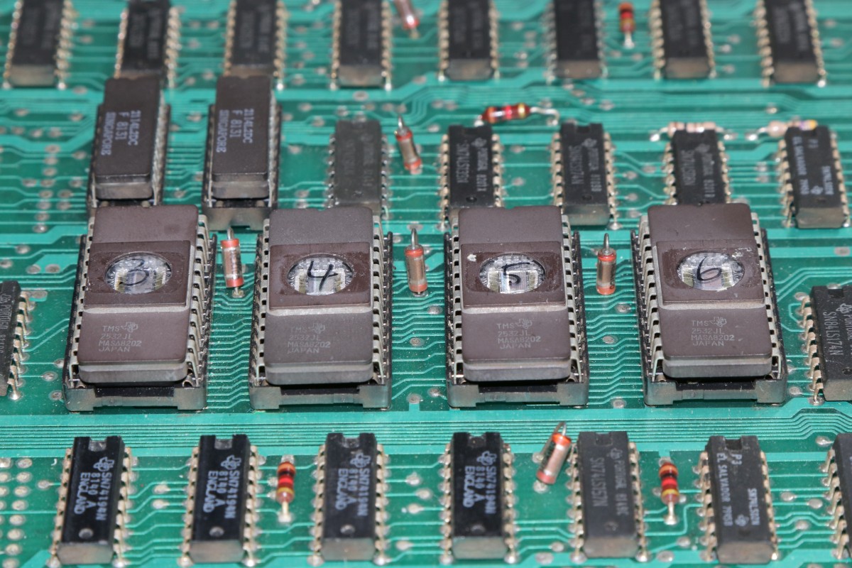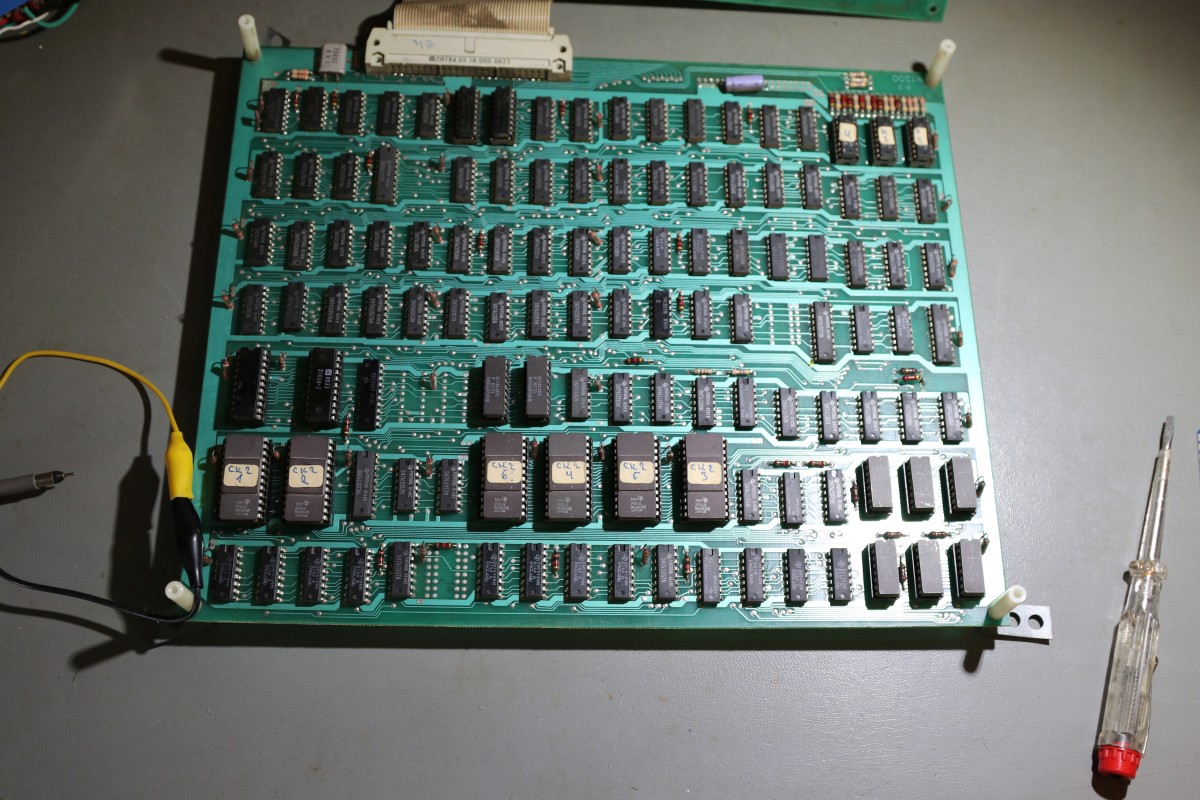 Das war tatsächlich der einzige Fehler - alle vier EPROMs waren korrupt... das Erstaunliche: nur im Textbereich, nicht im Bereich der Tiles und Sprites... Sachen gibt's... Vielleicht war das ein misslungener Umbau von CK auf CK2, wir werden es nie erfahren. Dafür geht die Platine jetzt wieder einwandfrei!