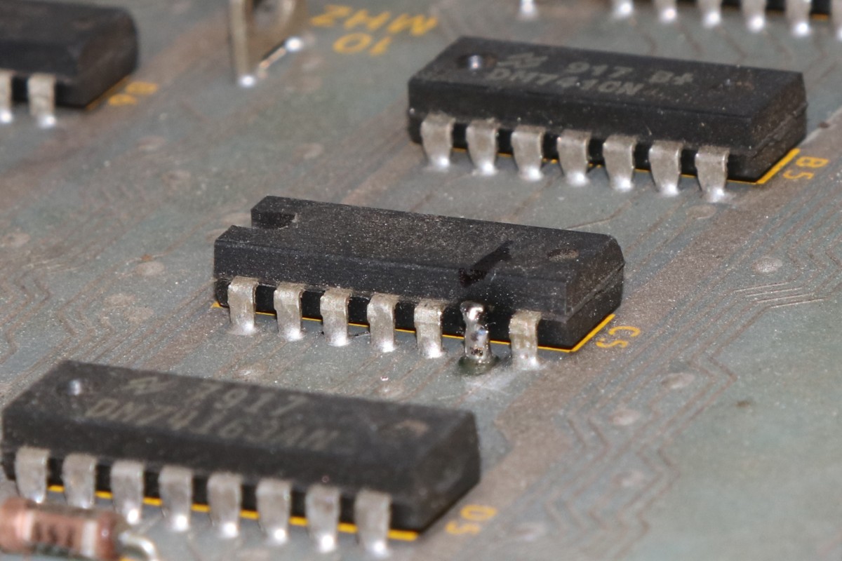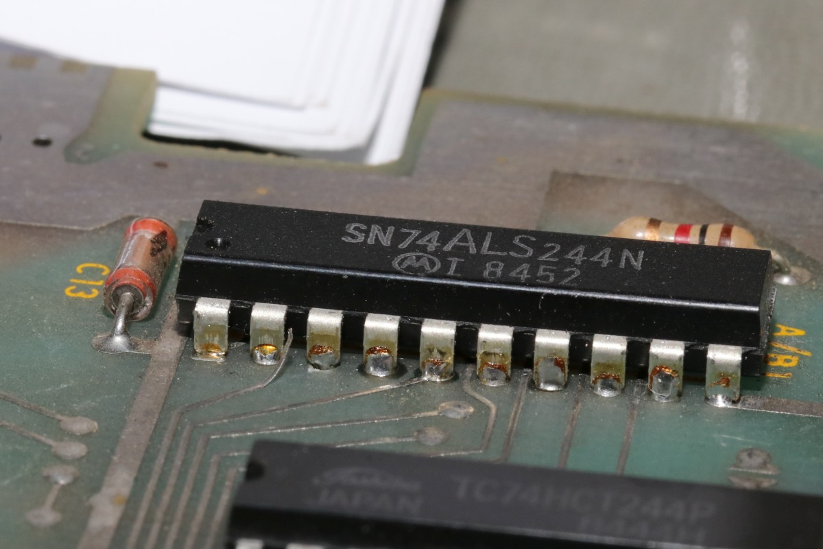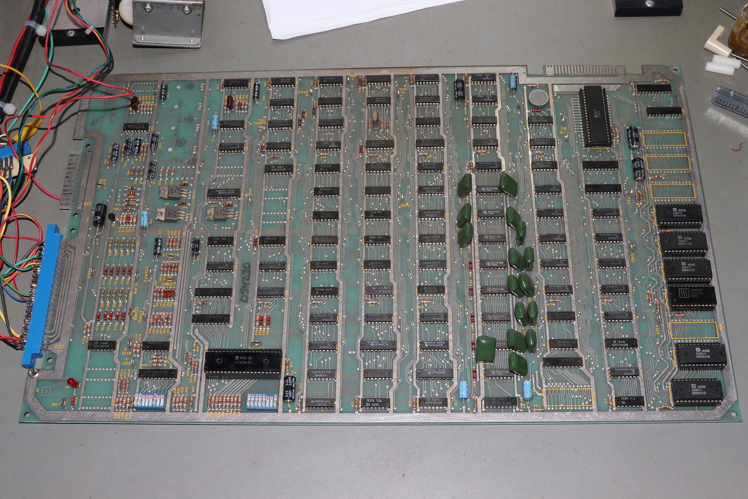 {Weil's so schön war - noch eine MC!} Wenn man schon gerade in Übung ist... hier noch eine dritte MC: Die massenhafte Verwendung der vorgealterten "SA" Signetics-Bausteine lässt Schlimmes vermuten. Der Datenbus ist erstaunlich schlapp... Die Platine meldet sich mit einem weißen Bild: Ich ersetze mal alle PROMs gegen EPROMs - das verbessert den Datenbus deutlich und nun ist auch der Watchdog befriedigt. Das weiße Bild bleibt! Doch nach Betätigung des Test-Schalters kommt plötzlich Leben in die Platte: Der Speicher schein in Ordnung zu sein, der Trackball-Ersatz läuft... wie kann das sein, dass es ohne Test-Modus kein Bild gibt? Komisch... Ich bin auch gespannt, wie's weitergeht... Mittlerweile ist wieder was kaputt gegangen, die Platine startet jetzt auch mit Test nicht mehr, der Watchdog bellt! Nächster Schritt: Bustreiber tauschen! {Weiter geht's!} Ich tausche Bustreiber und die CPU mitsamt Sockel: Zwei Datenbuspins schweben über der Nulllinie: Schwer zu finden - am Datenbus gibt es viele Teilnehmer! Da hilft nur gezieltes Abklemmen! Danach das Anlöten nicht vergessen! War ja klar, der Letzte war's: mit "SA"-Kennzeichnung. Wird nicht besser mit Ersatz - ich prüfe mit dem Durchgangsprüfer gezielt alle Daten- und Adressleitungen zwischen ROM und CPU... da fällt mir ein selbstgemachter Fehler auf: Nach der Reparatur wird es immer noch nicht besser. Ich teste die CPU nach dem Reset - sie sollte immer das Selbe machen, Resetvektor holen und anfangen... der Datenbus bleibt nicht statisch - sollte etwa die neue China-CPU... Ja, sollte sie. Die neue CPU war auch defekt. Beim Rückbau noch mal getestet: Bustreiber waren schlapp, ein ROM ist defekt, der 74LS125 war hin und ein Flipflop für den NMI war auch platt... und die CPU... alle TTLs waren "SA"-Typen. Memo an mich: in China billig gekaufte Chips bei Erhalt sofort prüfen! ;-) |
