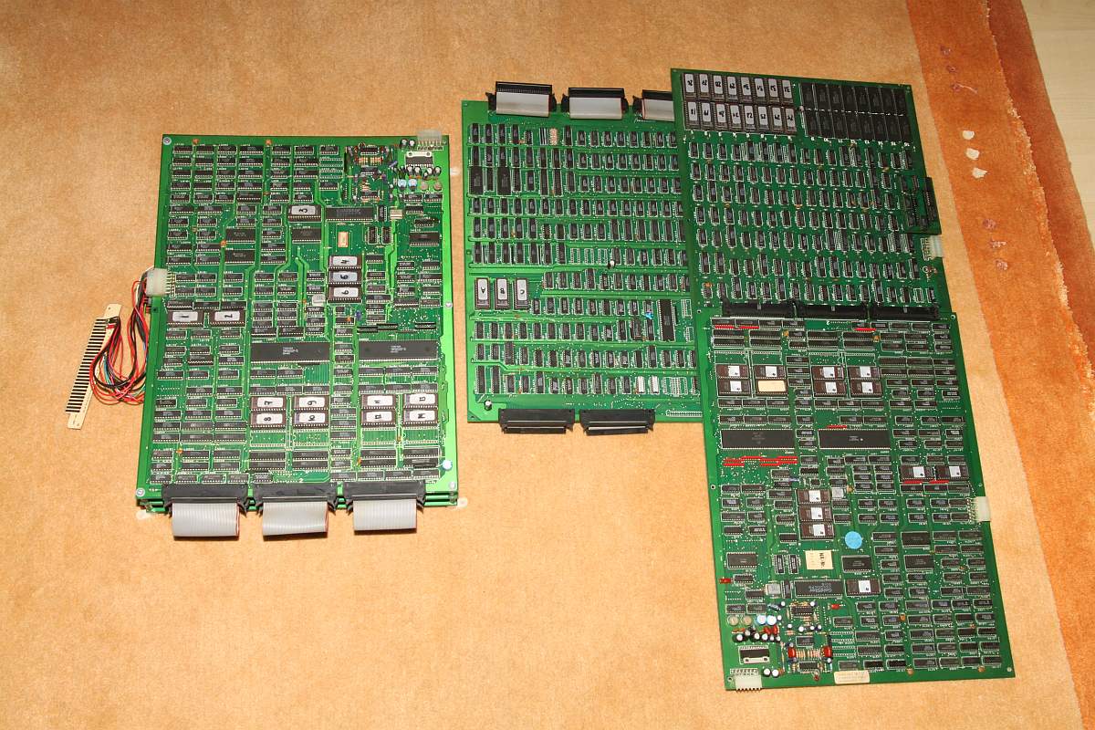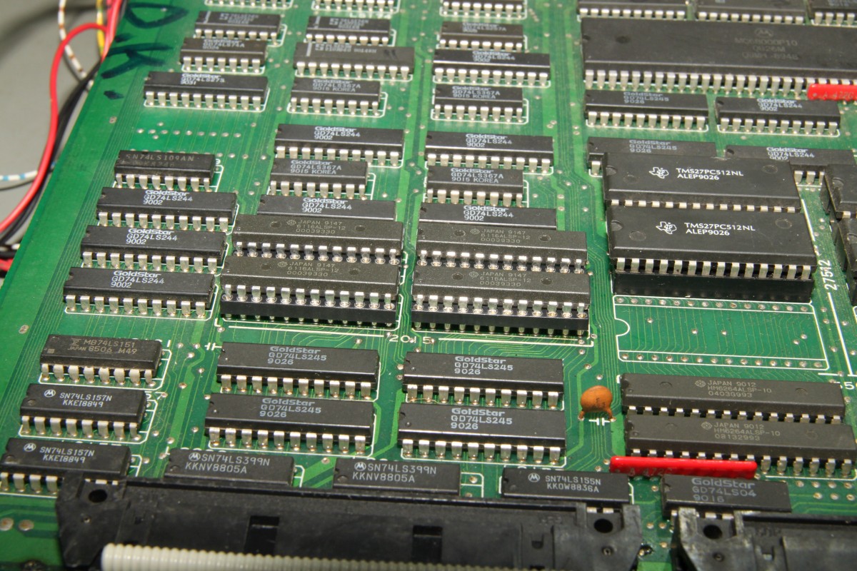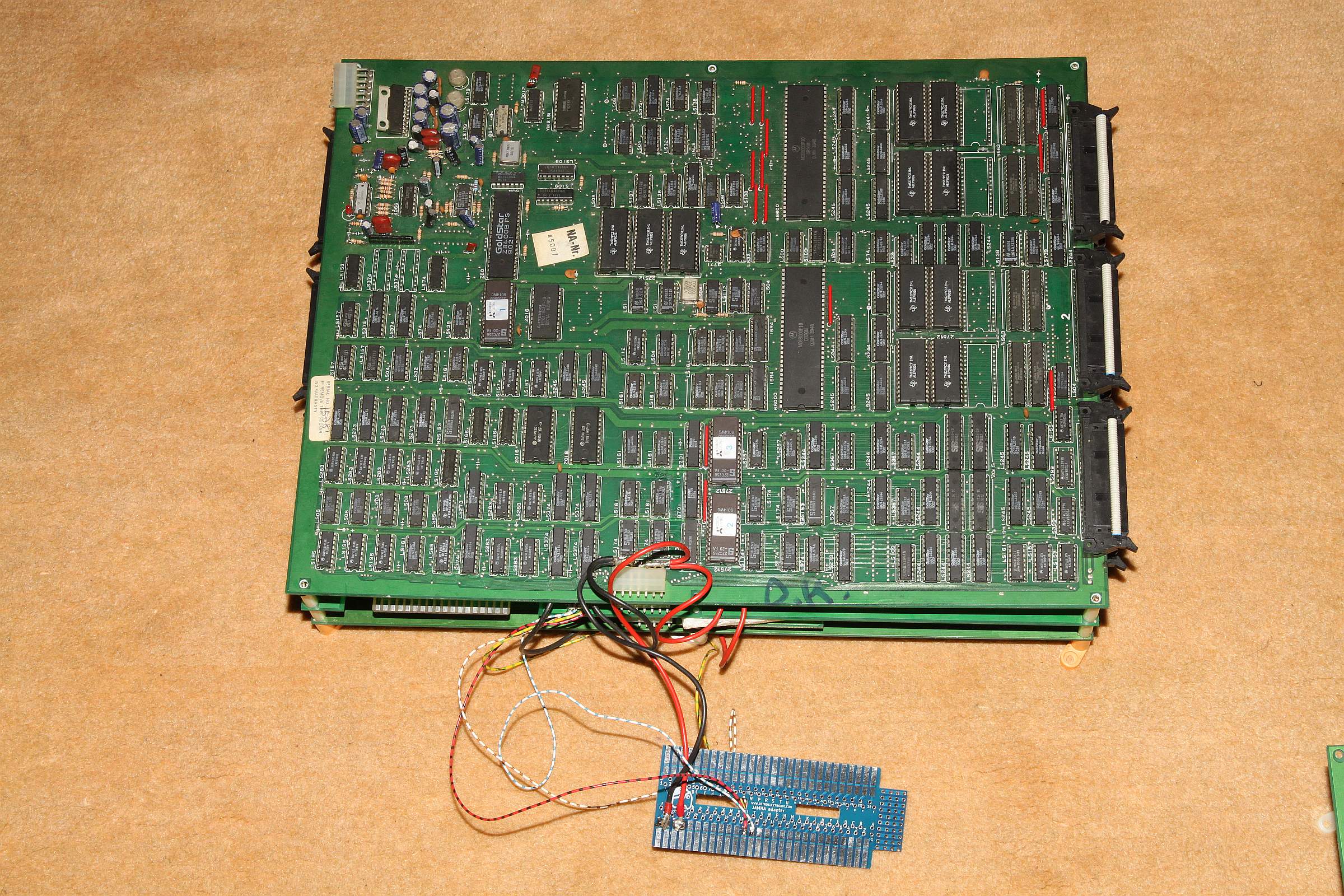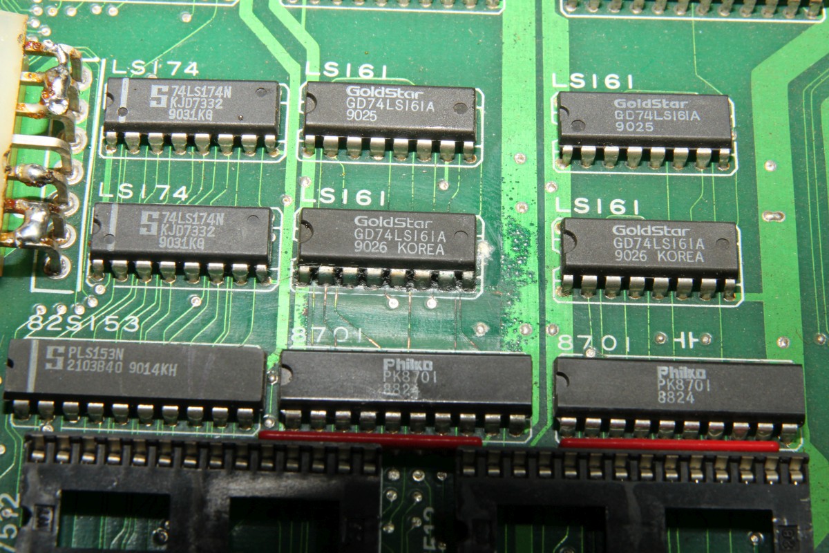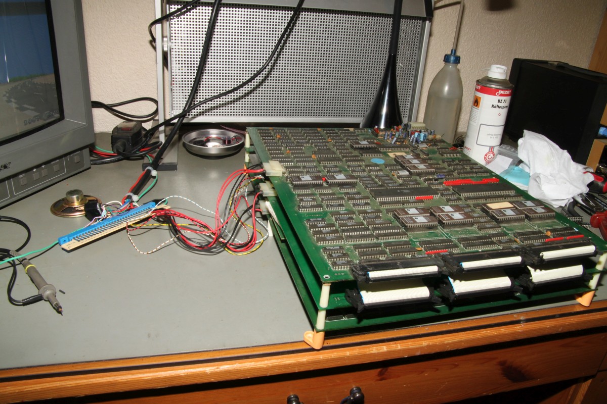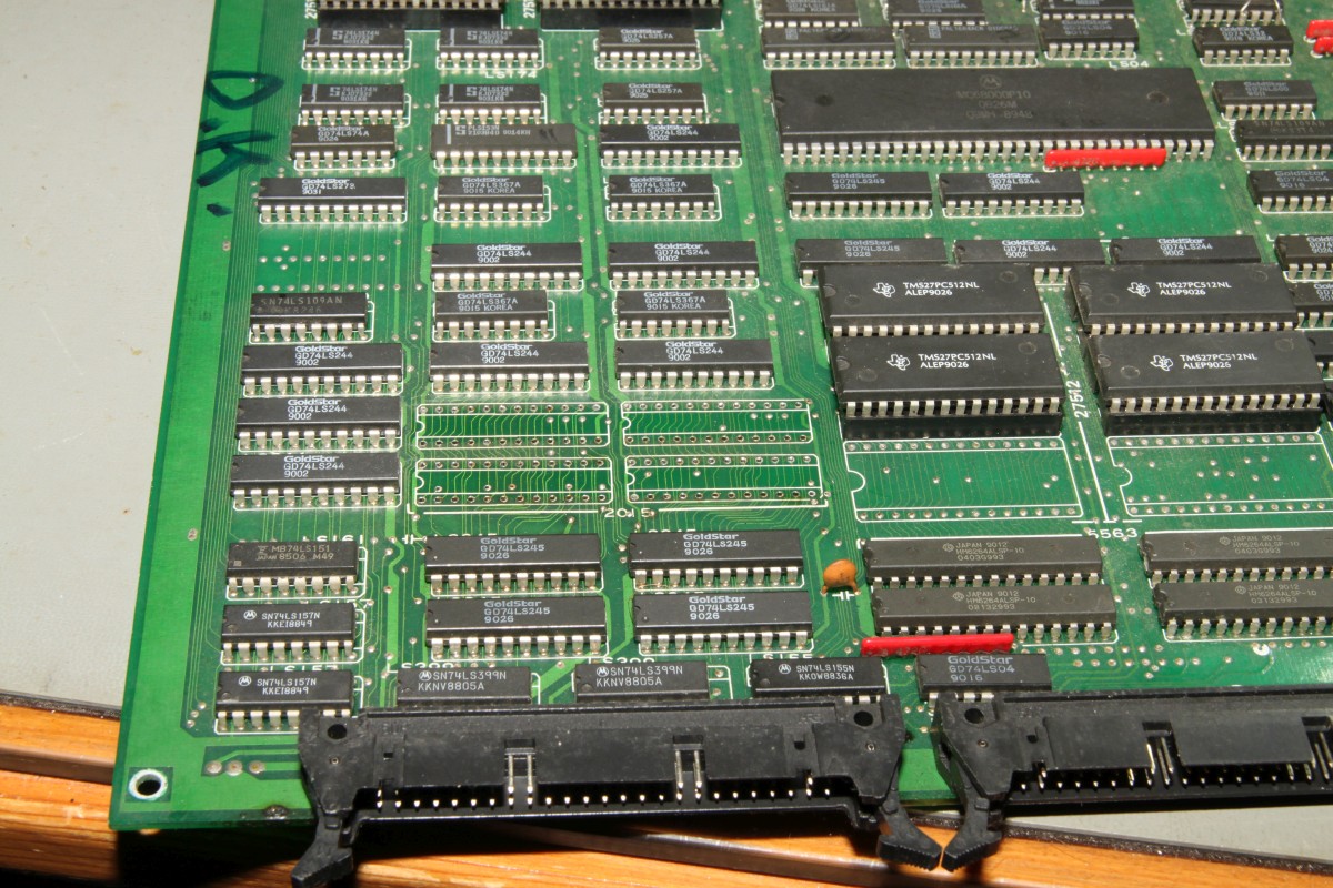{Outrun Bootleg} Wieder mal - ich konnte mich nicht verschließen, zumal ich noch zwei Bootleg Leichen hier irgendwo rumliegen habe... Diese Platine ist eine der reparaturunfreundlichsten, die ich je hatte - 3 Lagen Monsterplatten, verbunden über Flachbandleitungen aber mit separaten Spannungsversorgungsleitungen. Kaum sinnvoll aufgeklappt in Betrieb zu nehmen... Hier mal die oberste Platine: Mein OP-Tisch: Diese hier hat ein interessanten Grafikproblem: der Untergrund wird meist (aber nicht immer... ) als Zebrastreifen dargestellt... hat das schon mal wer von euch behoben? Zeitweilig ist es mal kurz gut... Dann wieder wie vorher: Zebrastreifen, wohin das Auge blickt! Endlich habe ich die zwei defekten Bootlegs aus meiner Schrottsammlung gefunden - hoffentlich bringt ein Kreuztausch der Platinen eine Besserung! {Reparatur} Endlich dazu gekommen: die erste Schrottplatine (CPU-PCB) hat es gebracht: die Straßen und Felder sind wieder da! Sieht gut aus: Sieht richtig gut aus: Ach, Manno... die PCB hat auch einen Schuss... Keine Rede, kurzer Sinn: die Ersatzplatine hat ein RAM-Problem (Restart), das ist mit Tausch behoben - trotzdem gibt es hier so viele kleine Grafik-Glitches, dass ich das Teil dann doch nicht hernehmen will. Da bleibt mir wohl nichts Anderes übrig, alls die PCB zu reparieren. Erster Schritt: Grafik-RAMs tauschen. Alles neu... Hilft leider nix... Ist ja ätzend: da ist wohl mal was ausgelaufen. Könnte der Grund sein, in den EPROMs daneben werden die Straßengrafikdaten aufbewahrt... Sieht schlimmer aus, als es ist: Putzen, testen, alles O.K.... Gesockelt und TTL getauscht - präventiv... Hilft leider nichts, auch der PLD mit komischen Signalen liefert getauscht nur einen anderen Fehler. Hab Dich, du Sau! Der Philco Custom-Chip PK8701 (sieht gar nicht wie ein Custom aus...) war der Übeltäter - da hätte ich mir den Rest ja sparen können. Kein Absturz mehr, keine Grafikfehler - uff! Ohne Vergleichsplatinen und Teilespender wäre diese Reparatur aber unmöglich gewesen. Den Custom gibt es nicht zu kaufen! |