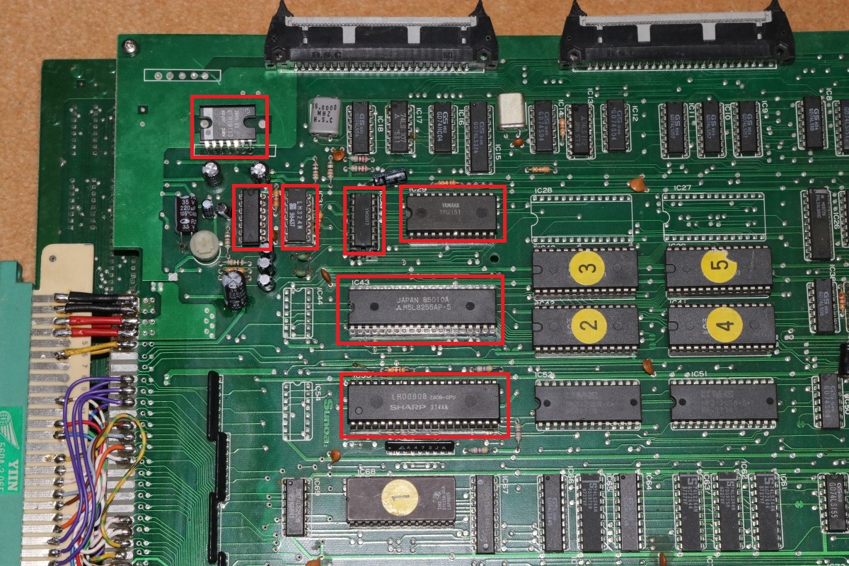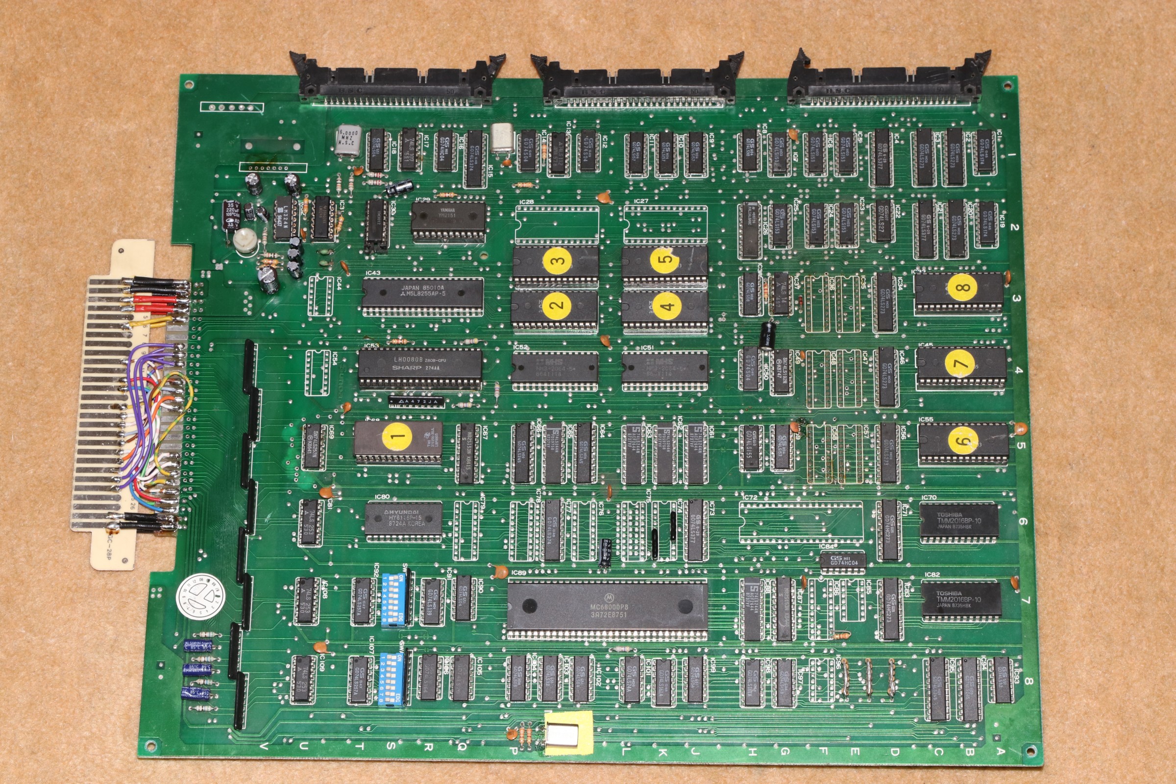 {Shinobi Bootleg} Hier mal ein Vertreter derjenigen Bootlegs, die man nicht haben will. Schlechtes Platinenmaterial, billige Bauteile, haarfeine Leiterbahnen und die Hälfte der Soundbausteine fehlt... Nur das Bild ist ganz passabel... Manchmal verliert man und manchmal gewinnen andere... Bootlegs sind ganz oft Sieger - im Scheiße sein. Das fing schon mal damit an, dass die Platine nach einigen Monaten Lagerzeit nicht mehr starten wollte... Na ja, Quarz abgefault. Keine große Sache. Interessant ist hier, dass die Bildgenerierung unabhängig vom Prozessorquarz läuft! Generationen von Spezialisten haben hier schon rumgebraten... Die Anschlüsse waren eh schon angekokelt und Sega 16 ist halt nicht JAMMA, auch wenn es so aussieht... da mach ich doch gleich einen stationären Adapter und schlage zwei Fliegen mit einer Klappe... Der Sound ist grauenvoll schepperig - also sehe ich mir die ganze Soundsektion an... Ein Elkotausch bringt nichts... sieht trotzdem gut aus... Auch der Tausch des Endverstärkers, der OPAMPs davor, des Stere-DACs , des FM-Bausteins, des 8255 Portbausteins, des Z80 und des EPROMs mit dem Soundprogramm hat nicht die geringste Änderung gebracht... dafür viele Stunden Spaß. Spiel und Spannung... Vielleicht ist dieses Bootleg einfach so scheiße... ich weiß es nicht... Oder es fehlt tatsächlich die Soundsamplebestückung auf der Unterseite... |