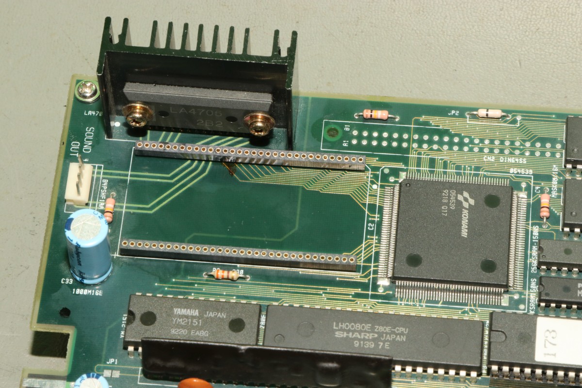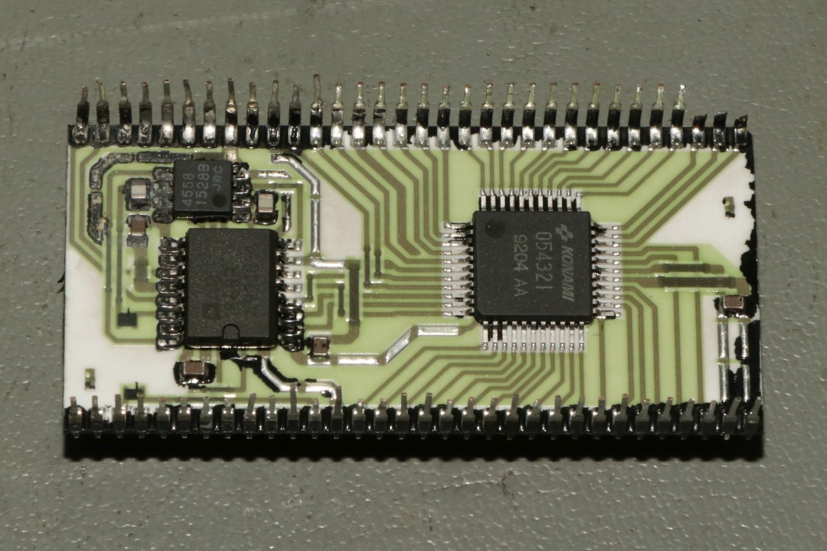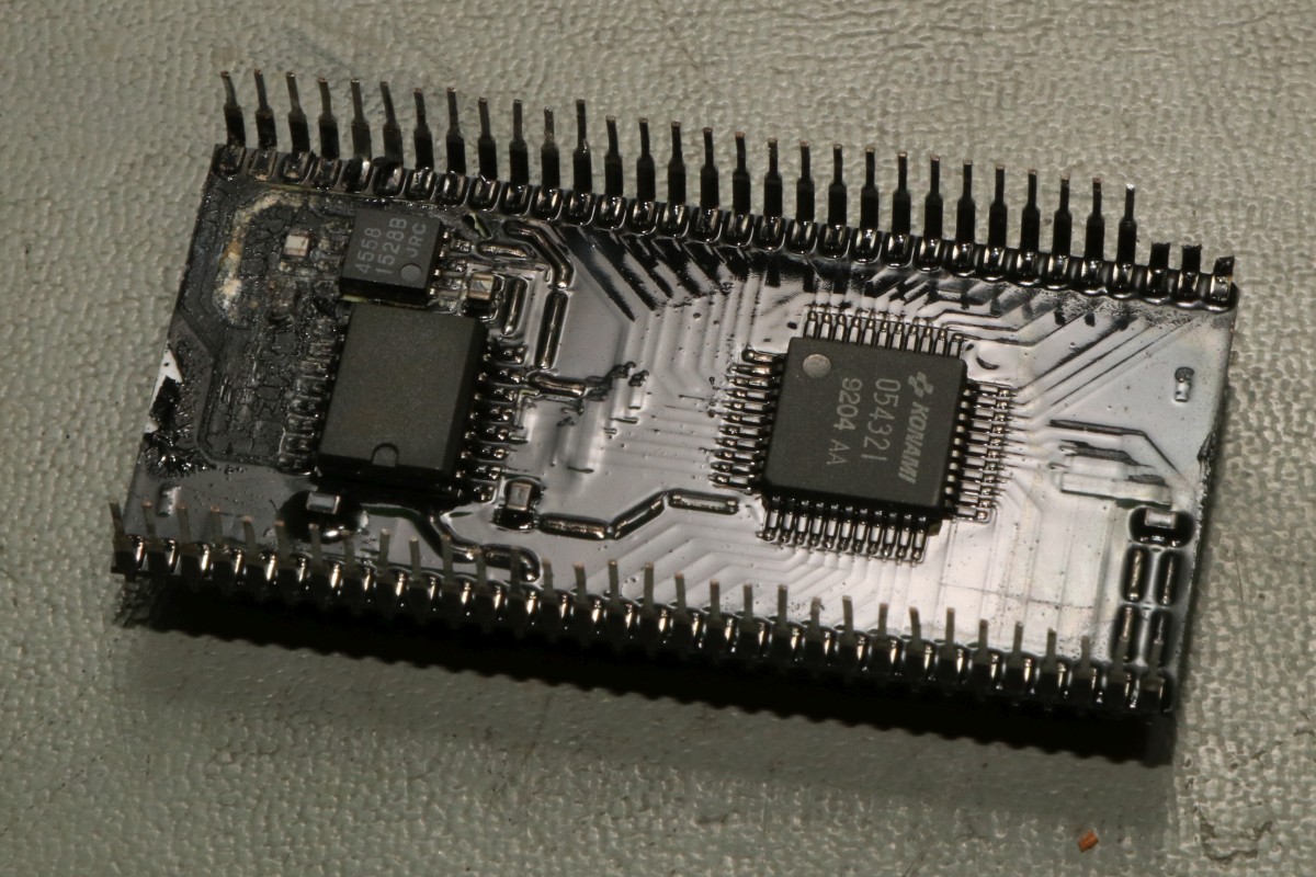 {Bucky O'Hare} Eigentlich hatte ich mir geschworen, diese Customs nicht mehr anzurühren. Die Reparatur ist fast unmöglich, das Handling ist frustrierend. Aber dann kam das Angebot, mal einen Einbau eines Caius Repro Customs zu probieren - da wollte ich dann doch wissen, ob das was taugt... Der Konami Custom Hybride sticht wieder einmal unangenehm ins Auge: ausgelaufene Elkos und Säurefraß unter dem Schutzlack... Der Besitzer hat schon mal versucht, den Hybriden auszulöten - gut, dass er nach kurzer Zeit den Experten kontaktiert hat! Diese Platinen haben eine extrem gute Wärmeleitfähigkeit und ohne professionelles Entlötwerkzeug endet jeder Versuch in einem Desaster! Klar, dass das Soundsystem nicht tut - es hat sich ja auch selbst weggeätzt... Das hier ist das Repro-Kit von Caius - sauber aufgebaut, die passenden Steckerleisten und Sockelleisten sind schon dabei - nur den Sound-ASIC und den D/A-Wandler muss man vom originalen Hybridbaustein übernehmen! Endlich ausgelötet! Die abgebrochenen Pins stammen nicht von meinen Entlötkünsten! ;-) Die eine Lötstelle muss ich noch mal putzen - das ist eine der besonders fiesen Stromversorgungsleitungen... Die Pins liegen hier so dicht beieinander, da muss ich meinem Entlötkolben besonders kleine Düsen anziehen! Die richtig teure Abbeizpaste stinkt nicht und wirkt trotzdem extrem schnell: So kommt man an alles problemlos ran: Heißluftfön bei 320°C und eine Pinzette - der Lack ist unter die Chips gelaufen, da benötigt man etwas Kraft zum Abheben! Meine Augen neigen nicht mehr zur guten Nahsicht - dafür hilft das Stereomikroskop: die originalen Chips sind wieder da, wo sie hingehören: Die Stiftleisten werden eingelötet... ...und die Buchsenleisten auf der anderen Seite - man sollte dies im eingesteckten Zustand tun, da dann die Ausrichtung korrekt ist! Sitzt, passt und hat keine Luft! Endlich ein Start ohne Gemecker! Das Irische Karnickel rettet die Welt... ...gegen fiese Frösche... putziges Spieldesign. ...irrsinnige Spielfiguren... Und eine hübsche Platine. Fazit: der Repro-Custom-Hybrid von Caius läuft perfekt und ist prima zu verarbeiten - vorausgesetzt, man besitzt das richtige Werkzeug! |