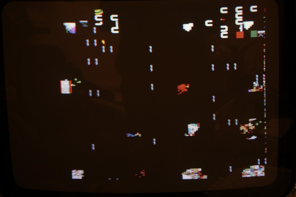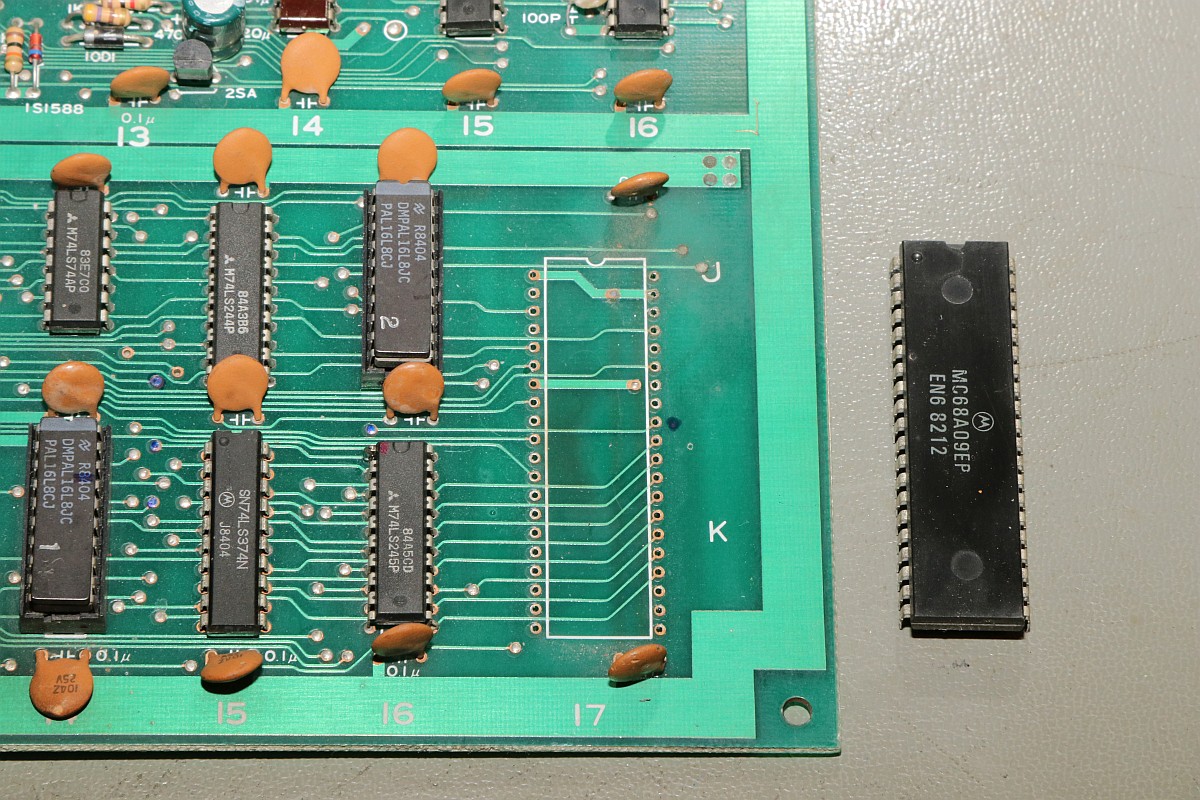 {Circus Charlie Bootleg} Ich mach' mal wieder was... Heute: Circus Charlie Bootleg. Soll nach Ansicht mancher Foristi ein blödes Spiel sein, ist mir aber egal, ist eh nicht meins. Beim Einschalten macht das Spiel mal genau fast nix - nicht mal Sync geht... Die kackbraunen Malzbonbon TTLs sind der Horror - wenn die auf der Platine drauf sind, dann ist mindestens einer davon defekt... Meist werden die Ausgänge einfach taub, das lässt sich gut messen, wenn man ein Oszi hat. Hier war es einer im Bereich der Ansteuerung der dynamischen RAMs... Geht auch Huckepack... Und schon klappt's zumindest mal mit einem stabilen Videosignal... Ein zweites Malzbonbon war auch platt, 74LS00 - jetzt macht der 68A09 schon mal erste Schritte und das Bild wechselt beim Einschalten von Schrott zu anderem Schrott... dann ist wieder Ruhe. Mein Oszi sagt mir: der R/W# Puls aus dem 68A09 geht nur auf 1,5V runter... Also ist entweder der Prozessor fritte oder einer der Bustreiber hat einen defekten Eingang. Wir werden sehen. {Reparatur...} Also zuerst den Prozessor entfernen und neu sockeln... Und siehe da: der Programmablauf wird doch gleich viel sinnvoller... Speichertest erfolgreich! Auch das Spiel startet perfekt - bunt und grafisch unruhig - ist halt Geschmacksache... |