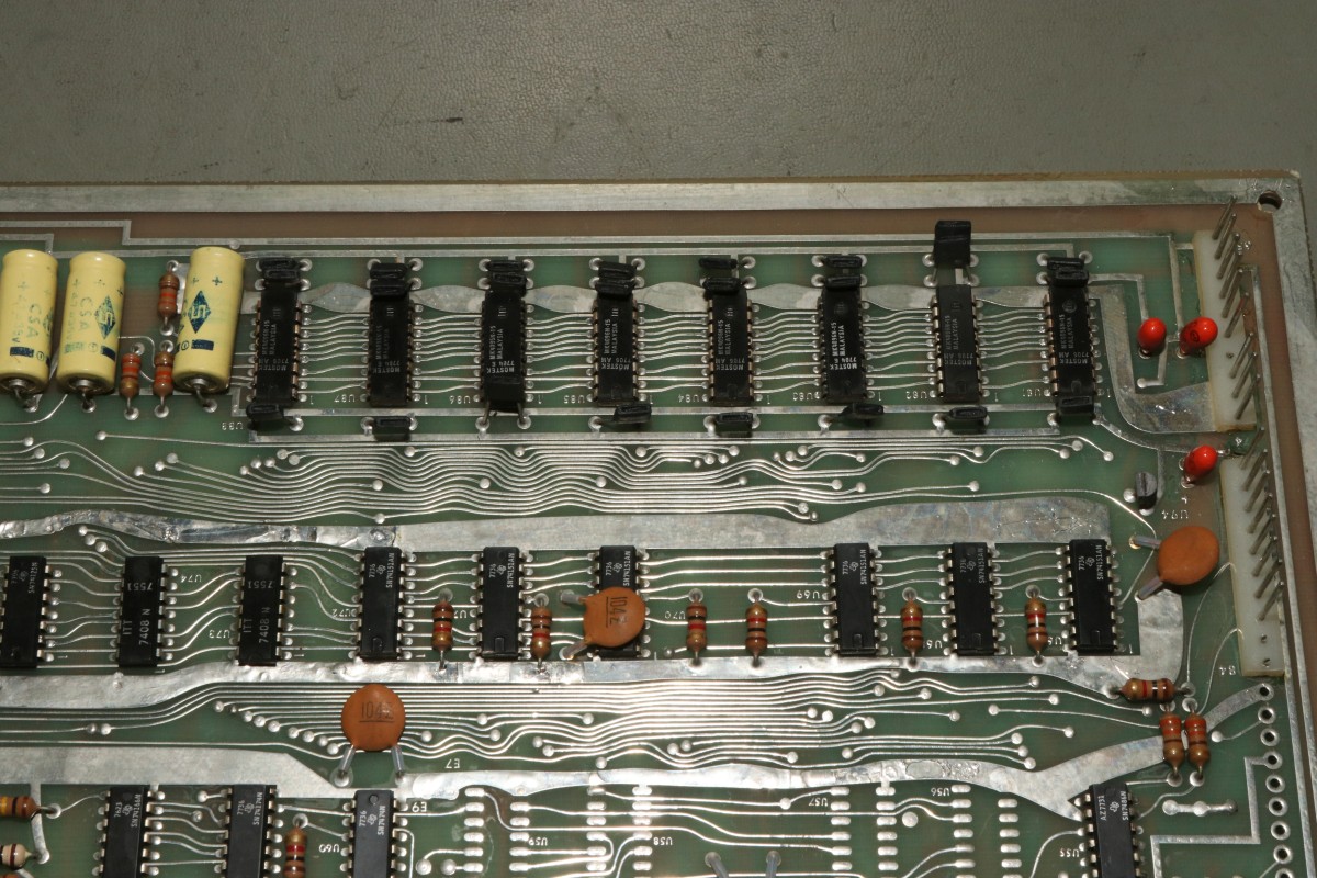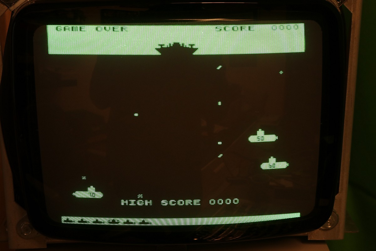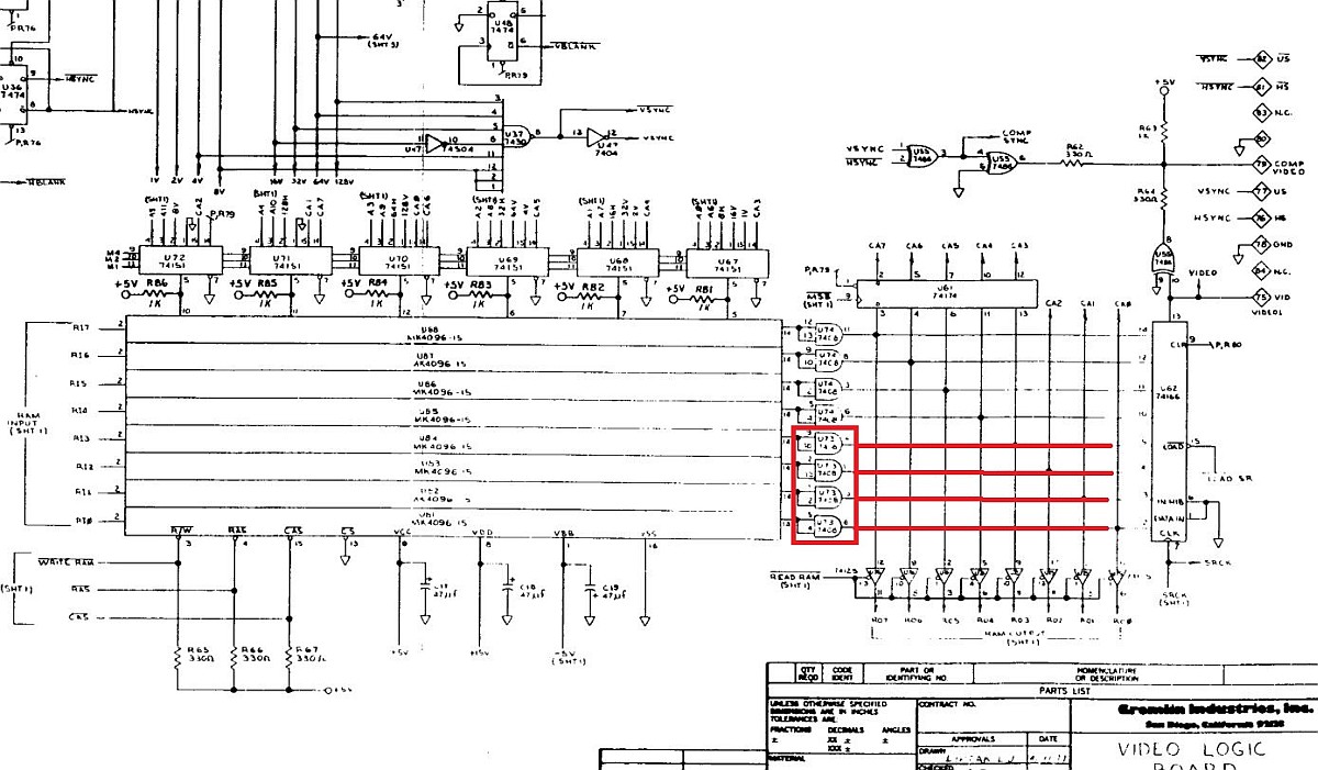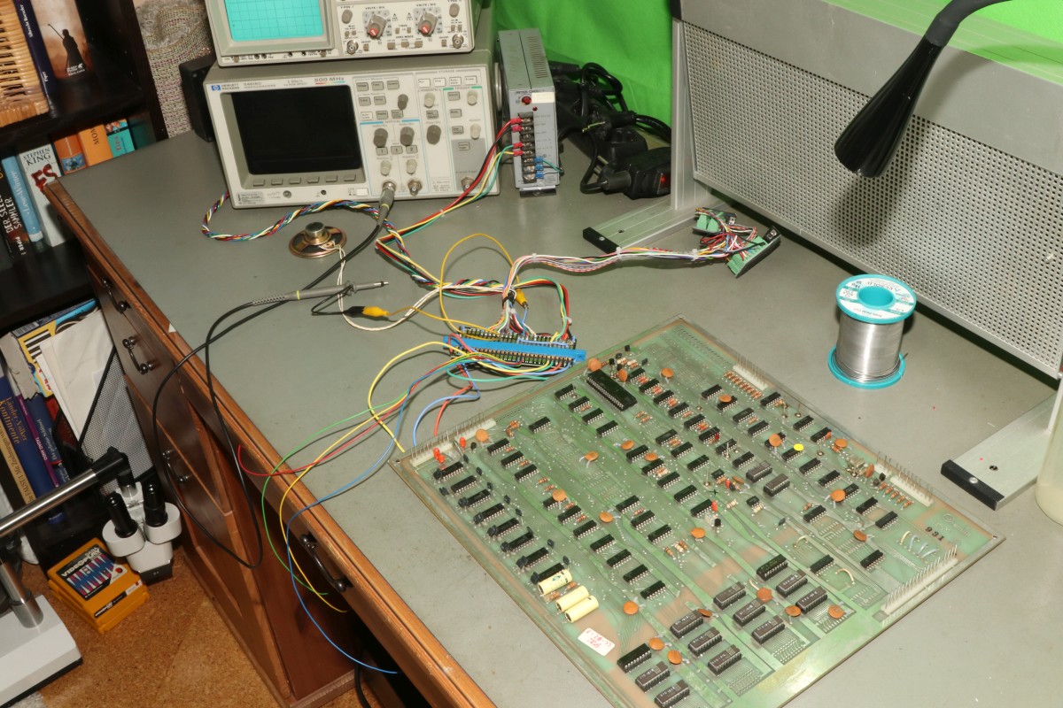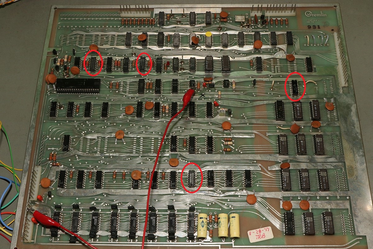 {SEGA Gremlin Depthcharge} In MAME als Dual VIC Game geführt - aber so alt, dass es noch keinen eigenen Videochip hat: ein Gremlin U-Boot-Spiel der ganz frühen Sorte von 1977. Der Prozessor: ein Intel 8080 und das Programm noch in bipolaren PROMs versteckt, das haben nur ganz wenige Arcade-Spiele. Und Gremlin nannte sich auch noch nicht SEGA. Die Programmbank - 12 Stück BPROMs anstelle von EPROMs - die erzeugen gut Abwärme! Ein Satz Video-RAMs... Die 8080 CPU mit diversen Bustreibern drum herum... Gremlin - ich mag das Logo und die Spiele sowieso! Die zwei üblichen Sequence und Control-BPROMs - hier mit den frühen Nummern 316-013 und 316-0014 Und eine der wenigen Reparaturen mit beigelegtem original-Manual! Da macht es doch gleich viel mehr Spaß! Erst mal ein Grundaufbau - Depthcharge hat Besonderheiten, was die Spannungsversorgung betrifft: an den Pins wird vorausgesetzt, dass 5V und +/-15V vorhanden sind. Aus den +/-15V werden über zwei kleine Linearregler auf der Platine die +12V / -5V für die Versogrung der CPU und der RAMs abgeleitet! Die +/-15V sind für den Audio-Teil da, bei der Reparatur kann man darauf erst einmal verzichten. Die -5V/+12V speise ich auf der Platine hinter den Linearreglern ein. Der Takt taktet schon mal taktvoll... Reset zappelt wie blöd, kann aber über den Antenneneingang auf der Platine stillgelegt werden. Leider läuft das Programm nicht richtig los... CSYNC kann man sich auf auf der Platine klauen, somit ist das Spiel erst mal vollständig JAMMA-fiziert. Da Bild ist statisch... Hier sieht man die Antenne-Reset-Beruhigung... Die Bustreiber rund um die CPU treiben nicht mehr so gut... Ein 7408 ist völlig platt... Die Huckepacklösung hilft: Der Datenbus sieht plötzlich sinnvoller aus. Ein weiterer 7408 im Datenbus zum Video-RAM ist ebenfalls tot: Danach ist zumindest das Videobild etwas sauberer, die CPU läuft trotzdem noch nicht richtig. Ein 74125 ist auch sehr schlapp, den muss ich ersetzen, hab aber keinen Ersatz da. Also auf die Bestellung warten! Zumindest hab ich den 74LS08 schon mal eingelötet... Ein interessantes Detail: die Thermokamera enthüllt die Faulheit eines der beiden 7408 Datenbustreiber. Der defekte (rot eingekringelt) Treiberbaustein bleibt kalt, während der baugleiche darüber doch etwas wärmer wird. Bleiben Sie gespannt! {Ich krieg dich!} O.K:, das Programm läuft nicht. Mögliche Ursachen: CPU defekt (Tausch bringt nichts), ROMs defekt (alle ausgelesen, alle O.K.), Adressbus korrupt (hier ist alles O.K.), Datenbus korrupt (hab schon die 7408 und den 74125 gewechselt...), Chip Selects... Da sieht es bei einem Select nicht wirklich gut aus: der High-Side-Treiber der Push-Pull-Ausgangsstufe ist platt an CS#0. Der 7442 muss getauscht werden! Datenbus korrekt! Chip Select korrekt! (Hier ist es mir das erste Mal gelungen, einen uralten TTL-Baustein mit einem noch älteren Ersatz zu tauschen! Quasi NEOS - "New Extremely Old Stock") Vier TTLs getauscht... ... und es hat sich gelohnt!!! Doll abwechslungsreich ist das Game nicht, aber es ist ein uraltes Stück Arcade-Geschichte! Wen es interessiert: hier sind die bösen Buben im Schaltplan zu finden. |