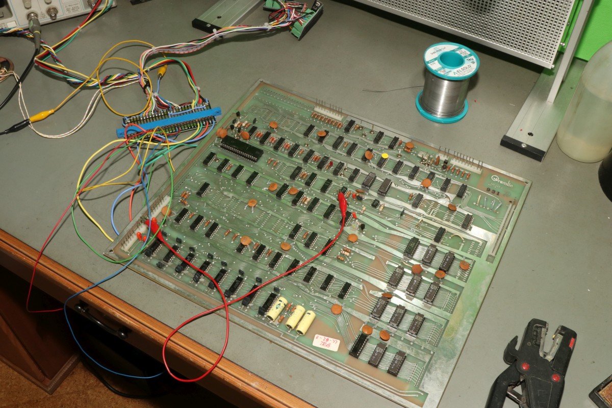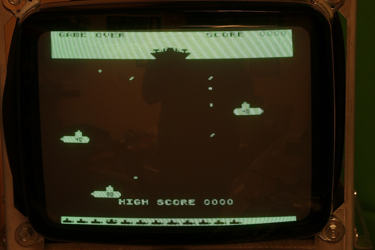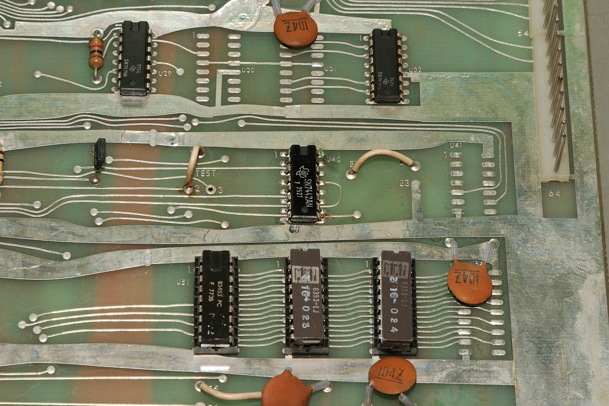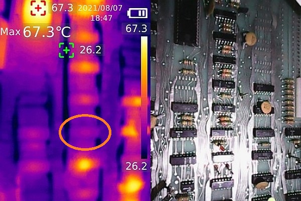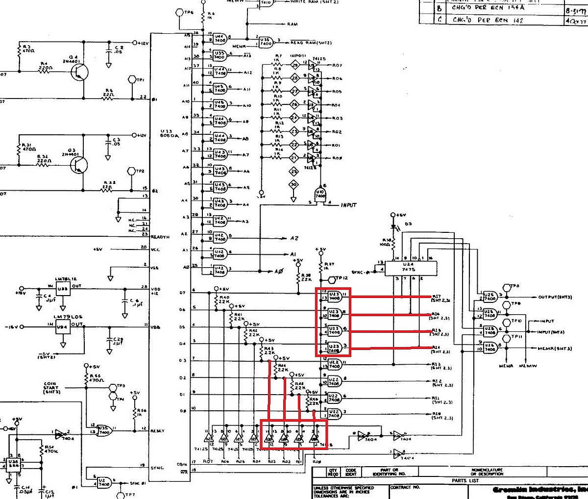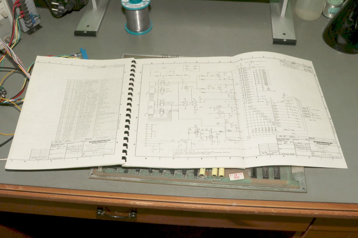 {SEGA Gremlin Depthcharge} In MAME als Dual VIC Game geführt - aber so alt, dass es noch keinen eigenen Videochip hat: ein Gremlin U-Boot-Spiel der ganz frühen Sorte von 1977. Der Prozessor: ein Intel 8080 und das Programm noch in bipolaren PROMs versteckt, das haben nur ganz wenige Arcade-Spiele. Und Gremlin nannte sich auch noch nicht SEGA. Die Programmbank - 12 Stück BPROMs anstelle von EPROMs - die erzeugen gut Abwärme! Ein Satz Video-RAMs... Die 8080 CPU mit diversen Bustreibern drum herum... Gremlin - ich mag das Logo und die Spiele sowieso! Die zwei üblichen Sequence und Control-BPROMs - hier mit den frühen Nummern 316-013 und 316-0014 Und eine der wenigen Reparaturen mit beigelegtem original-Manual! Da macht es doch gleich viel mehr Spaß! Erst mal ein Grundaufbau - Depthcharge hat Besonderheiten, was die Spannungsversorgung betrifft: an den Pins wird vorausgesetzt, dass 5V und +/-15V vorhanden sind. Aus den +/-15V werden über zwei kleine Linearregler auf der Platine die +12V / -5V für die Versogrung der CPU und der RAMs abgeleitet! Die +/-15V sind für den Audio-Teil da, bei der Reparatur kann man darauf erst einmal verzichten. Die -5V/+12V speise ich auf der Platine hinter den Linearreglern ein. Der Takt taktet schon mal taktvoll... Reset zappelt wie blöd, kann aber über den Antenneneingang auf der Platine stillgelegt werden. Leider läuft das Programm nicht richtig los... CSYNC kann man sich auf auf der Platine klauen, somit ist das Spiel erst mal vollständig JAMMA-fiziert. Da Bild ist statisch... Hier sieht man die Antenne-Reset-Beruhigung... Die Bustreiber rund um die CPU treiben nicht mehr so gut... Ein 7408 ist völlig platt... Die Huckepacklösung hilft: Der Datenbus sieht plötzlich sinnvoller aus. Ein weiterer 7408 im Datenbus zum Video-RAM ist ebenfalls tot: Danach ist zumindest das Videobild etwas sauberer, die CPU läuft trotzdem noch nicht richtig. Ein 74125 ist auch sehr schlapp, den muss ich ersetzen, hab aber keinen Ersatz da. Also auf die Bestellung warten! Zumindest hab ich den 74LS08 schon mal eingelötet... Ein interessantes Detail: die Thermokamera enthüllt die Faulheit eines der beiden 7408 Datenbustreiber. Der defekte (rot eingekringelt) Treiberbaustein bleibt kalt, während der baugleiche darüber doch etwas wärmer wird. Bleiben Sie gespannt! {Ich krieg dich!} O.K:, das Programm läuft nicht. Mögliche Ursachen: CPU defekt (Tausch bringt nichts), ROMs defekt (alle ausgelesen, alle O.K.), Adressbus korrupt (hier ist alles O.K.), Datenbus korrupt (hab schon die 7408 und den 74125 gewechselt...), Chip Selects... Da sieht es bei einem Select nicht wirklich gut aus: der High-Side-Treiber der Push-Pull-Ausgangsstufe ist platt an CS#0. Der 7442 muss getauscht werden! Datenbus korrekt! Chip Select korrekt! (Hier ist es mir das erste Mal gelungen, einen uralten TTL-Baustein mit einem noch älteren Ersatz zu tauschen! Quasi NEOS - "New Extremely Old Stock") Vier TTLs getauscht... ... und es hat sich gelohnt!!! Doll abwechslungsreich ist das Game nicht, aber es ist ein uraltes Stück Arcade-Geschichte! Wen es interessiert: hier sind die bösen Buben im Schaltplan zu finden. |
