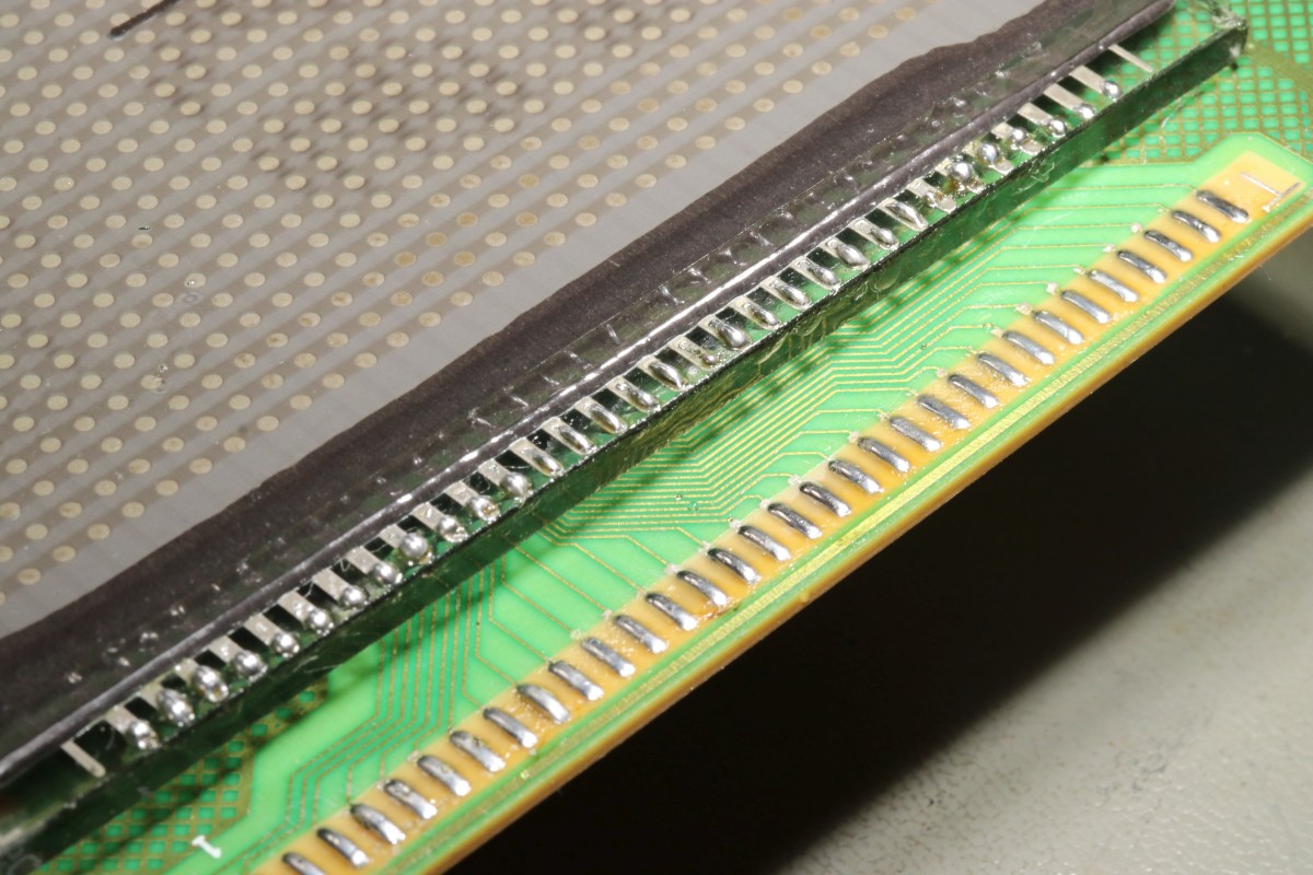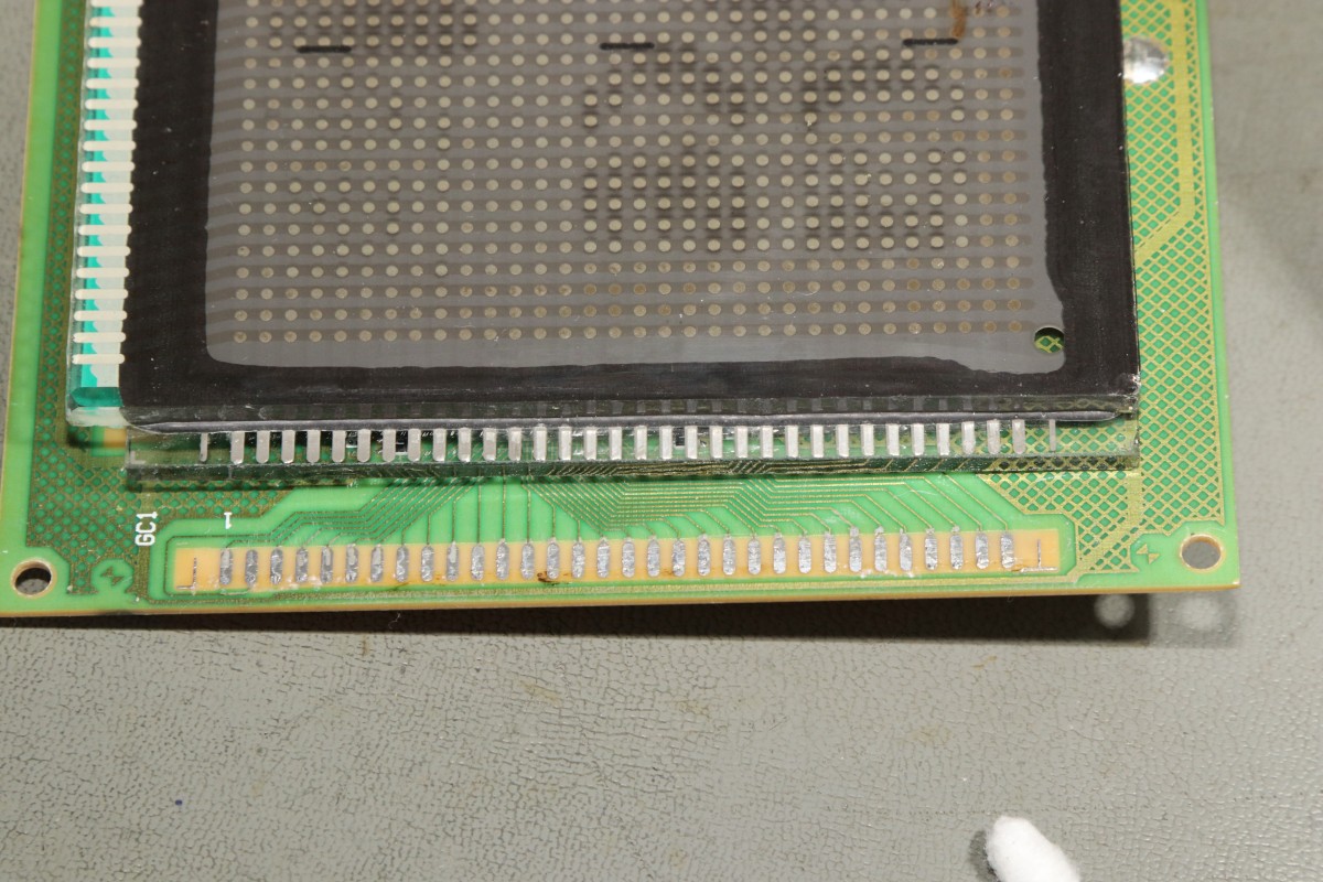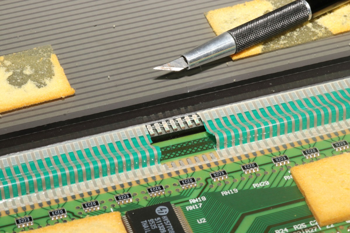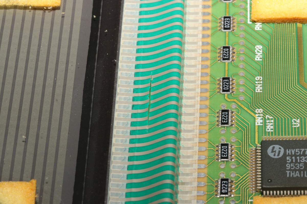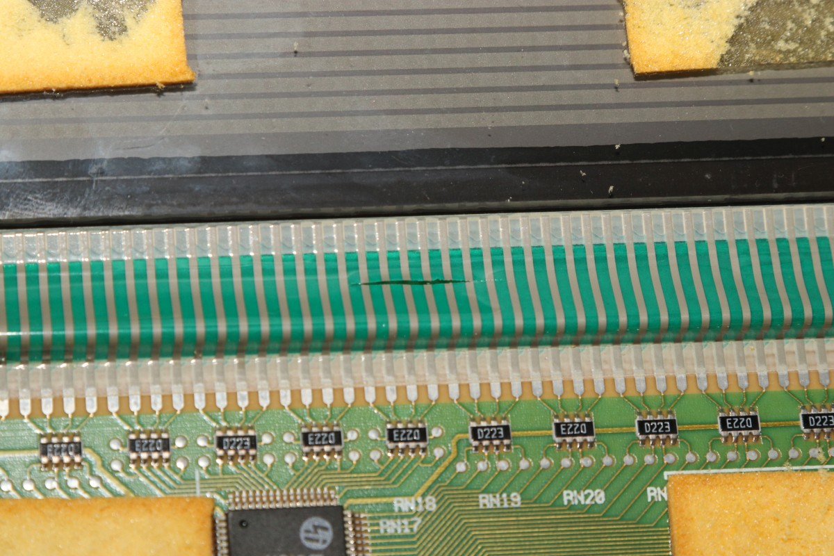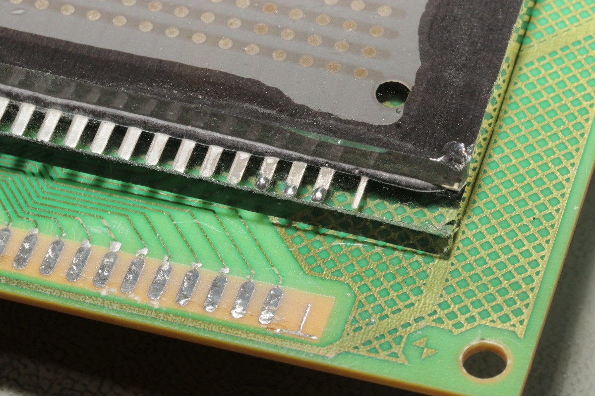{Repair the Unrepaireable} DMD - Dot Matrix Display, also quasi eine flache Nixie-Röhre mit ganz vielen Punkten... teuer, empfindlich und in den falschen Händen an Leib und Leben gefährdet! Der Kunde beklagte den Ausfall seines Displays - nach Generalüberholung des Netzteils näherte er sich dem tatsächlichen Fehler: kalte Lötstellen am Spannungsversorgungsstecker durch permanentes Aus- und Einstecken... Doch den Stecker kann man nur löten, wenn man das Display aufklappt... was für eine Fehlkonstruktion... Hier die Fehlerursache, die noch Folgen haben sollte... Die kalte Lötstelle ist nur halblebig gelötet - das geht besser! Das Glas ist mit Schaumklebeband auf die Platine geklebt... mein Hinweis "Nylonschnur" kam zu spät... seine Variante "Messer" sollte sich bitter rächen... Die Zeilenanschlüsse gehen (wie die Spalten auch) über eine sehr dünne flexible Leiterkartenfolie... Wer denkt, man könnte das ablöten, irrt! Auf der Folie ist aufgedampftes Zinn, das wird bei der Herstellung mit einer heißen Kante auf das Glas und die Platine "gebügelt". Eine Demontage ist nicht vorgesehen! Diese blöden Flachbandfolien machen keinen Spaß - das ist kein Kupfer sondern aufgedrucktes Zinn... Hier ist das Ergebnis der Entscheidung "Messer"... So sieht das aufgeklappte Sandwich aus... Die Folienleiterbahn kann man vorsichtig von der Platine und vom Display lösen - das aufgedampfte Zinn bleibt auf dem Glas zurück. Danach werden die Kontakte vorsichtig mit Benzin gereinigt - Kleberrückstände lösen sich auf... Gott sei Dank! Die Kontaktflächen auf dem Glas nehmen Lötzinn an! Aber nicht zu lange versuchen, sonst löst sich das Material auf!!! Jetzt geht es an die Reparatur - erst mal die Stichwunde an den Spaltenanschlüssen - auch hier kommt man nur bei aufgeklapptem Display ran... Schwester, Skalpell bitte... Löten... Verbinden... Zuklappen. Dann werden die Zeilenanschlüsse vorsichtig verzinnt: Bevor es an die Zeilen geht, sollte man nicht vergessen, die Schaumklebestreifen zu ersetzen und das Display wieder auf die Platine zu kleben! Lötorgie mit ruhiger Hand: Demnächst get das DMD zurück an den Besitzer - ich bin gespannt, ob alles funktioniert - mangels Pin kann ich das hier leider nicht testen. Aber wir halten fest: wer das konstruiert hat, gehört geprügelt! Und wir halten außerdem fest: Reparaturen rechtzeitig in Hände von Fachleuten zu geben, reduziert die Wahrscheinlichkeit für Kollateralschäden... Leider werden wir so schnell nicht erfahren, ob die Reparatur geglückt ist, weil der Pin mittlerweile die Mitarbeit komplett verweigert. Aber das ist eine ganz andere Geschichte... |