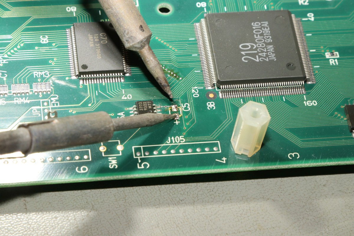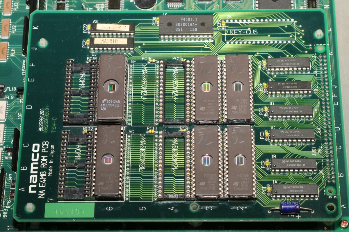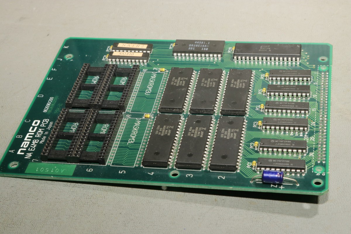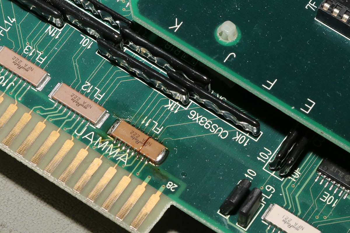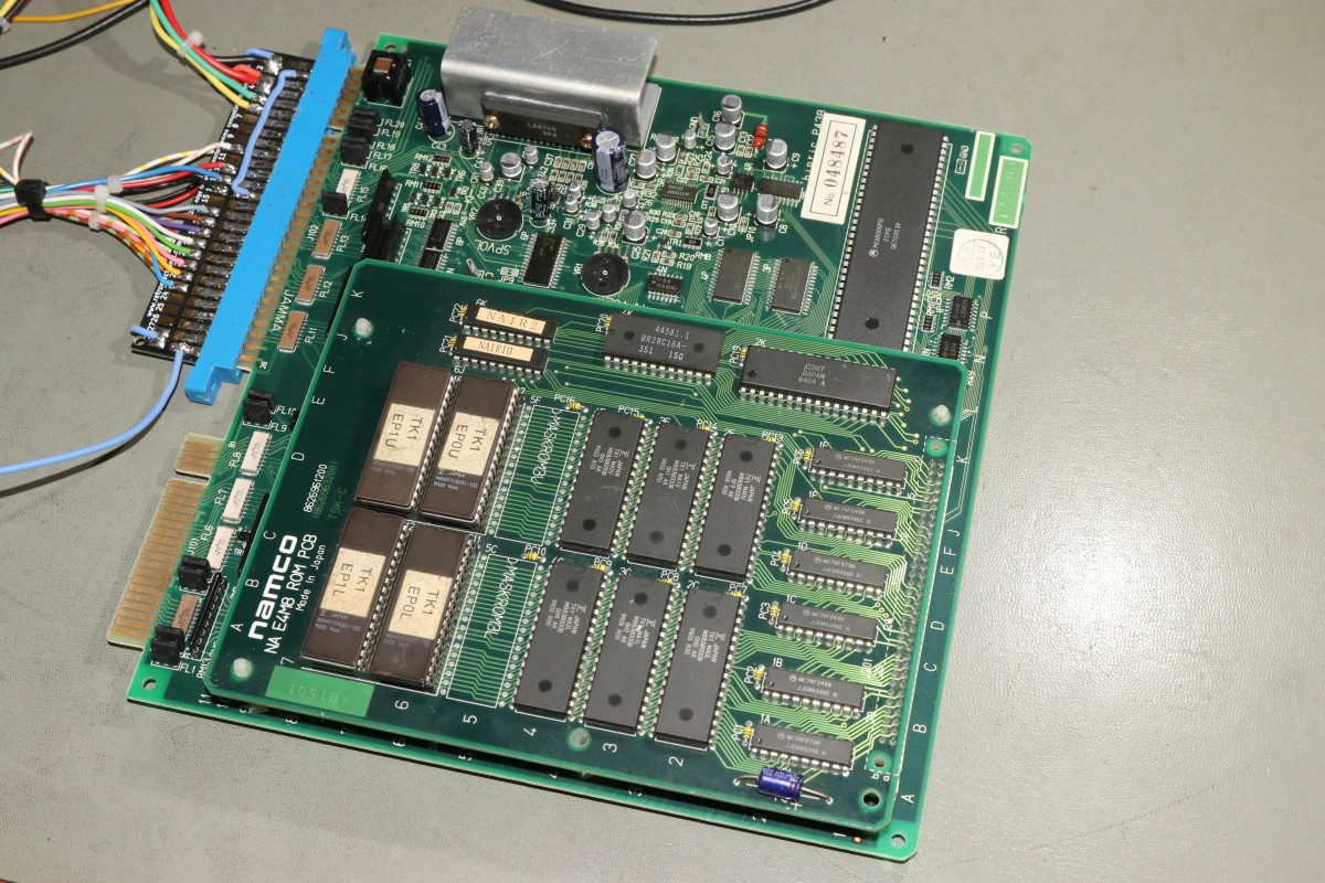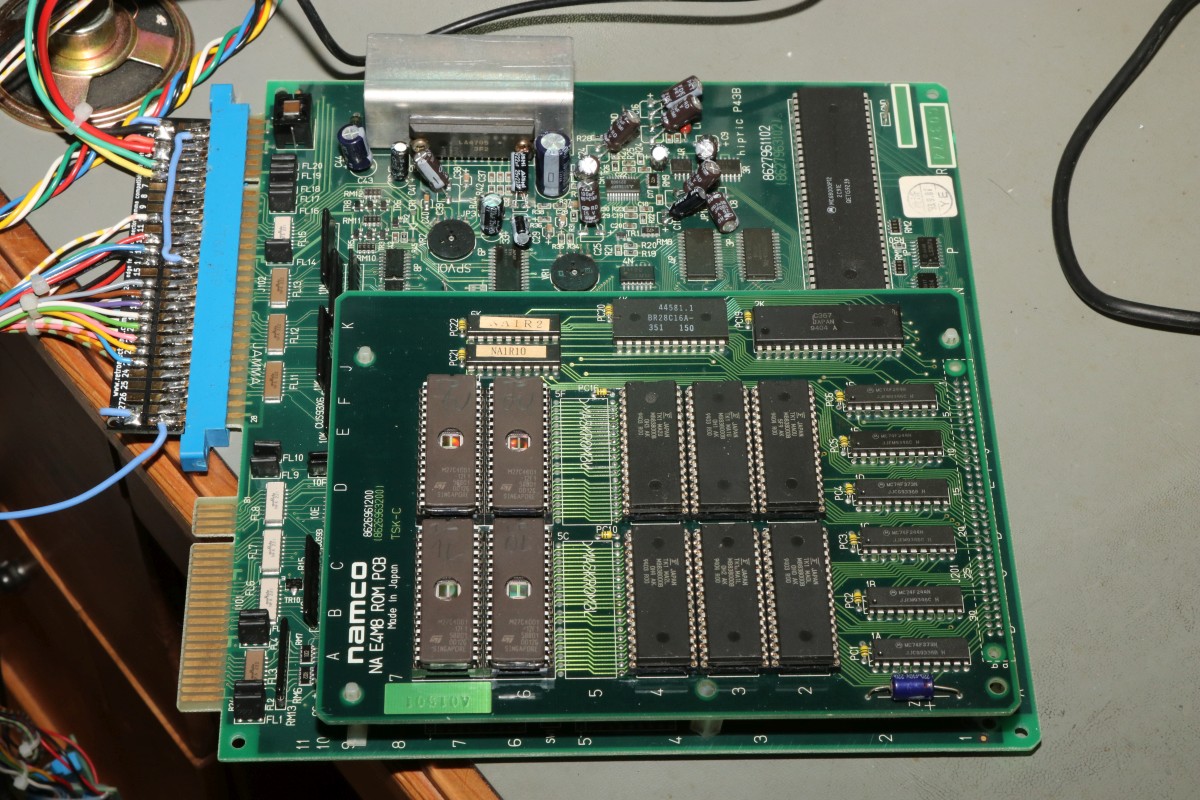 {Eine Exvania Conversion} Das Namco NA-1 System ist berühmt und berüchtigt zugleich: ein 68000er System mit separaten ROM-Boards und natürlich passenden Security-Chips, damit man nicht einfach die Spiele durch EPROM-Kopieren austauschen kann. Mittlerweile gibt es dank extrem heller Köpfe alle ROMs auch in entschlüsselter Form, da kann man tolle Conversions draus basteln. Berüchtigt ist das Namco-System vor Allem aber durch seine inkontinenten SMD-Elkos! Die laufen alle (!) mit der Zeit aus und verätzen die haarfeinen Leiterbahnen und Durchkontaktierungen. Bemerkt man das nicht rechtzeitig, so ist das Motherboard zumindest unwiederbringlich verloren! Deswegen gibt es auf dem freien Markt sehr viele ROM-Boards aber kaum Motherboards, und wenn, dann defekt (aka "nicht getestet", was bei ebay eigentlich immer "Kernschrott" bedeutet...) oder extrem teuer (was defekt nicht zwingend ausschließt!). Ich bekam dank eines freundlichen Hinweises aus einem Forum ein Exemplar "Tinkle Pit" in recht gutem Zustand und deklariert als "voll funktionsfähig"... Der Audiobereich ist zuerst von der Elkopest betroffen, man merkt es am immer schlechter werdendem Sound. Dieser hier sieht noch echt gut aus, auch wenn die Pads schon langsam grau werden... Sound geht einwandfrei, Bild auch - nur um sicher zu gehen. Wenn nachher was nicht funktioniert, war ich selber schuld! Die Elkos haben schon gearbeitet... es wird dringend Zeit für einen Austausch! Unter dem ROM-Board sitzt noch ein einzelner Elko, der die Spannungsüberwachung bedient - und im Auslauffall auch grandios erledigt. Hier hat der Vorbesitzer schon erfolgreich geflickt. Aber warum zum Teufel hat er die Elkos dann nicht alle gleich getauscht? Die Lötstellen sind alle nachgelötet - die Elkos sind alle alt und undicht. Raus damit! Zwei Einzellötkolben ersetzen eine Lötpinzette... Wenn man das zusammen mit seiner Tochter macht, dann geht das unglaublich fix. Die Drecksbecher... Sauber neu verzinnt... Und nach einer sehr gründlichen Reinigung mit Bürste und Spüli (in den Vias setzt sich das Zeug auch ab! Hier hoffe ich, dass die Ätzerei ohne Nachschub langfristig aufhört!) kommen neue Elkos drauf. SMD hab ich nicht, bedrahtet tut auch, ist dicht und funktioniert. Ja, perfekt geht anders! Die kleinen Kondensatoren gehen auch in keramisch. Ein Test mit dem originalen ROM-Board zeigt: alles läuft einwandfrei! Immerhin, nichts zerstört! Jetzt müssen die ROMs raus - warum sind da welche direkt eingelötet? Mein Heißluftfön leistet ganze Arbeit. Die Alufolie schont die umliegenden Bauteile... Jetzt wird alles gesockelt. Zusammenstecken - Exvania startet nicht... was zum T... Ich stöpsel die alten ROMs drauf... Das Spiel geht. Eine Mail an den Ersteller der Decrypted ROMs beantwortet mir fix die Frage aller Fragen: der KEYCUS (Entschlüsselungs-Custom-Chip) stört speziell bei diesem ROM-Board den Bus... Kaum ist der auch rausgelötet, läuft das Spiel perfekt! Geil! Exvania - wie Bomberman, nur viel besser. Der langgehegte Wunsch meiner Tochter, sie hat selbst gelötet und alles mitgemacht, vor Allem hat sie die Platine bezahlt. Die einzige Arcade-Platine, die mir nicht gehört... Und ja, noch ein typisches Problem der Namco-Platinen: die keramischen Filter an den Eingängen verlieren gerne den Kontakt. Manche Pins lassen sich wieder festlöten, wenn es nicht klappt, dann ist Fädeldraht angesagt! Jetzt klappt auch der Zweispielermodus perfekt und der macht richtig Spaß! Hier jetzt noch die einzelnen Platinen in hochauflösender Form: |