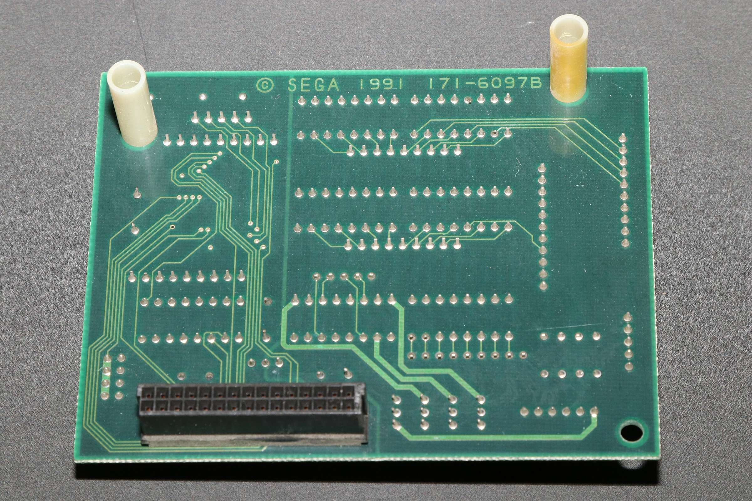 {Golden Axe II} für so etwas bin ich - so scheint es - einfach zu alt... Viel moderne Technik, SMD und THT gemischt, RAM-Bänke ohne Ende und diverse Zusatzplatinen in Sandwich-Bauweise incl. Protection-Einheit gegen Conversions... Die Sandwich-Bauweise macht einem Reparazzo das Leben zur Hölle. Auseinandergebaut könnte man messen, das Teil funktioniert aber nicht. Zusammengebaut funktioniert das Teil womöglich, man kann aber nicht messen. Danke, Sega! Hier mal das Motherboard mit Prozessor(en): Das Board für zusätzliche I/Os: Das üppige ROM-Board - hier residiert das Spiel: Und - damit es nicht zu einfach wird: das Protection-Board: So sieht das Teil aus, wenn alles sauber zusammengebaut ist: Fazit: bei diesem Patienten kann ich absolut nichts machen. Es gibt kein Bild, Sync ist da. Alle Quarz-Oszillatoren takten sauber, trotzdem ist die Hälfte der Platine tot. Grafikdaten werden keine gelesen. Ich vermute nach einem Ausflug zu Tante Google, dass die Protection irgendwie zuschlägt - Ersatzteile habe ich für so etwas gar keine, hier helfen nur bauähnliche Spenderboards. Schade, das ist immerhin eine absolut saubere Platine gewesen... {Noch ein kleiner Versuch...} auf dieser SEGA-Platine gibt es ja eine Verschlüsselung - wenn die Decryption-Unit einen Schuss hat, zeigt sich das auch oft an fehlendem Aufstart. Also habe ich flugs mal die EPROMs gegen die entschlüsselten Varianten gebrannt. Leider hat das hier auch nichts gebracht - jetzt habe ich alle Möglichkeiten ausgeschöpft! |