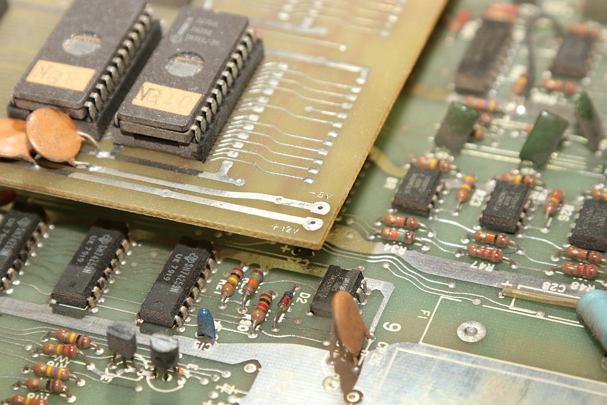 {Eine Galaxian} endlich mal wieder ein Klassiker mit leichten Grafikfehlern - sowas hatte ich schon länger nicht mehr! Besonders spannend: drei Versorgungsspannungen für die EPROM-Bank!