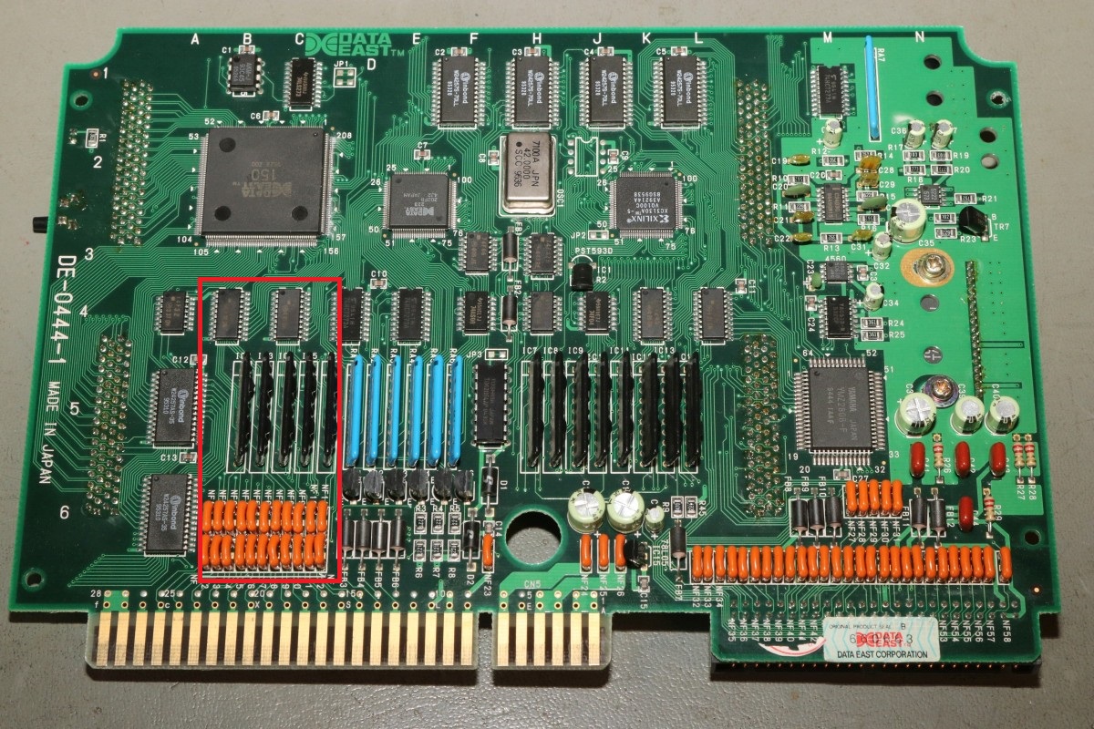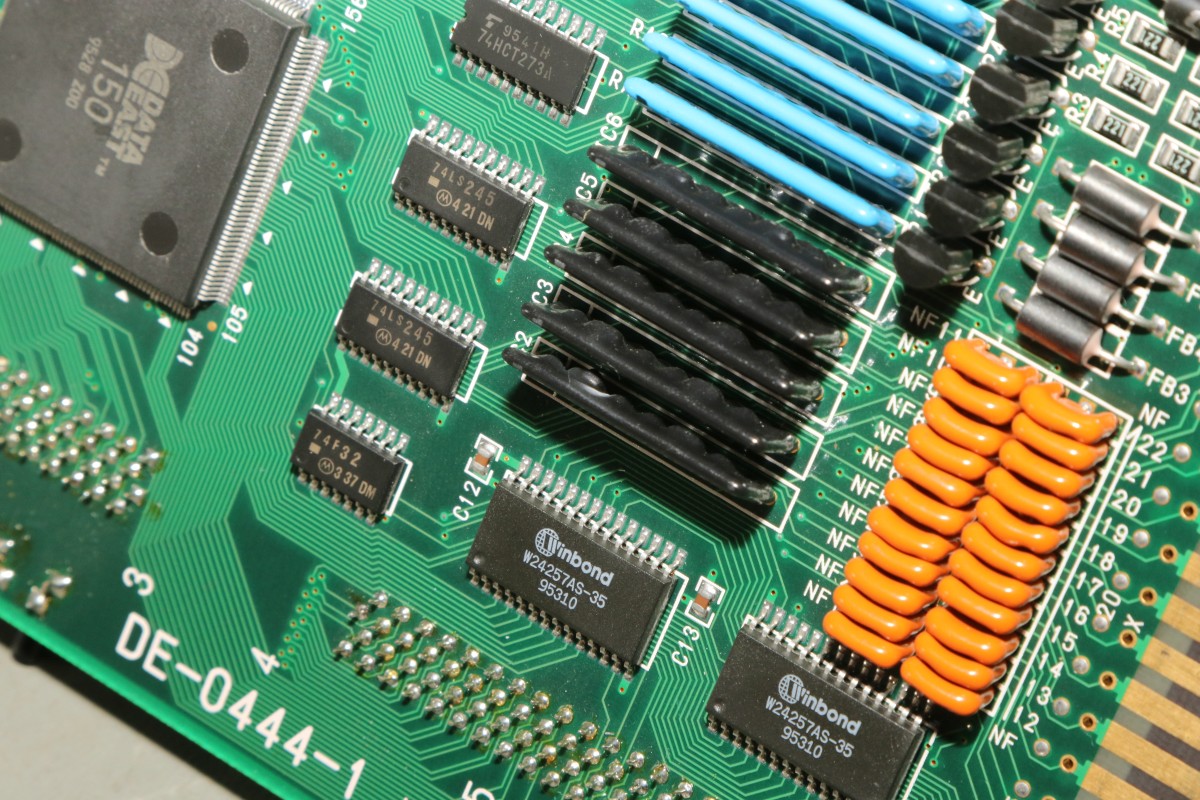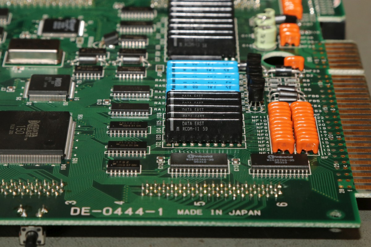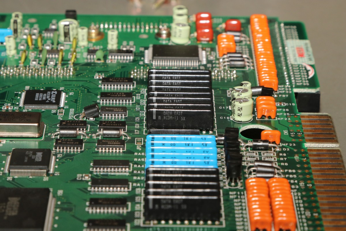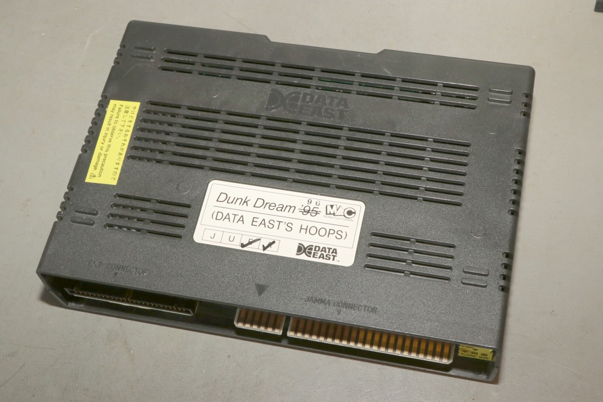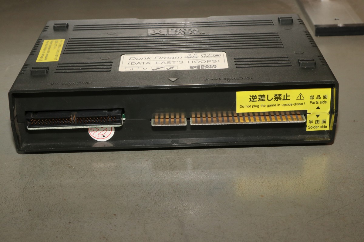 {Data East Hoops '96} Hatte ich noch nie: ein Data East MLC System! Ein ARM-Prozessor mit 7 MHz und quasi Cartrige-System, nur, dass die Cartridge das ganze Spiel ist...