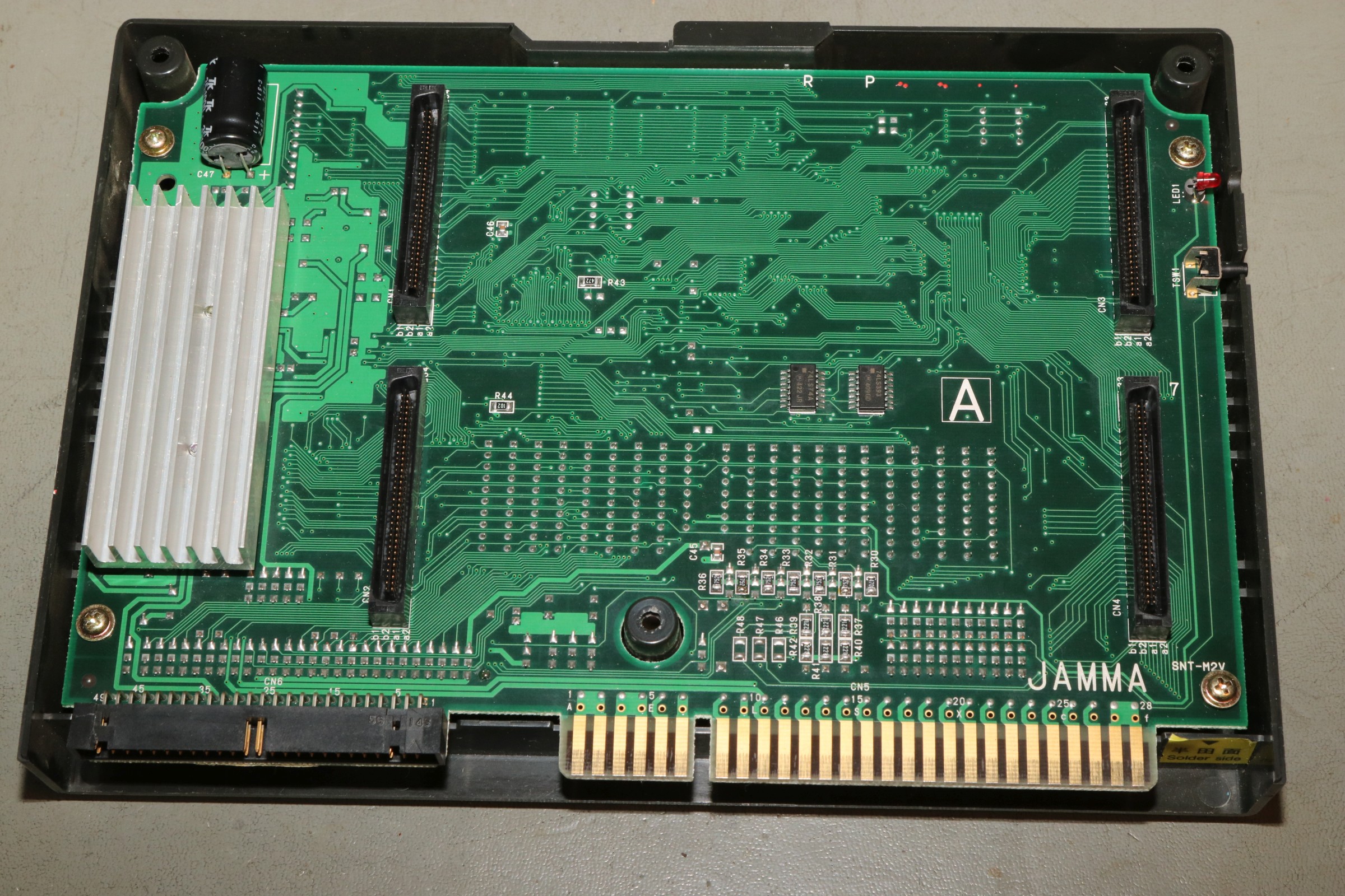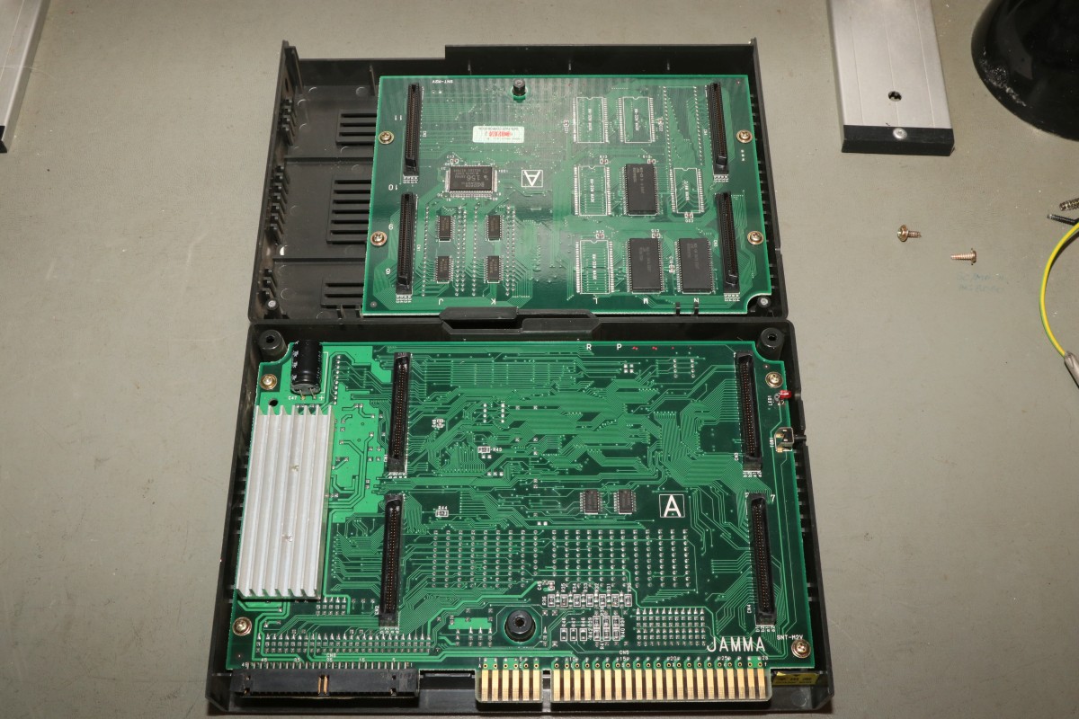 Man kann viel mit Arcadeplatinen machen, aber den JAMMA-Stecker verkehrt herum aufstecken ist eine schlechte Idee! Die 12V für den Audio-Verstärker liegen dann an Button 2 an und das mögen die Eingangsschaltkreise meist nicht.