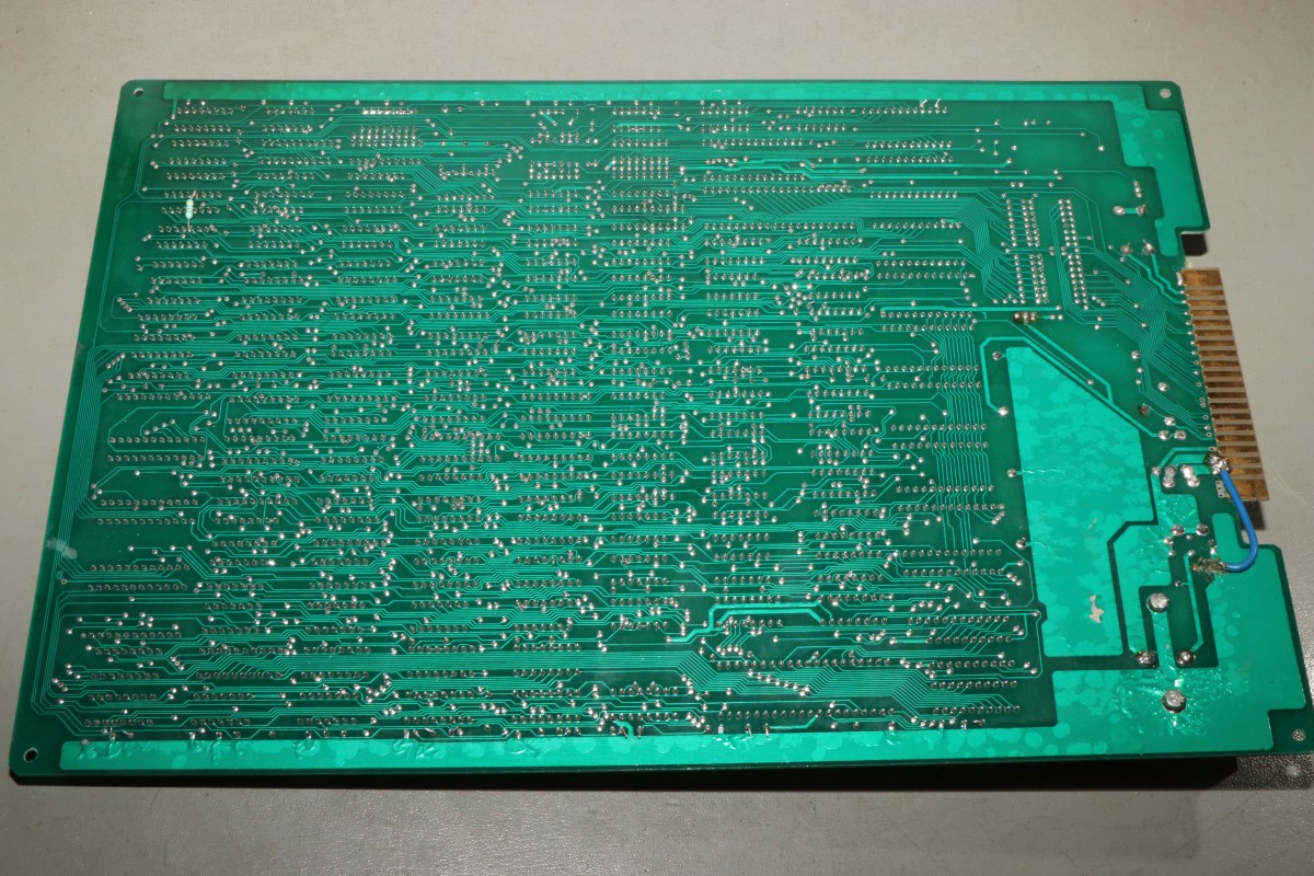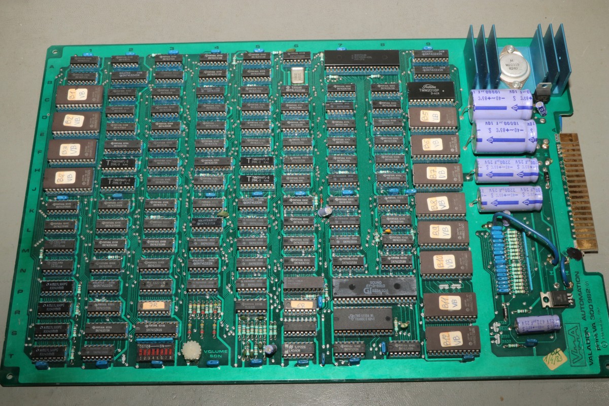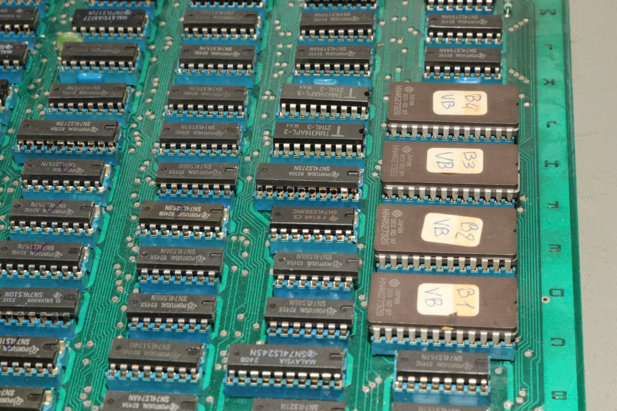 {Le Bagnard} Eine Le Bagnard mit Grafikfehlern... Sogar mit Speechchip... ...und 5V-Umbau... Der Patient stottert grafisch... ...auch bei den Sprites. Gottseidank ist das eine Platine, bei der alle Chips gesockelt sind - meine Auslötstation kann heute kalt bleiben... Das macht es aber nicht leichter, der Schaltplan ist vorhanden aber fast unlesbar... Wenn man dieses RAM entfernt, dann ist das Bild fast gut. Fast... Am RAM liegt es nicht. Nebenbei: dieser serienmäßig nachbestückte Widerstand führt manchmal zu einem Kurzschluss, dann sind die Sprites ganz weg. Ein Grund mehr für Platinenfüße! Nach einer Stunde Fehlersuche mit dem Oszi stelle ich fest: es gibt keinen Fehler, den man mit dem Oszi finden könnte. Doch die Platine bietet eine Möglichkeit, die andere Platinen nicht bieten: man kann sinnlos IC-Pärchen tauschen, bis sich das Fehlerbild verändert. So zum Beispiel... Klar: die Addierer waren es mal wieder - die gehen intern so kaputt, dass man das außen nicht mit dem Oszi sehen kann, sie addieren einfach falsch... (unter Anderem die Tile- und Sprite-Positionen...) Hätte ich doch gleich drauf kommen können... Ich frage mich immer: wer hat in der Entwicklung dafür unterschrieben, dass die ganzen Sockel bezahlt wurden? Ach ja - gut, dass ich noch mal alles geprüft habe - der Audio-Verstärker war auch platt. Mehr als Krächzen ging da nicht. Aber auch der ist brav gesockelt! |