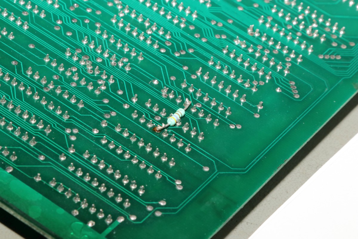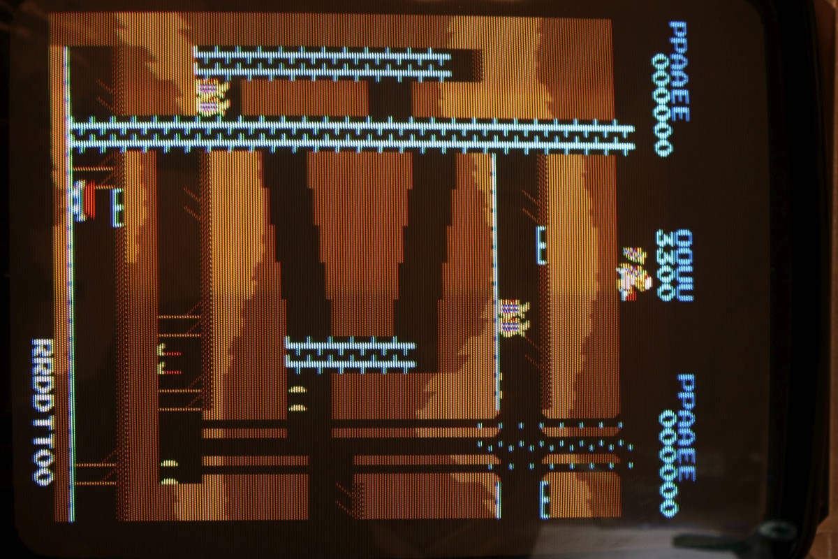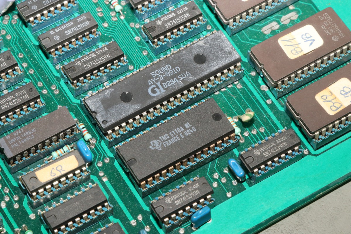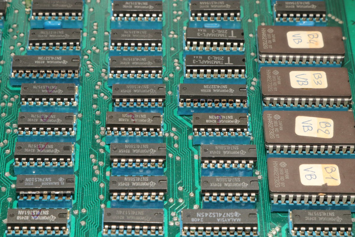 {Le Bagnard} Eine Le Bagnard mit Grafikfehlern... Sogar mit Speechchip... ...und 5V-Umbau... Der Patient stottert grafisch... ...auch bei den Sprites. Gottseidank ist das eine Platine, bei der alle Chips gesockelt sind - meine Auslötstation kann heute kalt bleiben... Das macht es aber nicht leichter, der Schaltplan ist vorhanden aber fast unlesbar... Wenn man dieses RAM entfernt, dann ist das Bild fast gut. Fast... Am RAM liegt es nicht. Nebenbei: dieser serienmäßig nachbestückte Widerstand führt manchmal zu einem Kurzschluss, dann sind die Sprites ganz weg. Ein Grund mehr für Platinenfüße! Nach einer Stunde Fehlersuche mit dem Oszi stelle ich fest: es gibt keinen Fehler, den man mit dem Oszi finden könnte. Doch die Platine bietet eine Möglichkeit, die andere Platinen nicht bieten: man kann sinnlos IC-Pärchen tauschen, bis sich das Fehlerbild verändert. So zum Beispiel... Klar: die Addierer waren es mal wieder - die gehen intern so kaputt, dass man das außen nicht mit dem Oszi sehen kann, sie addieren einfach falsch... (unter Anderem die Tile- und Sprite-Positionen...) Hätte ich doch gleich drauf kommen können... Ich frage mich immer: wer hat in der Entwicklung dafür unterschrieben, dass die ganzen Sockel bezahlt wurden? Ach ja - gut, dass ich noch mal alles geprüft habe - der Audio-Verstärker war auch platt. Mehr als Krächzen ging da nicht. Aber auch der ist brav gesockelt! |