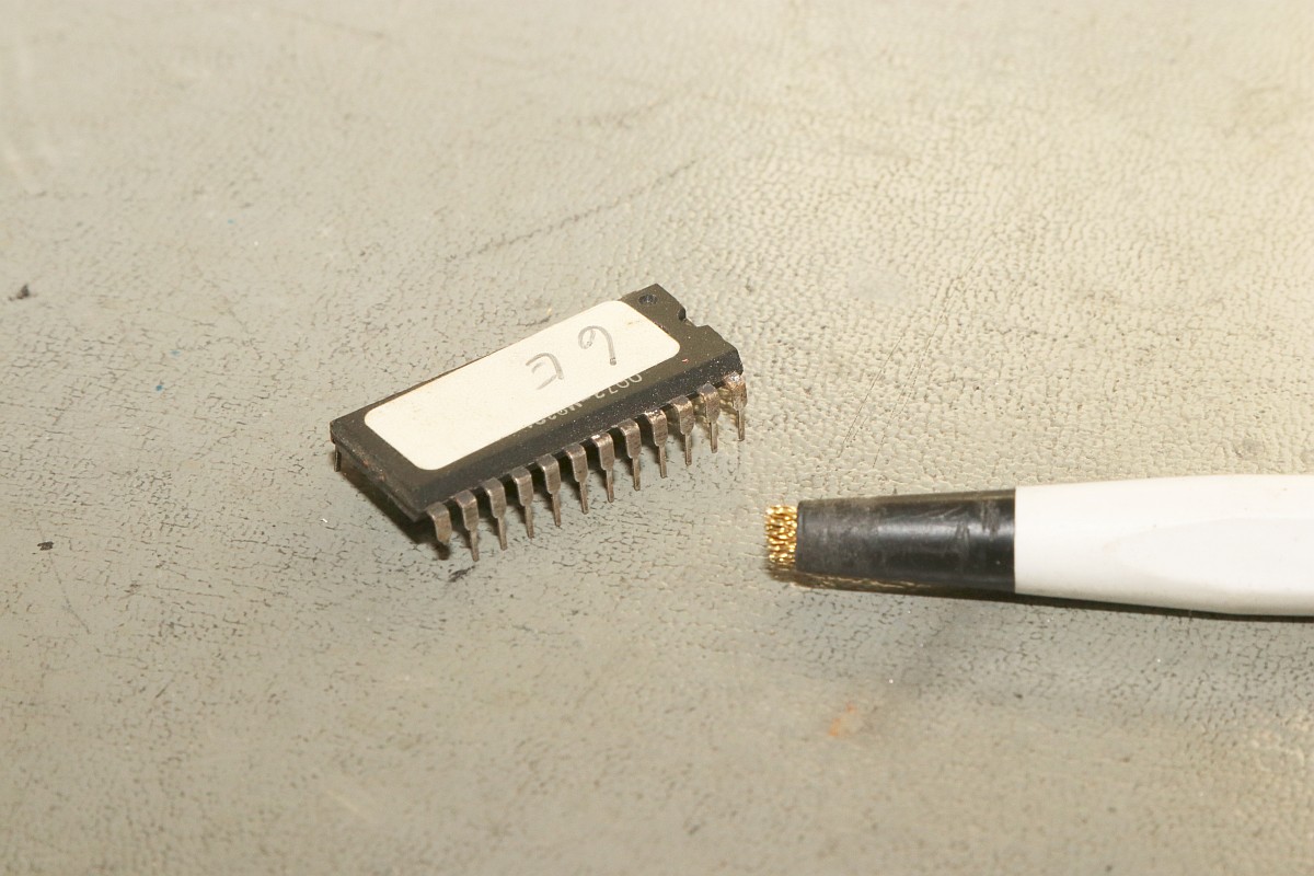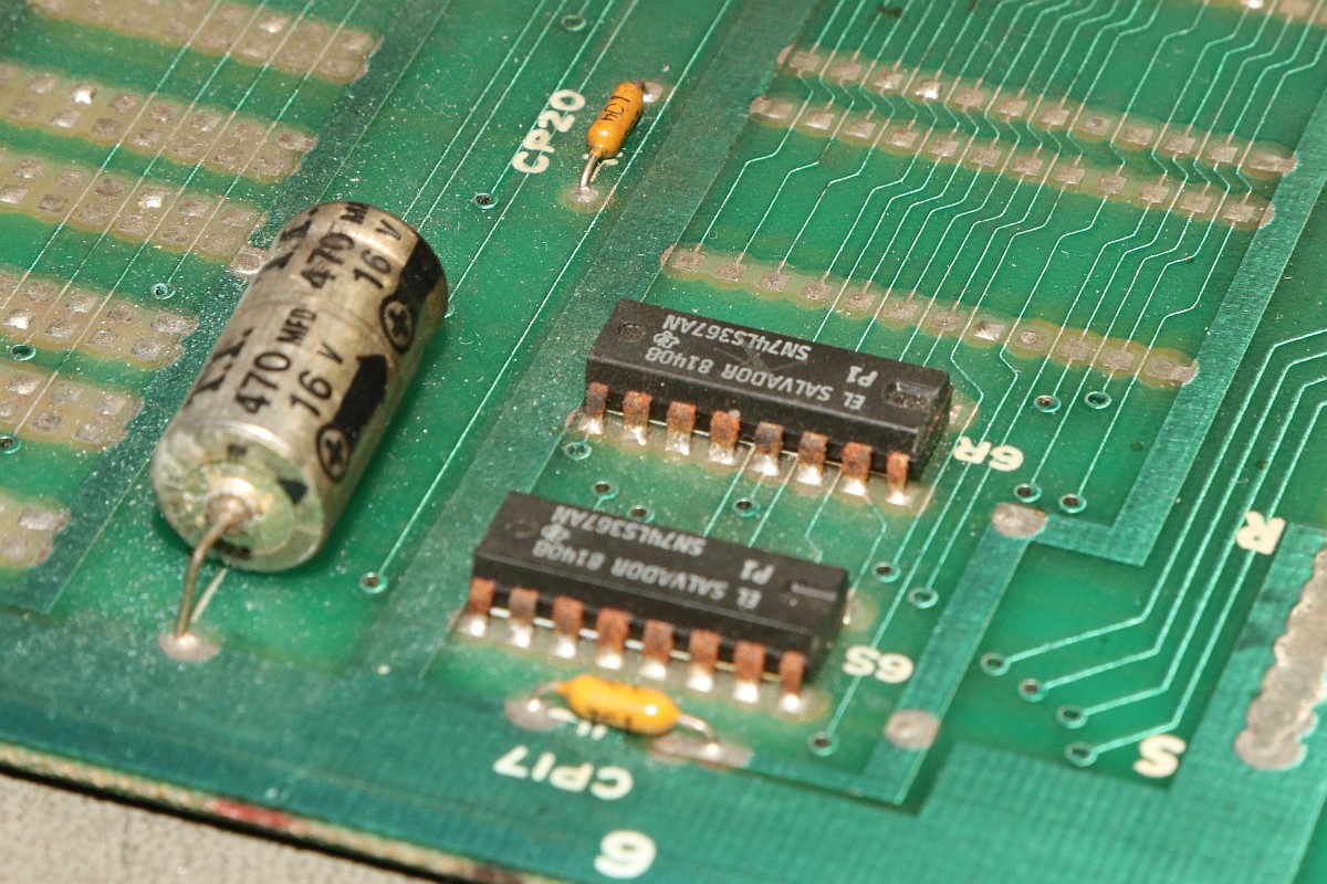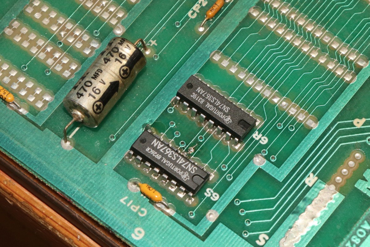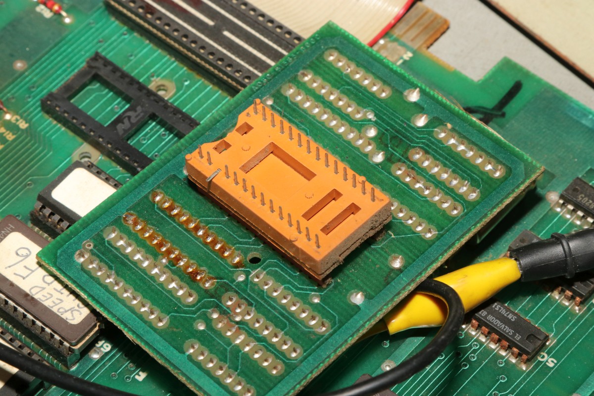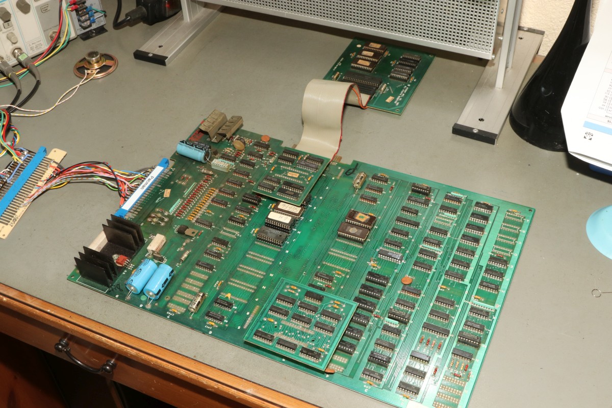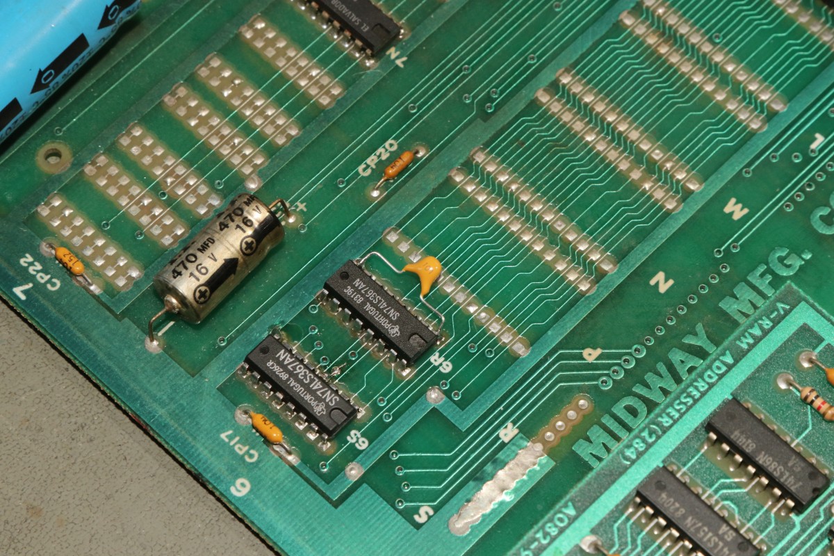 {Ms. Pacman} Mich erreichte eine originale Ms. Pacman mit der Diagnose: "Da geht nix..." Dieses "Wunderwerk" von Midway glänzt durch allerlei Besonderheiten. Zum Beispiel eine separate CPU-Platine mit diversen Custom-Chips: Und durch diverse Daughter-Boards. Das erste davon hat schon mal sichtbare Kontaktprobleme... Die darunter versteckten PROMs auch - die Beinchen sind wieder mal einfach abgerostet. Nicht nur an einem Baustein... Und die Sockel sind so derart grottig, dass ich sie gleich mal rausmache - das verringert langfristig Frust! Die korrodierten Bausteine werden sauber gereinigt und bekommen einen Adaptersockel. So sieht das dann aus: Das Flachbandkabel zur CPU-Platine hat diverse Kontaktprobleme - die blöden DIL40-Schneid-Klemm-Stecker gibt es nicht auf die Schnelle... Dem Spiel ist nichts Vernünftiges zu entlocken - je nach Rumgewackel wird zumindest schon mal der Bildschirm gelöscht... Mit viel Feingefühl bringt man die CPU kurzfristig zum Laufen. PROM 6J bekommt auch einen neuen Sockel, vielleicht liegt's ja daran... Ich komme einfach nicht weiter, das Spiel startet nicht, alles ist instabil. Wenigstens das CPU-Kabel ist jetzt in Ordnung. {Ms. Pacman Vergleichs-PCB} Gottseidank bekam ich eine funktionierende Ms. Pacman als Referenz. Jetzt muss es funktionieren! Durch Tausch der Daughterboards und weiterer Komponenten sollte sich der Fehler einkreisen lassen! Das erste Board ist schon mal defekt! So sieht kein Datenbus aus... Es ist nicht nur ein Bustreiber defekt... ... sondern zwei. Und der dritte Bustreiber auch noch. In der "guten" Platine läuft das Daughterboard jetzt. Ganz schön viel defekt auf so einem kleinen Platinchen... Leider geht das Teil immer noch nicht - jetzt startet zwar der Speichertest, der läuft aber zyklisch immer wieder durch. Die übrigen Daughterboards sind alle in Ordnung, also muss es an der Hauptplatine liegen! Ein 2114 ist platt, das ist schnell getauscht - hilft aber nicht... Nach langer Suche teste ich die Enable-Signale am Adressbustreiber - mit Tastkopf läuft das Mistding, ohne nicht.. Die sehen auch nicht wirklich gut aus... Und die Platine nach dem Auslöten auch nicht: Lässt sich alles überbrücken! Das Tastkopfphänomen ist immer noch da. So 20pF hat man da sicher - ich spendiere einfach mal 100pF gegen Masse. Die Spannung steigt. Wow. Das Spiel startet stabil und zuverlässig! Das war dann wohl ein Timingproblem. Ich hoffe, dieser Workaround hält eine Weile! Und das Flachbandkabel hab ich auch gleich sauber geflickt. Hier noch ein Blick auf den 5V-Hack, dann benötigt die Platine keine Wechselspannung und man überbrückt den Linearregler auf dem Board. |
