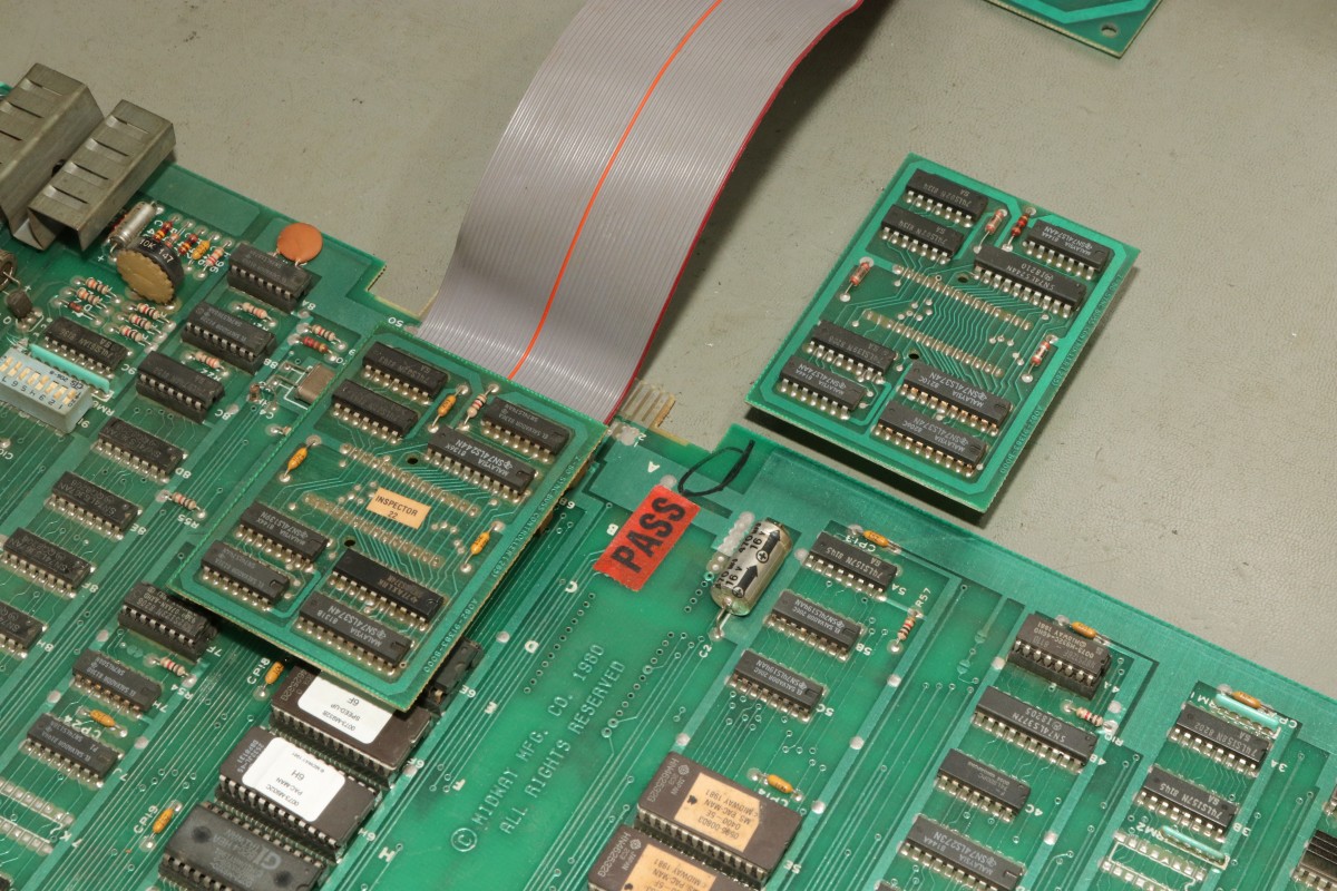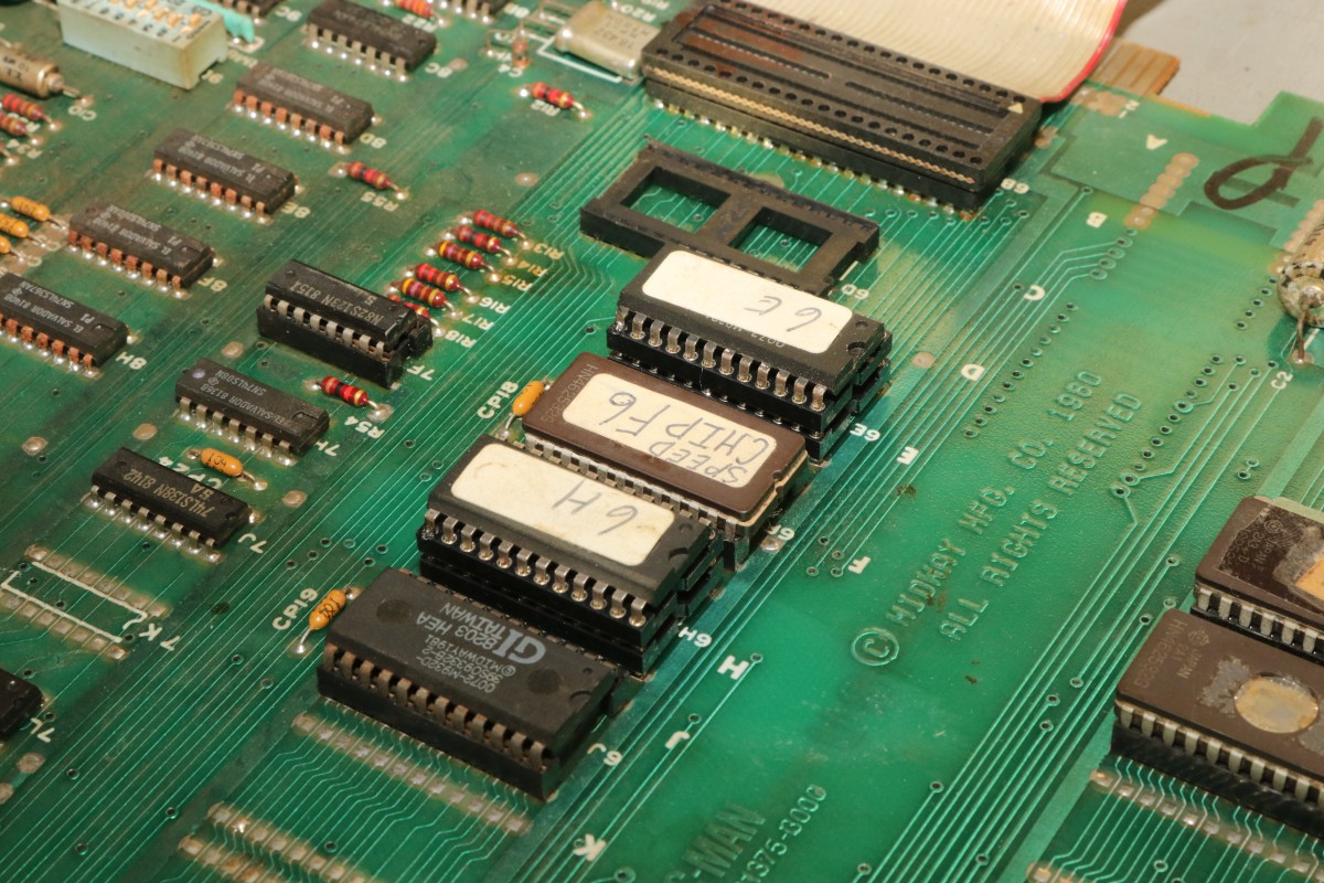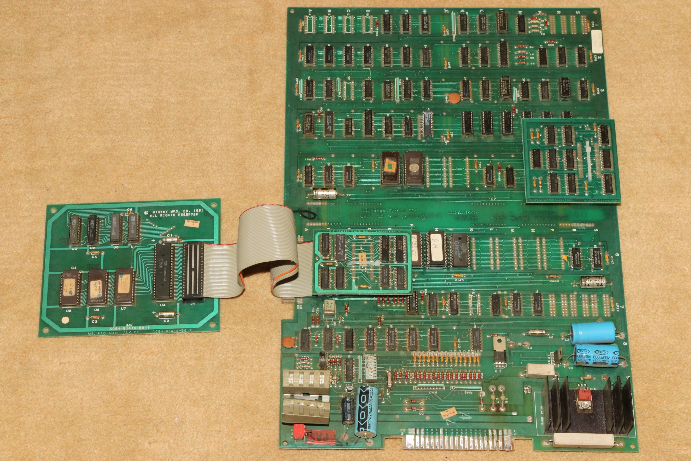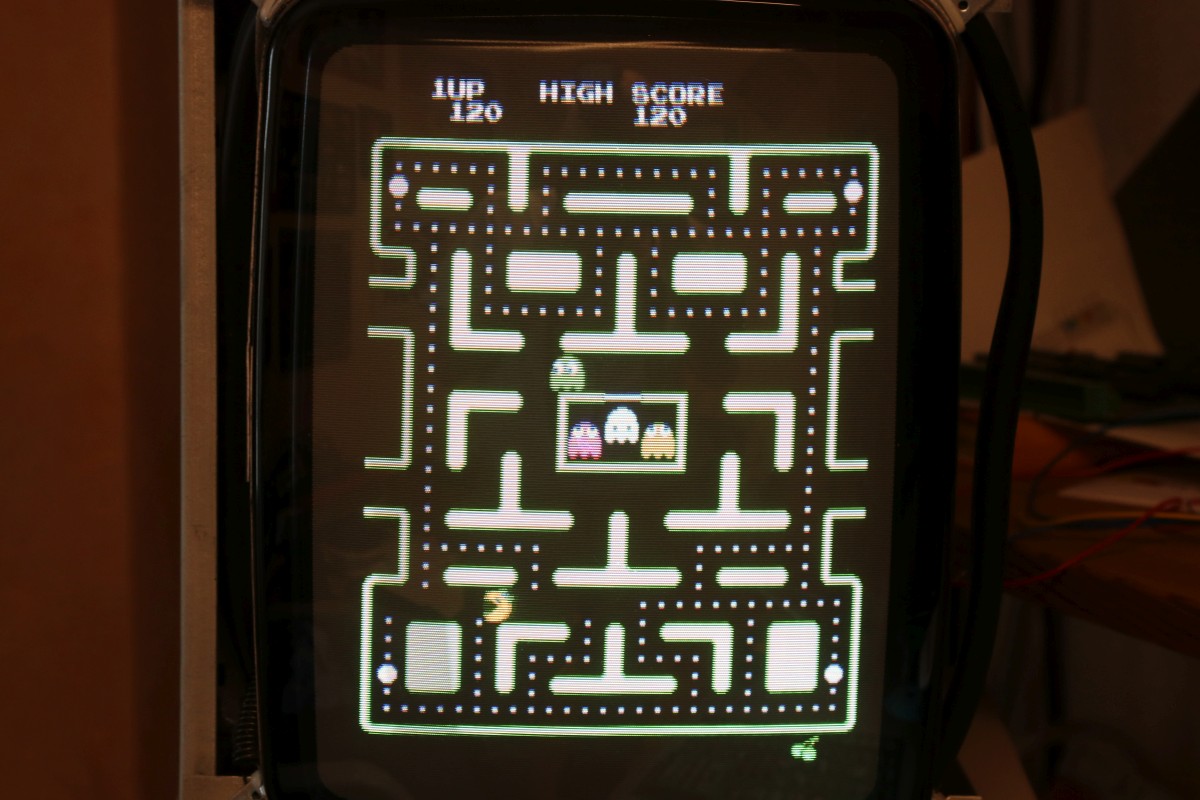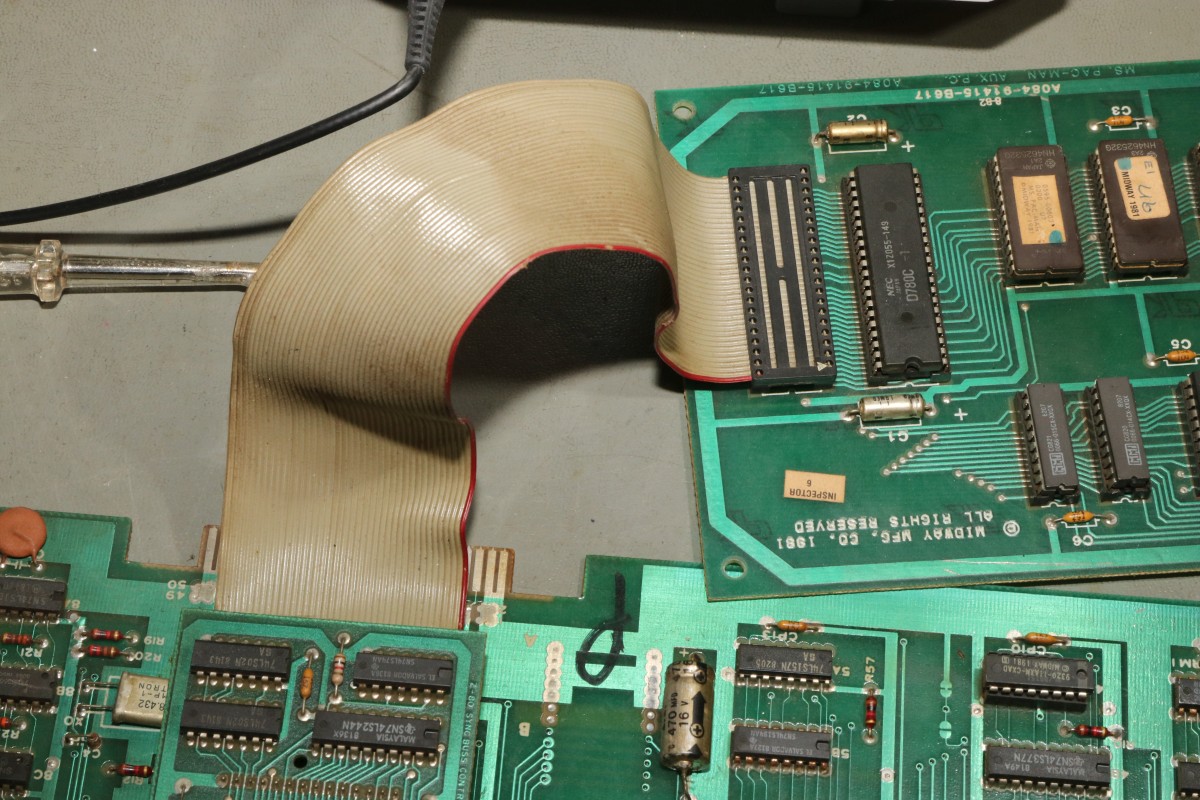 {Ms. Pacman} Mich erreichte eine originale Ms. Pacman mit der Diagnose: "Da geht nix..." Dieses "Wunderwerk" von Midway glänzt durch allerlei Besonderheiten. Zum Beispiel eine separate CPU-Platine mit diversen Custom-Chips: Und durch diverse Daughter-Boards. Das erste davon hat schon mal sichtbare Kontaktprobleme... Die darunter versteckten PROMs auch - die Beinchen sind wieder mal einfach abgerostet. Nicht nur an einem Baustein... Und die Sockel sind so derart grottig, dass ich sie gleich mal rausmache - das verringert langfristig Frust! Die korrodierten Bausteine werden sauber gereinigt und bekommen einen Adaptersockel. So sieht das dann aus: Das Flachbandkabel zur CPU-Platine hat diverse Kontaktprobleme - die blöden DIL40-Schneid-Klemm-Stecker gibt es nicht auf die Schnelle... Dem Spiel ist nichts Vernünftiges zu entlocken - je nach Rumgewackel wird zumindest schon mal der Bildschirm gelöscht... Mit viel Feingefühl bringt man die CPU kurzfristig zum Laufen. PROM 6J bekommt auch einen neuen Sockel, vielleicht liegt's ja daran... Ich komme einfach nicht weiter, das Spiel startet nicht, alles ist instabil. Wenigstens das CPU-Kabel ist jetzt in Ordnung. {Ms. Pacman Vergleichs-PCB} Gottseidank bekam ich eine funktionierende Ms. Pacman als Referenz. Jetzt muss es funktionieren! Durch Tausch der Daughterboards und weiterer Komponenten sollte sich der Fehler einkreisen lassen! Das erste Board ist schon mal defekt! So sieht kein Datenbus aus... Es ist nicht nur ein Bustreiber defekt... ... sondern zwei. Und der dritte Bustreiber auch noch. In der "guten" Platine läuft das Daughterboard jetzt. Ganz schön viel defekt auf so einem kleinen Platinchen... Leider geht das Teil immer noch nicht - jetzt startet zwar der Speichertest, der läuft aber zyklisch immer wieder durch. Die übrigen Daughterboards sind alle in Ordnung, also muss es an der Hauptplatine liegen! Ein 2114 ist platt, das ist schnell getauscht - hilft aber nicht... Nach langer Suche teste ich die Enable-Signale am Adressbustreiber - mit Tastkopf läuft das Mistding, ohne nicht.. Die sehen auch nicht wirklich gut aus... Und die Platine nach dem Auslöten auch nicht: Lässt sich alles überbrücken! Das Tastkopfphänomen ist immer noch da. So 20pF hat man da sicher - ich spendiere einfach mal 100pF gegen Masse. Die Spannung steigt. Wow. Das Spiel startet stabil und zuverlässig! Das war dann wohl ein Timingproblem. Ich hoffe, dieser Workaround hält eine Weile! Und das Flachbandkabel hab ich auch gleich sauber geflickt. Hier noch ein Blick auf den 5V-Hack, dann benötigt die Platine keine Wechselspannung und man überbrückt den Linearregler auf dem Board. |