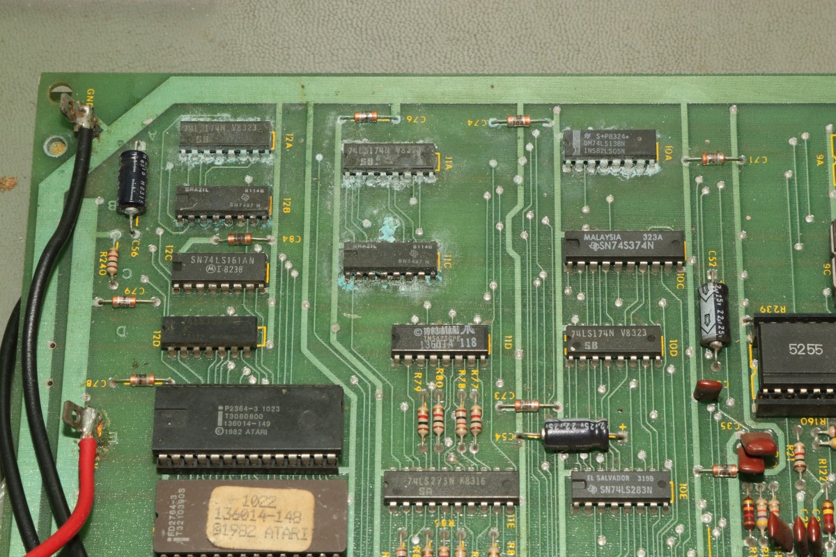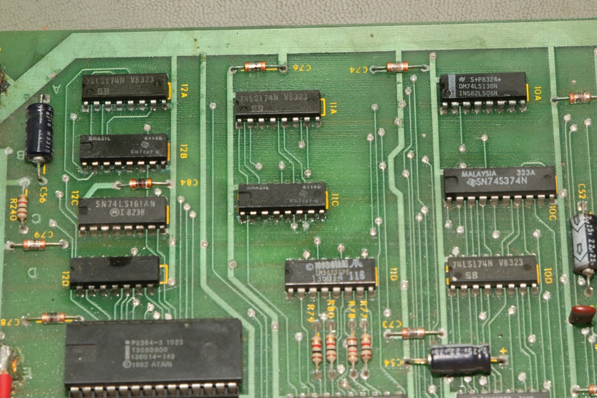 {Pole Position - echt ätzend} Zu Beginn meiner Webseitenzeit habe ich bereits die Reparatur einer Pole Position Platine beschrieben. Mittlerweile lag die Platine unbeachtet im Lager und selbst der GAL16V8 auf Position 7C wurde einer anderen Reparatur geopfert. Aus gegebenem Anlass fiel mir die Platine wieder in die Hände und ich dachte mir: jetzt mal alles fertig machen! Also geschwind ein neues GAL gebrannt - die Platine läuft immer noch! Und da fiel mir die Hinterlassenschaft des ausgelaufenen Akkus auf: echt ätzend! Und hier am Eck auch noch - Grünspan und Salzkrusten... Was für Linsen mit Spätzle gut ist, kann für Akkuseuche nicht schlecht sein! Essigessenz löst den Akkusiff unter heftiger Blasenbildung! Das hat schon Zerobrain herausgefunden... Mit Wattestäbchen großzügig aufgetragen, geht das fast von selbst: die Hinterlassenschaften lösen sich einfach auf... Unter fließendem Wasser mit der Bürste abgeschrubbt und dann mit dem Heißluftfön gut getrocknet: fast wie neu! Im Bereich des ehemaligen Akkus sind die Schäden natürlich größer gewesen - aber auch hier verbessert sich die Lage deutlich! Endlich ist diese Platine fertig! Da kann es ja an den Start gehen! |